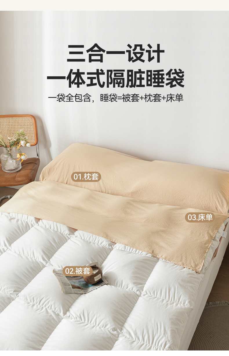 商品名称:古吉梦 2024新款水洗棉隔脏睡袋 奶茶