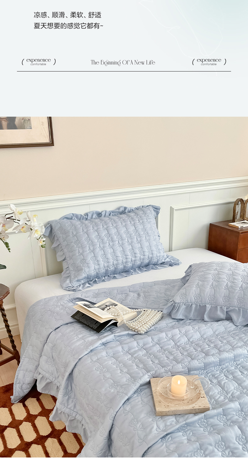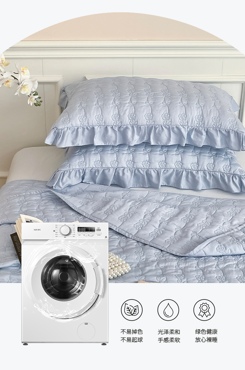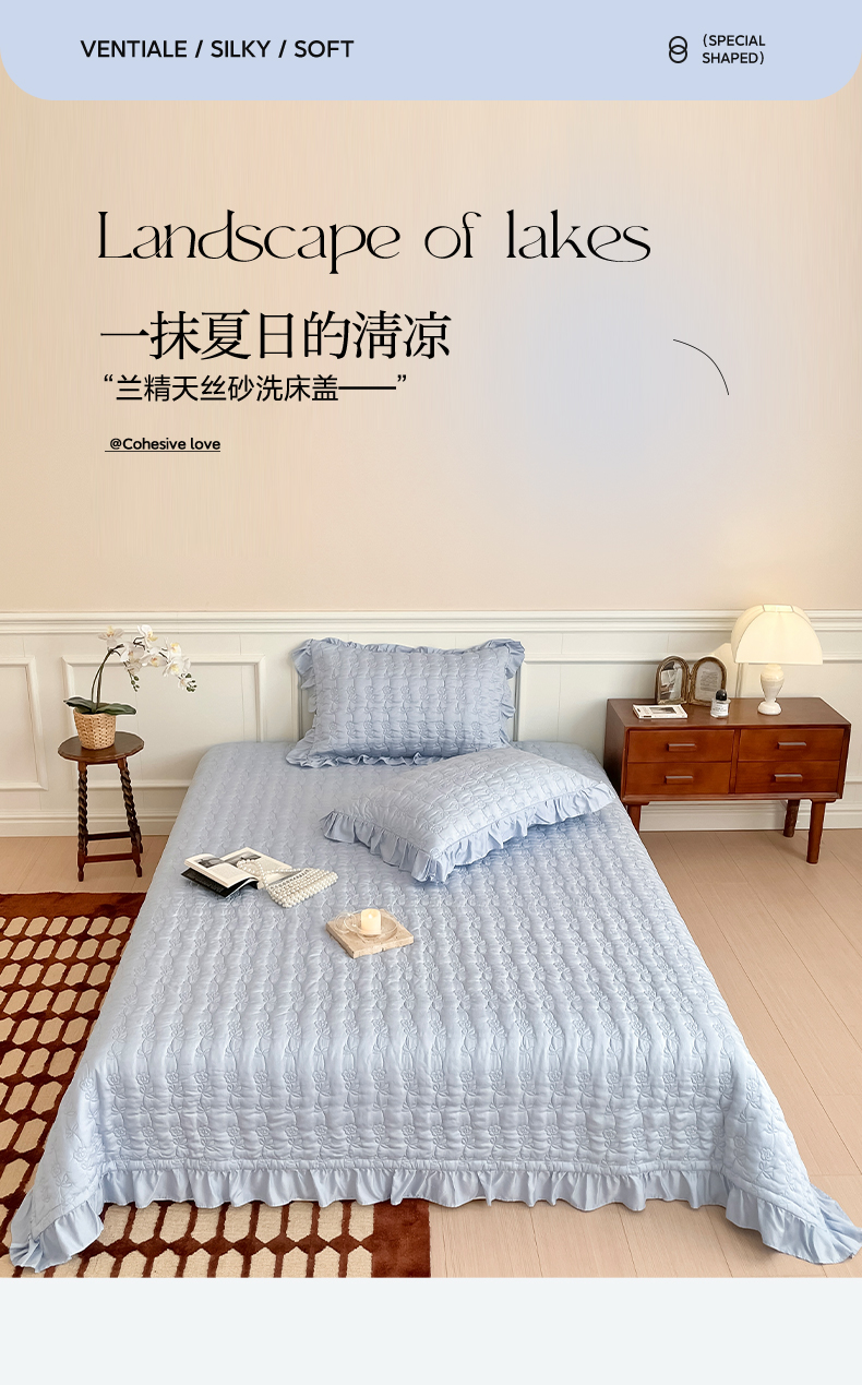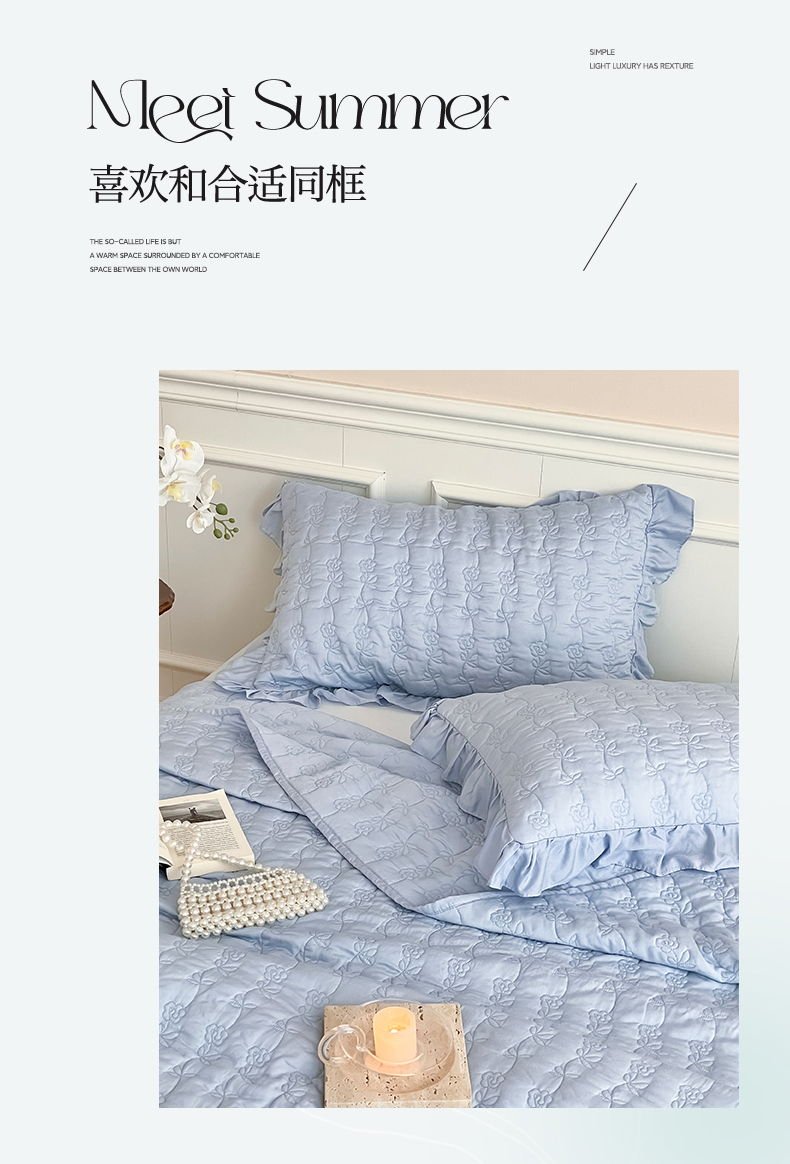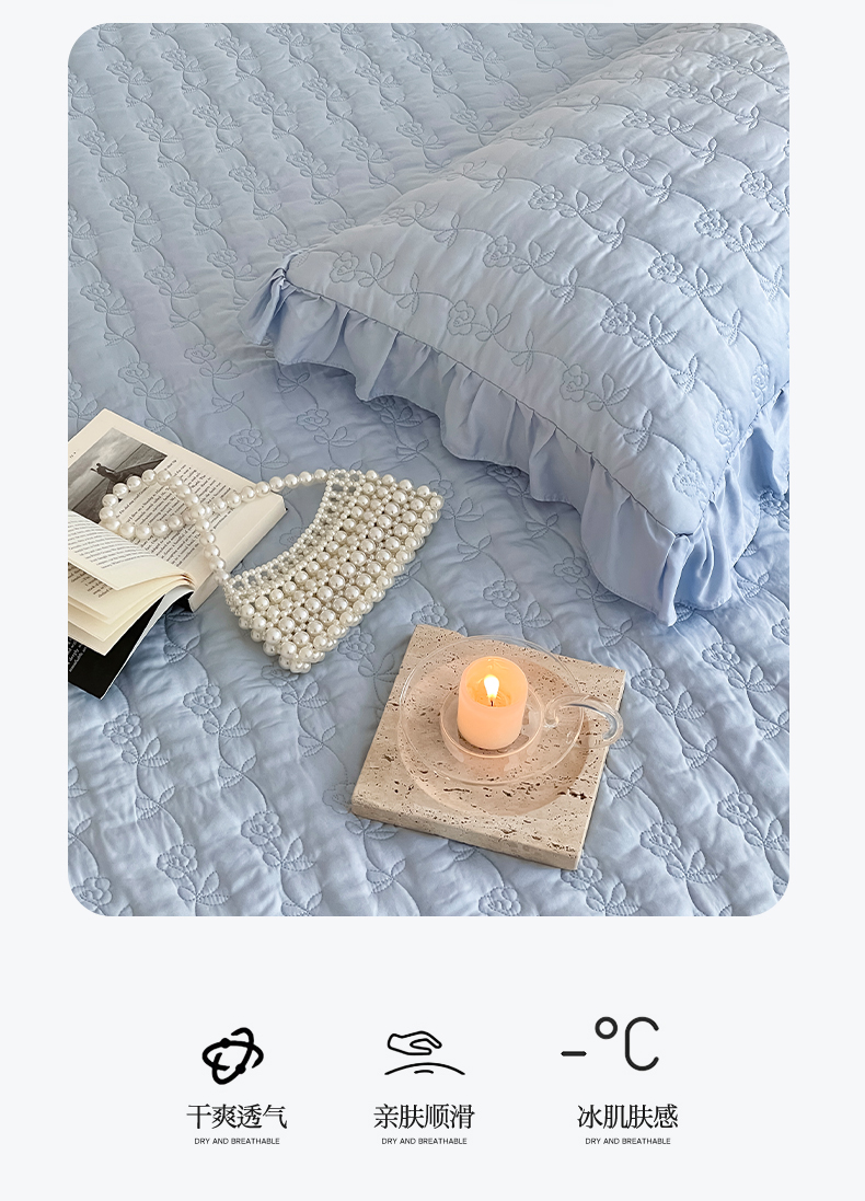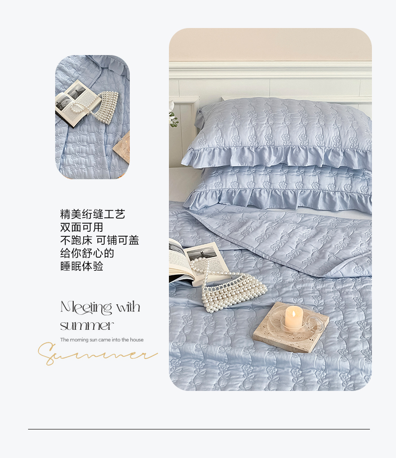 商品名称:2024新款兰精天丝花语系列夹棉绗缝床盖双面可用可铺可盖多用途盖毯 花语-夏至蓝