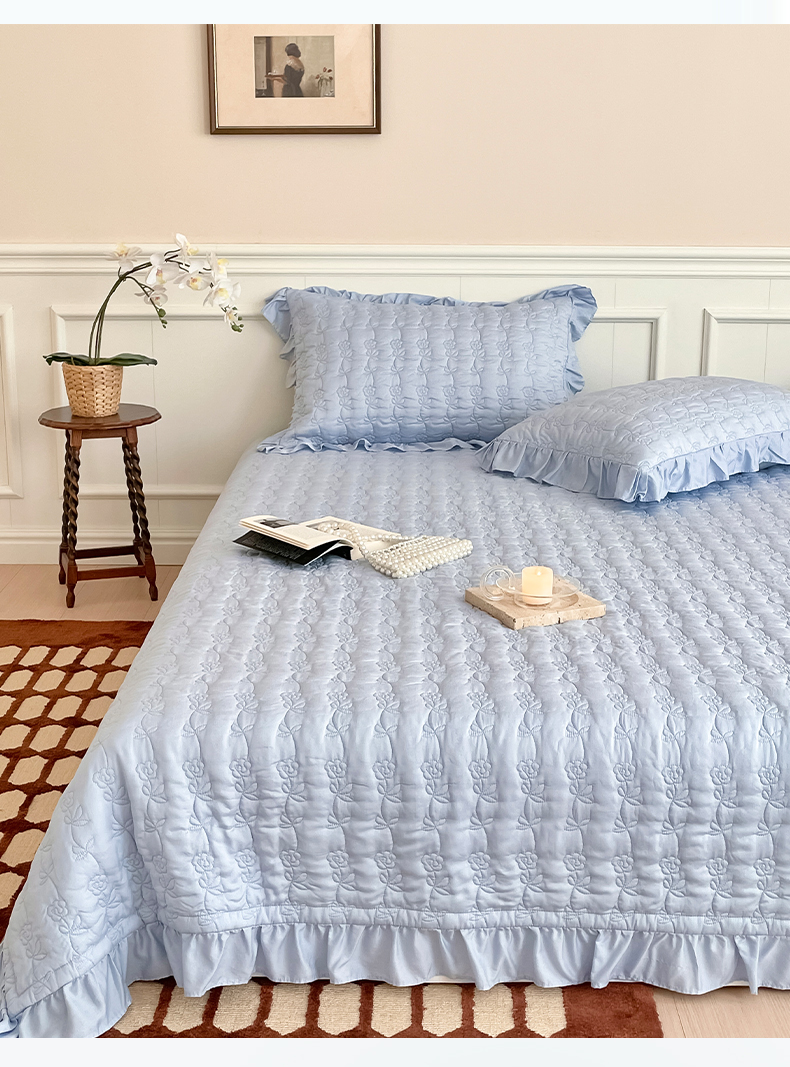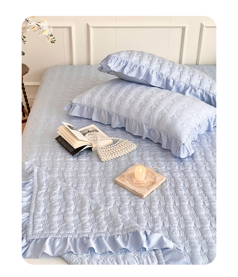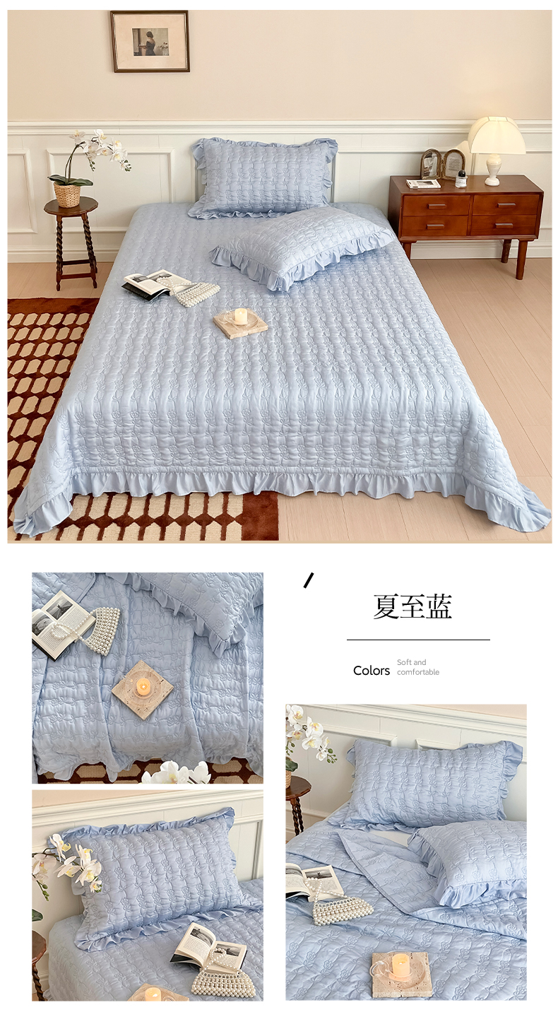 2022新款40S纯棉水洗棉韩版全棉荷叶边夹棉绗缝床盖三件套,海盐蓝,静谧灰,抹茶绿,奶油黄,千黛紫,浅豆沙,悠悠粉,云朵白,马卡桔,青草绿