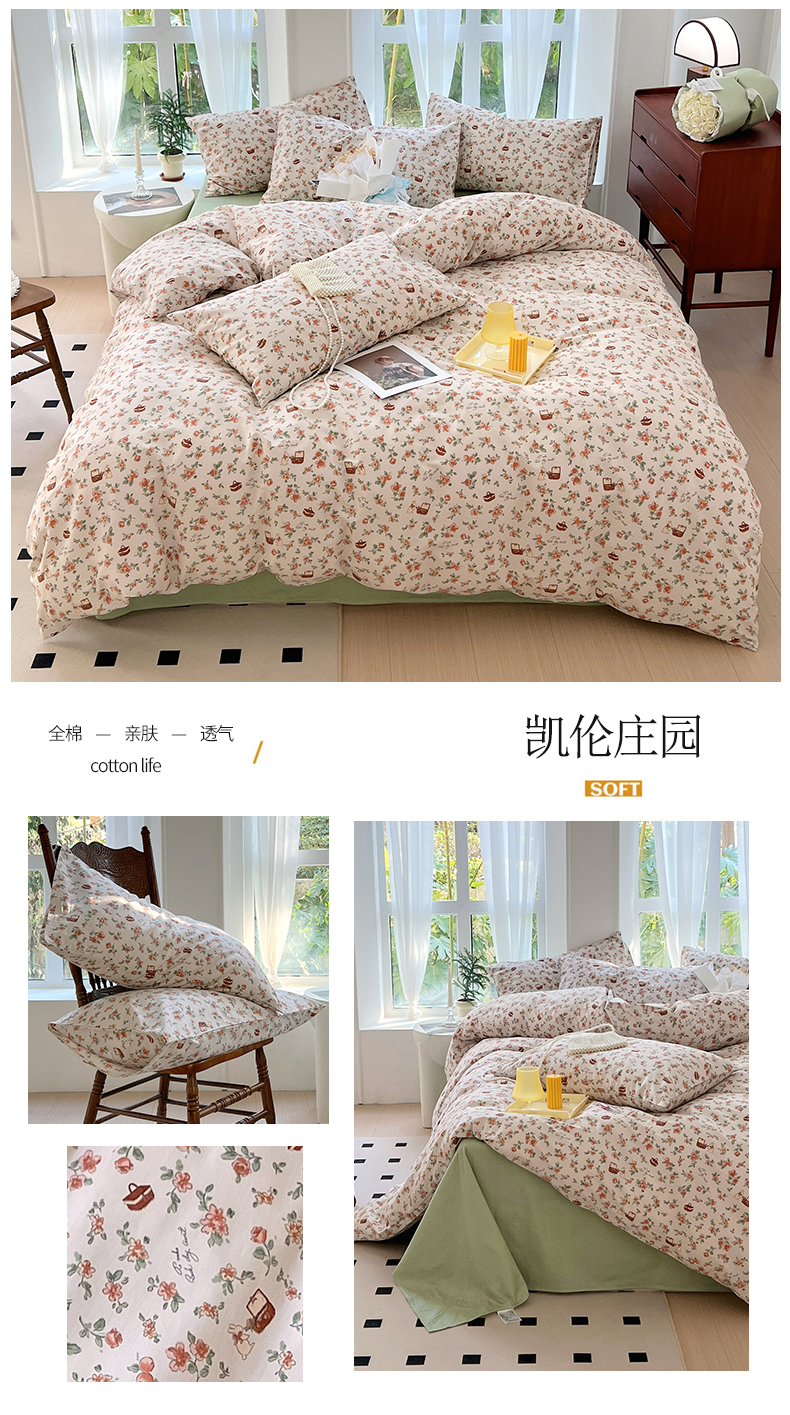 商品名称:启程2024新款全棉13372印花四件套直播爆款法式复古碎花系列 凯伦庄园