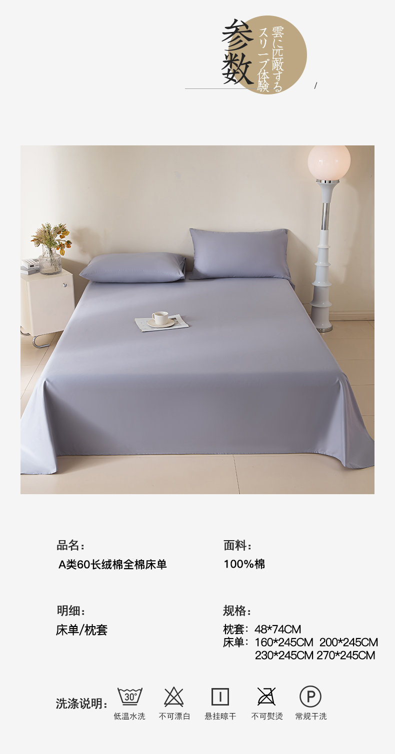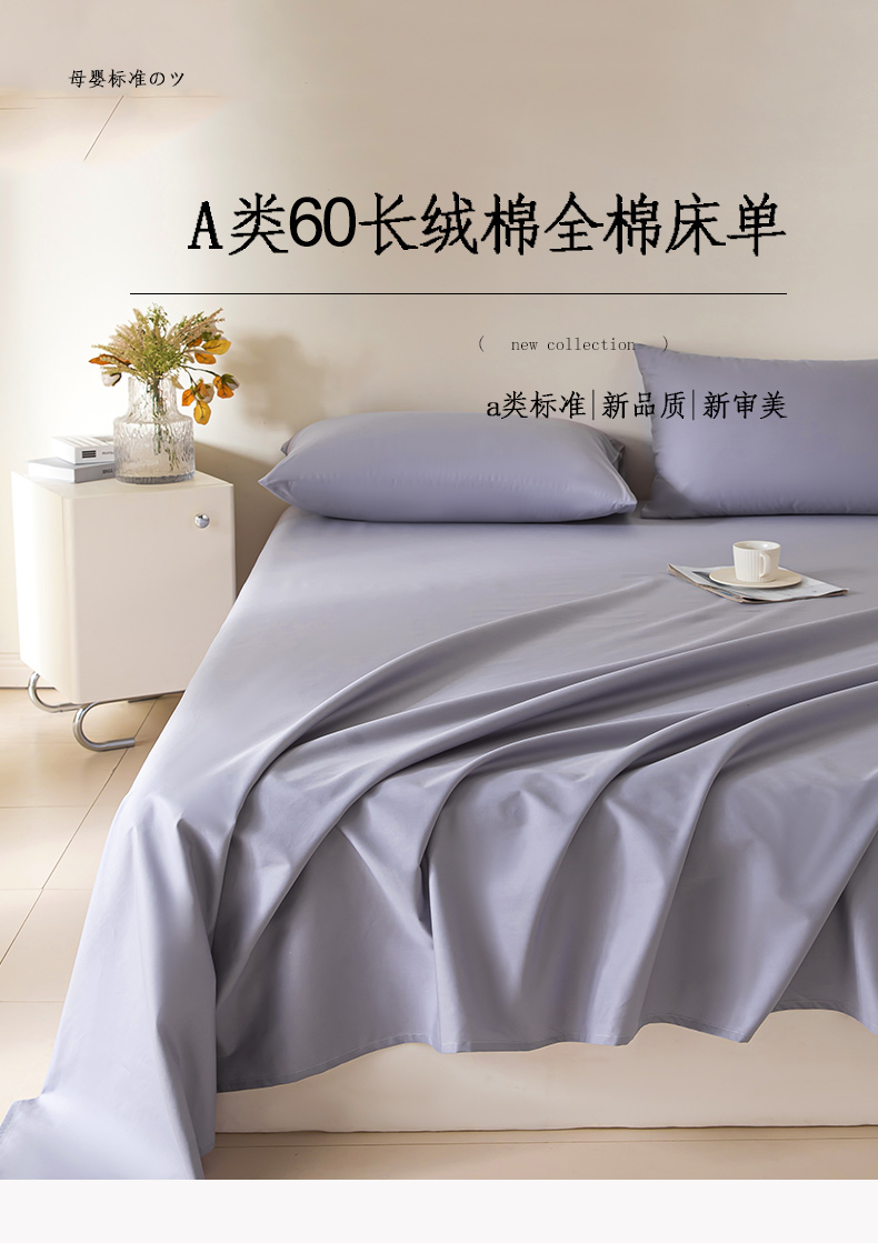 卧趣家纺 2024新品A类全棉长绒棉单品床单 暮山紫