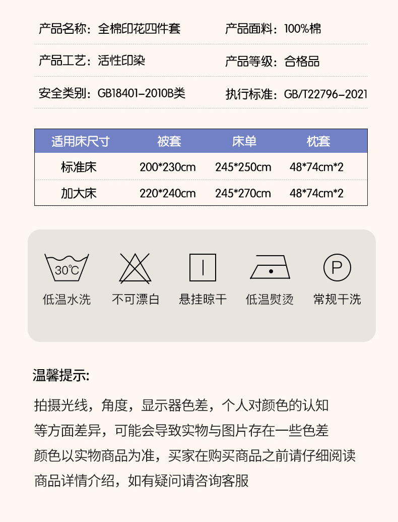 商品名称:曼秀琳家纺 2024新款活性全棉印花四件套 楚楚动人-紫