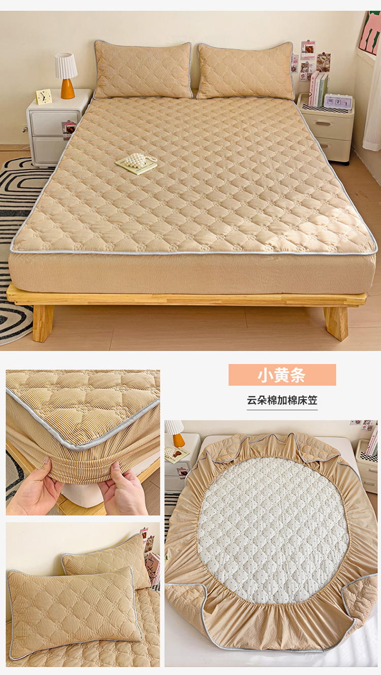 纽缦家纺 2024云朵棉亲肤加厚加棉床笠 小黄条