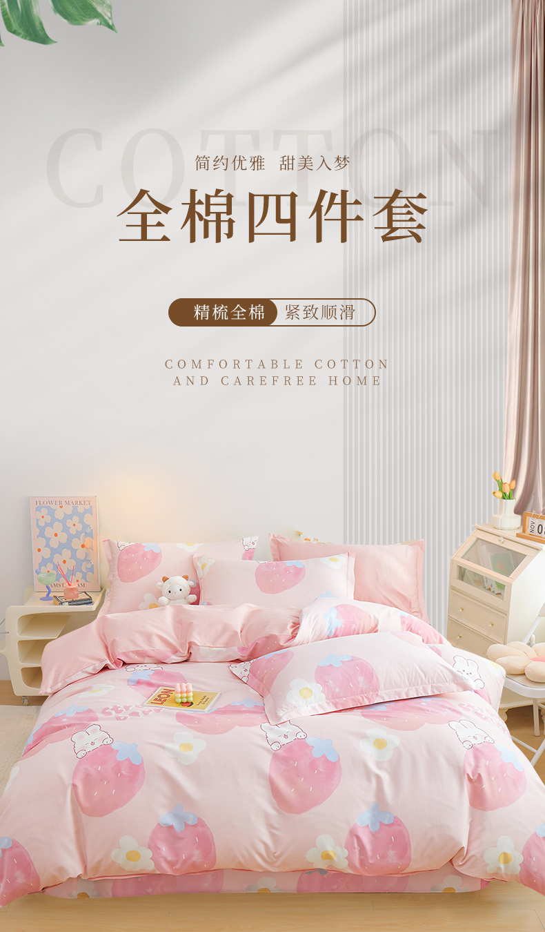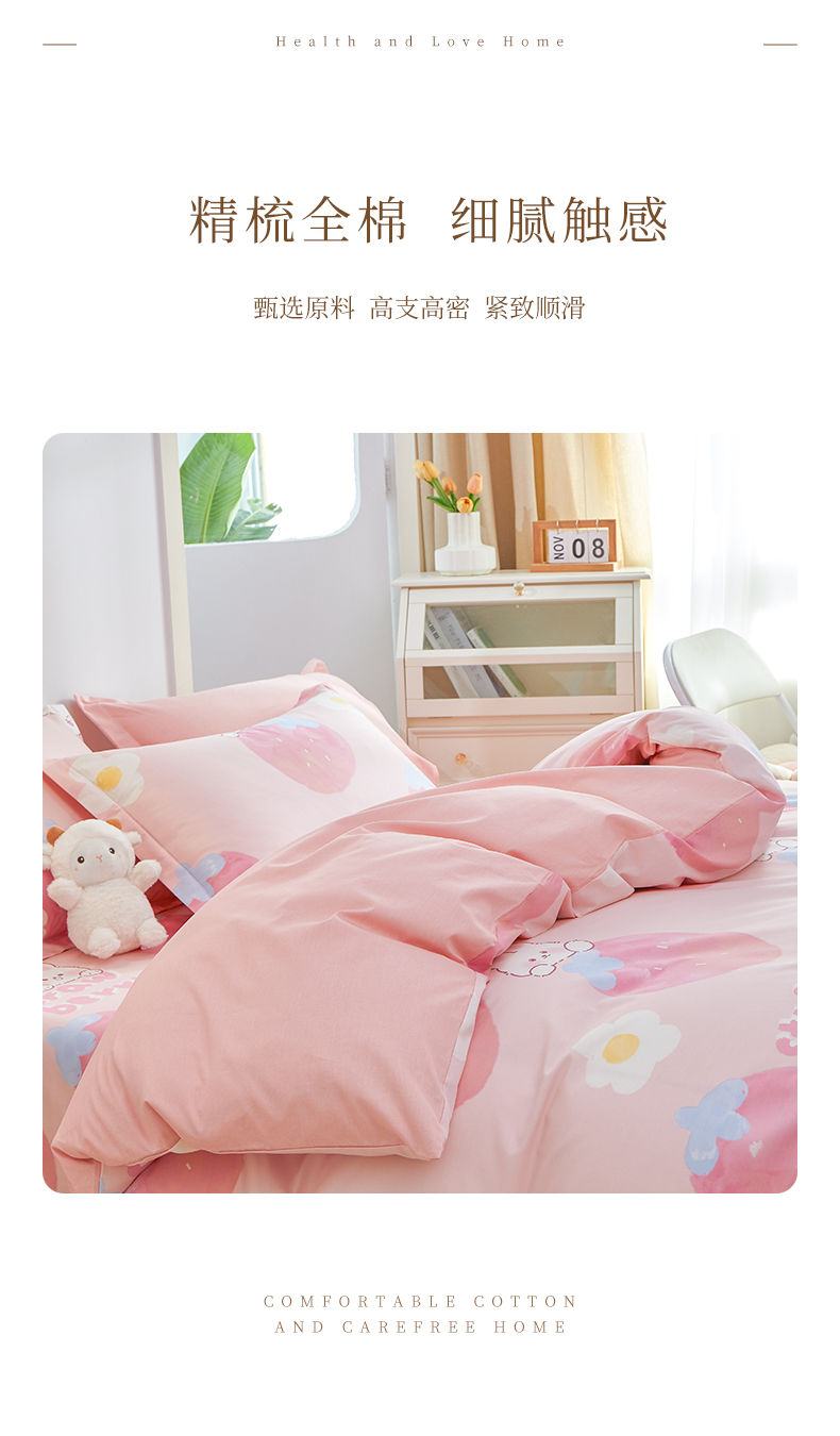 当前位置: 91家纺网 > 商品网购 > 床品套件 > 四件套 > 元元 2024新款小清新全棉四件套系列 哈尼-粉