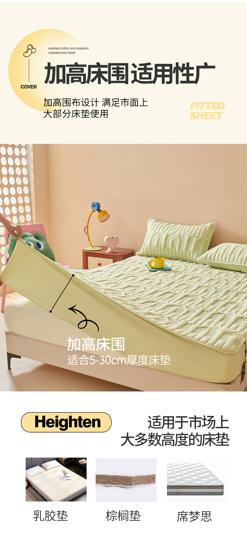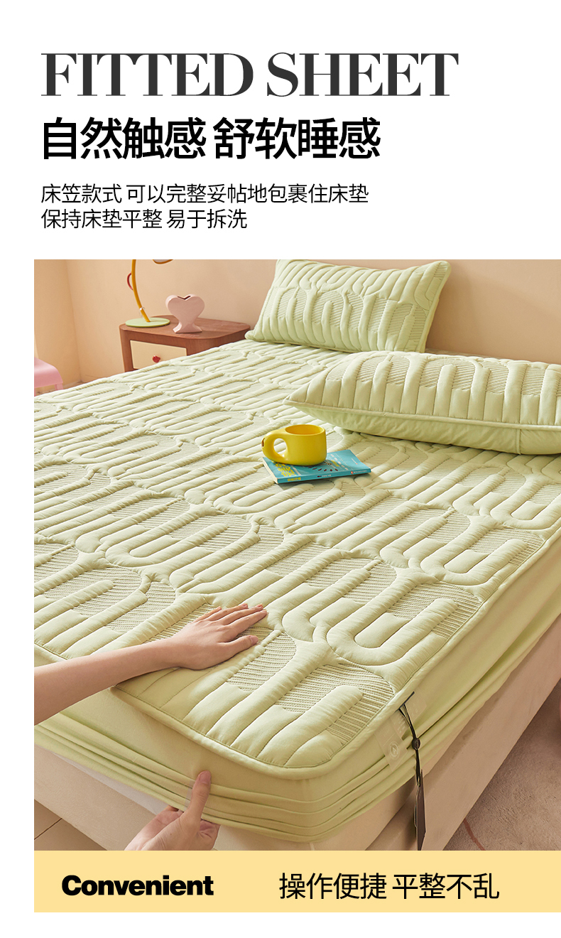 (总)3C 2025新款全棉水洗棉夹棉床笠-叶弦,叶弦-奶白,叶弦-浅粉,叶弦-浅灰,叶弦-浅咖,叶弦-浅兰,叶弦-浅绿,组合图