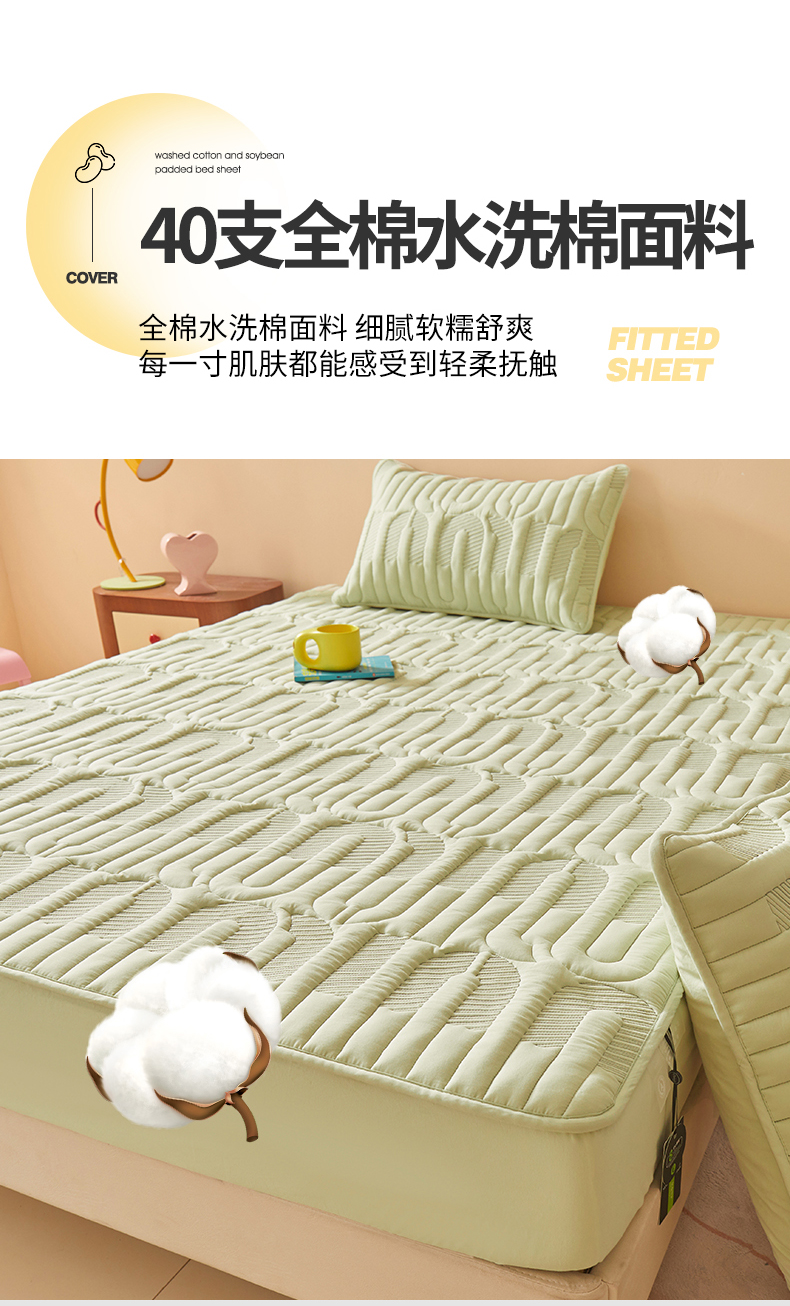 3C 2024新款miumiu全棉水洗棉床笠 青果绿