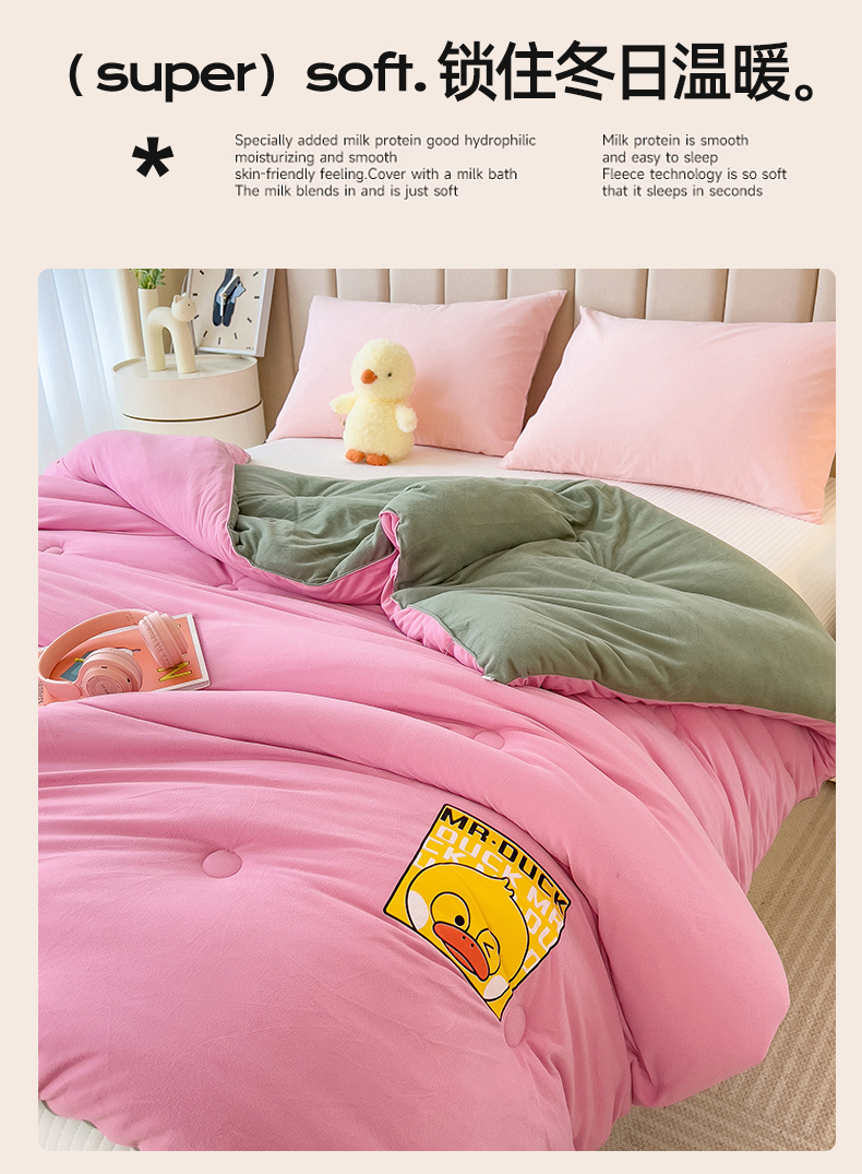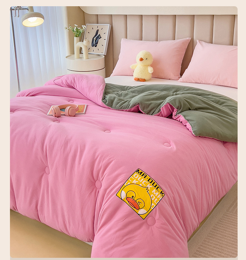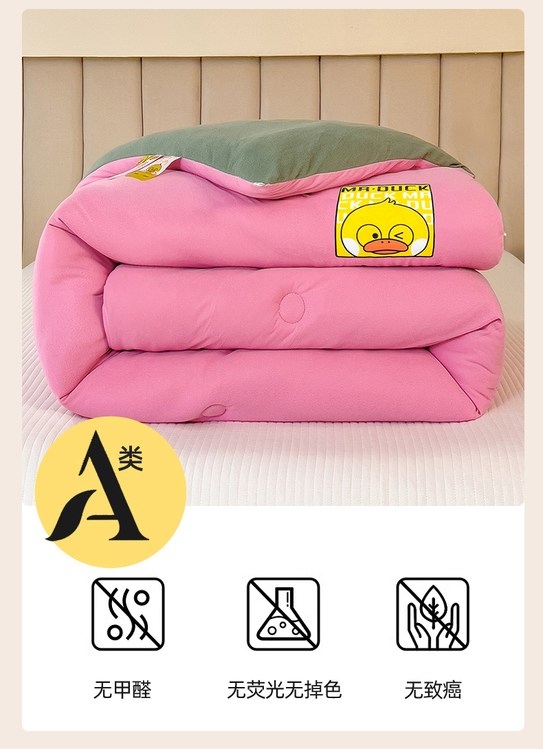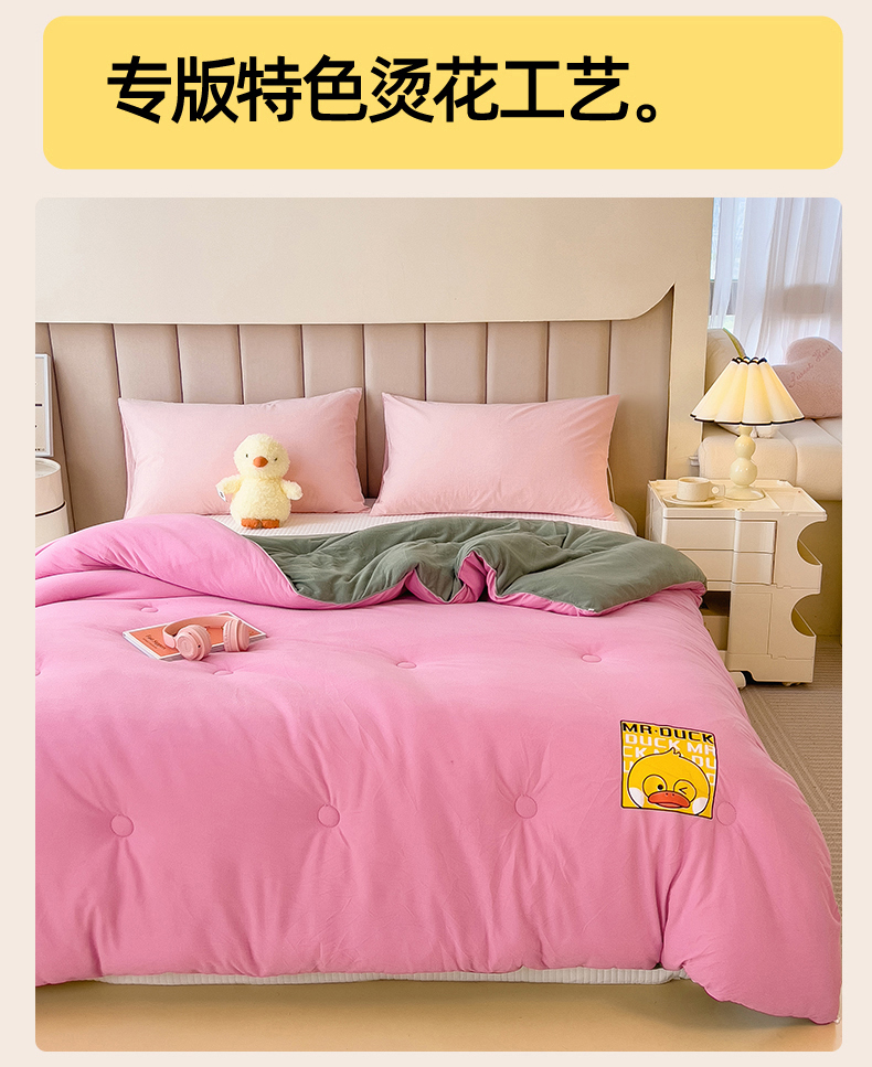 (总)金帛坊 2024新款磨毛大豆双胎子母被子被芯,浅灰,淡粉,纯白