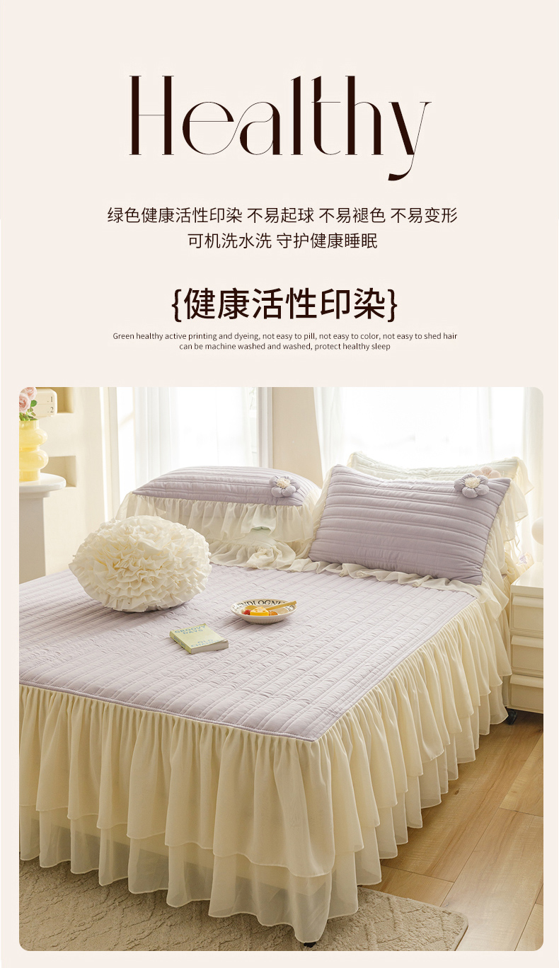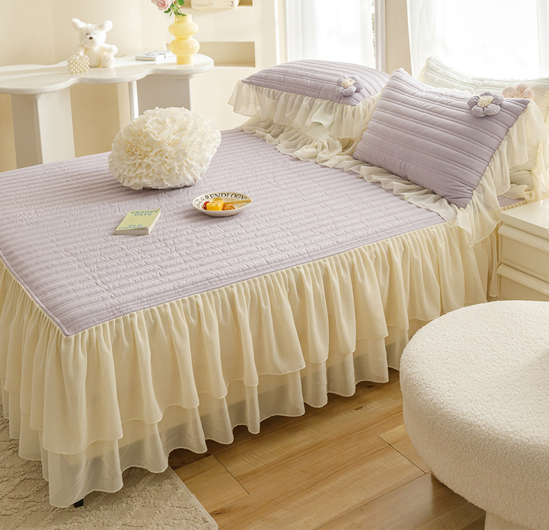 商品名称:胜权家纺 2024新款A类水洗60支全棉工艺款夹棉床裙三件套 花儿朵朵-凝香紫