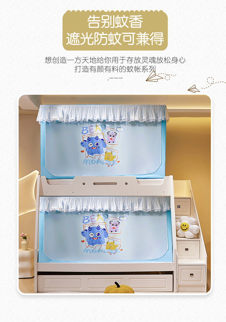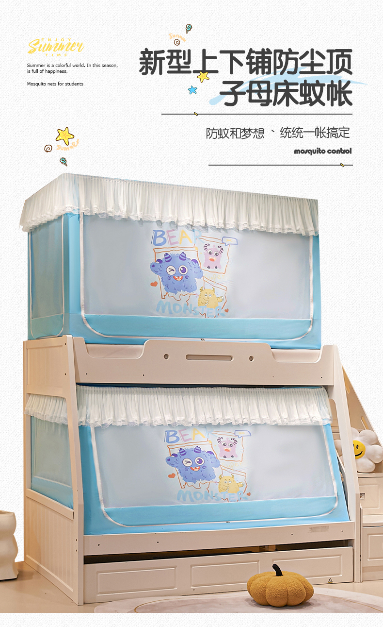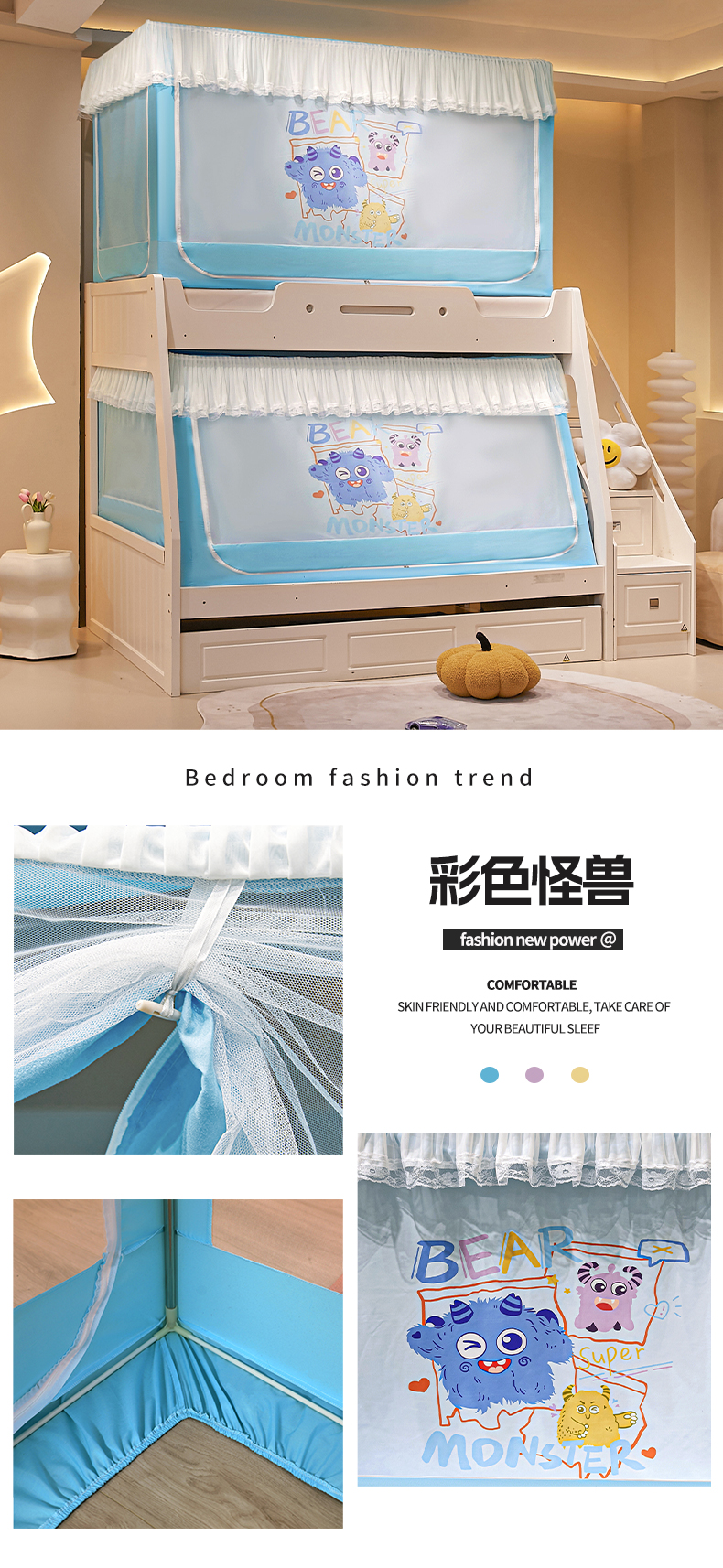 当前位置: 91家纺网 > 商品网购 > 床上用品 > 蚊帐 > 拉幕式蚊帐 > 安金蚊帐 2024新款新型上下铺防尘顶子母床蚊帐 彩色怪兽有帘