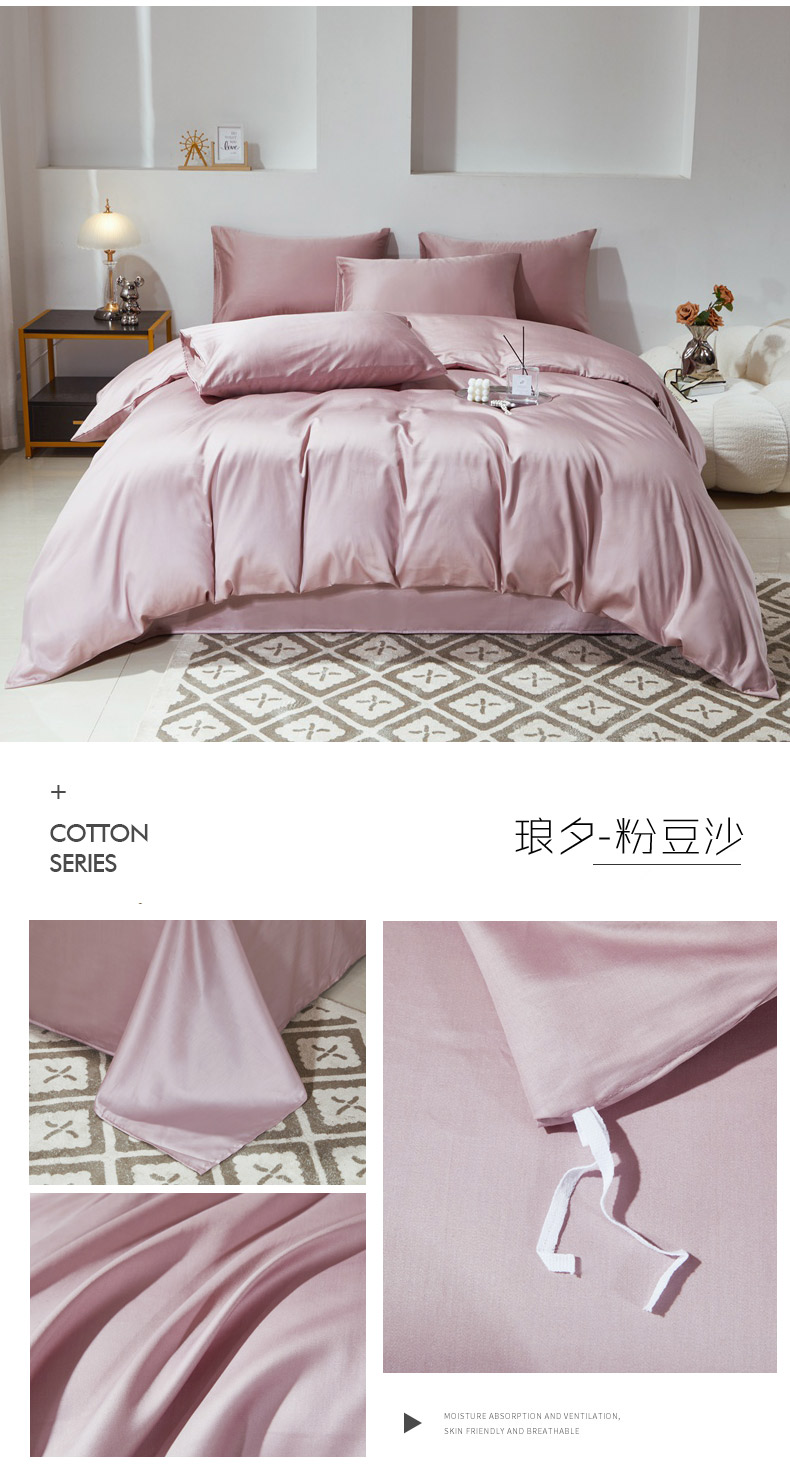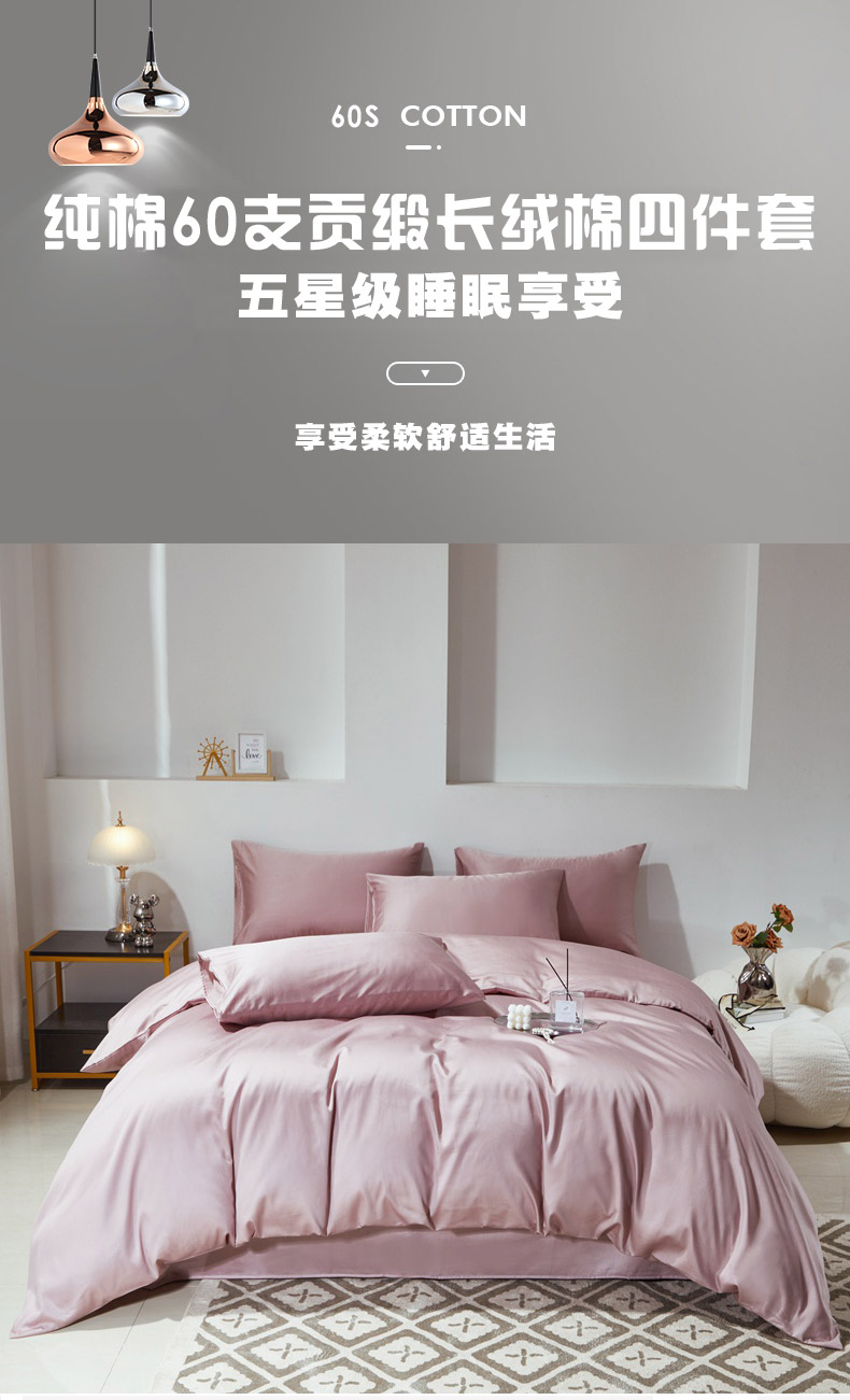 当前位置: 91家纺网 > 商品网购 > 床品套件 > 四件套 > 全棉普通四件套 > 晶缦家纺 2024新款全棉60支贡缎长绒棉纯色多规格四件套和单品-琅夕系列 四件套 琅夕-粉豆沙