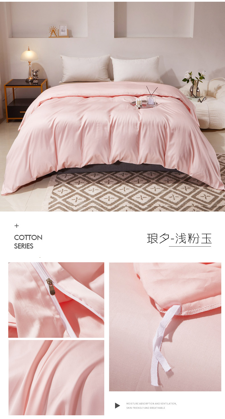 商品名称:晶缦家纺 2024新款全棉60支贡缎长绒棉纯色多规格四件套和单品-琅夕系列 单被套 琅夕-浅粉玉