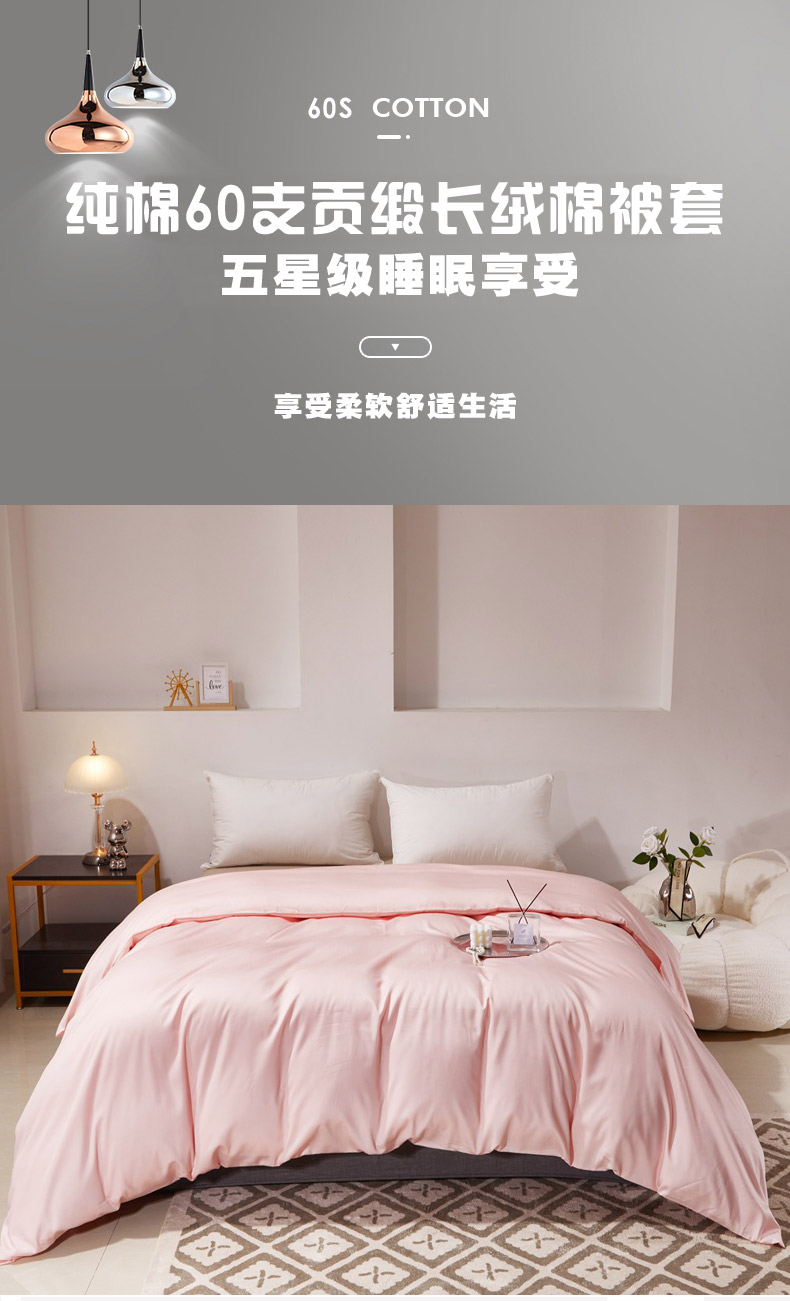 晶缦家纺 2024新款全棉60支贡缎长绒棉纯色多规格四件套和单品-琅夕系列 单被套 琅夕-浅粉玉
