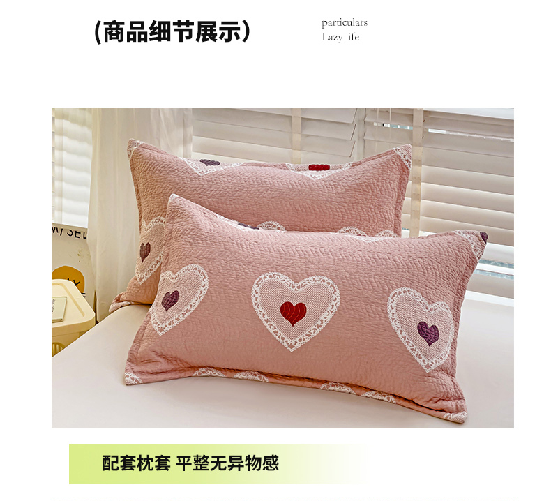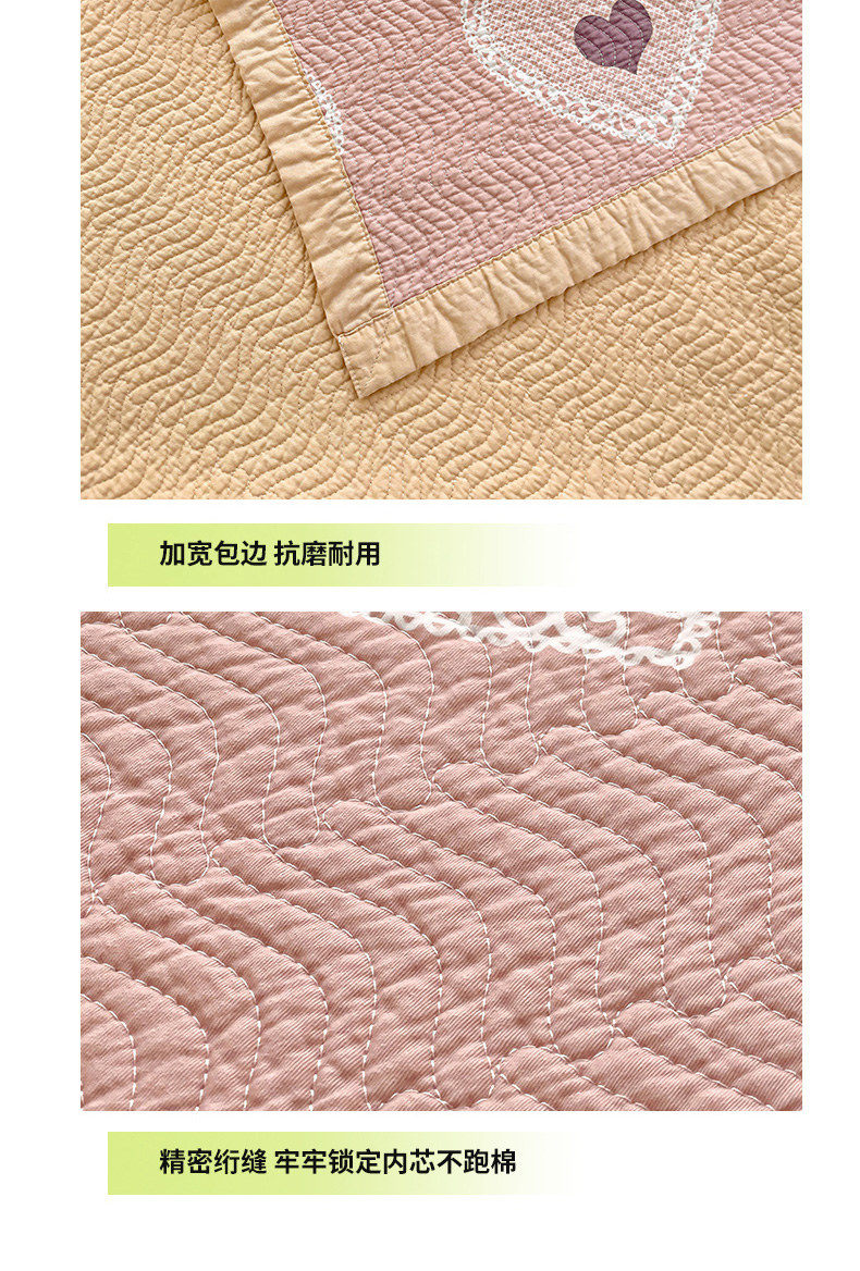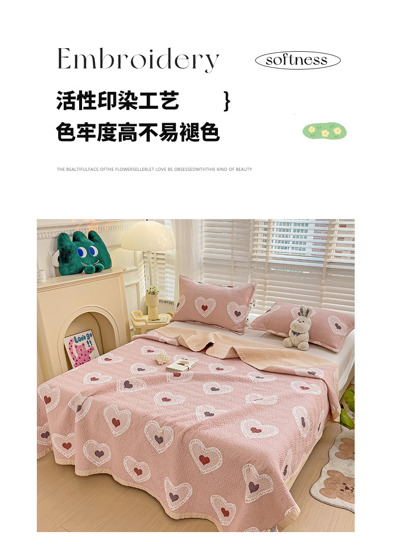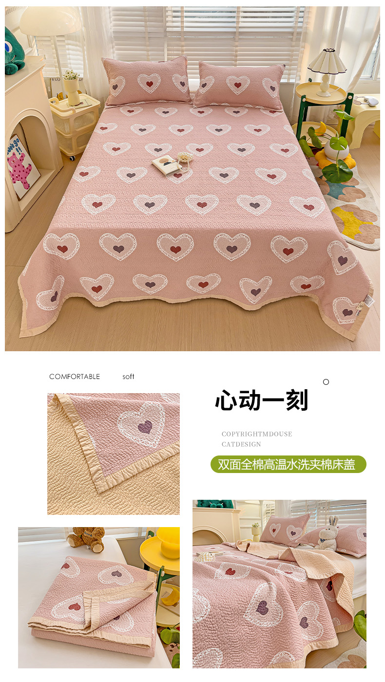 商品名称:胜权家纺 2024新款A类60支双面全棉高温水洗夹棉床盖三件套 心动一刻