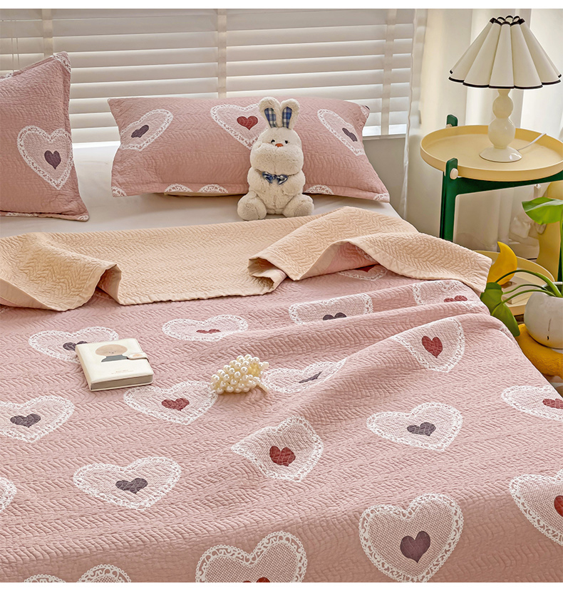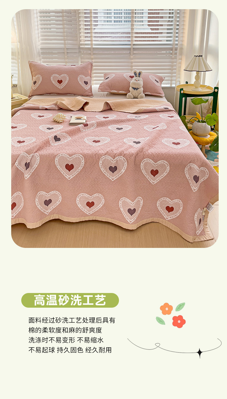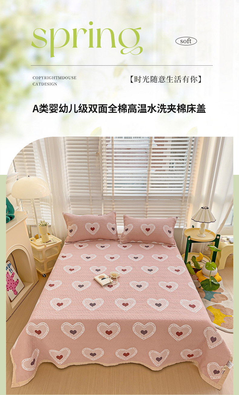 胜权家纺 2024新款A类60支双面全棉高温水洗夹棉床盖三件套 心动一刻