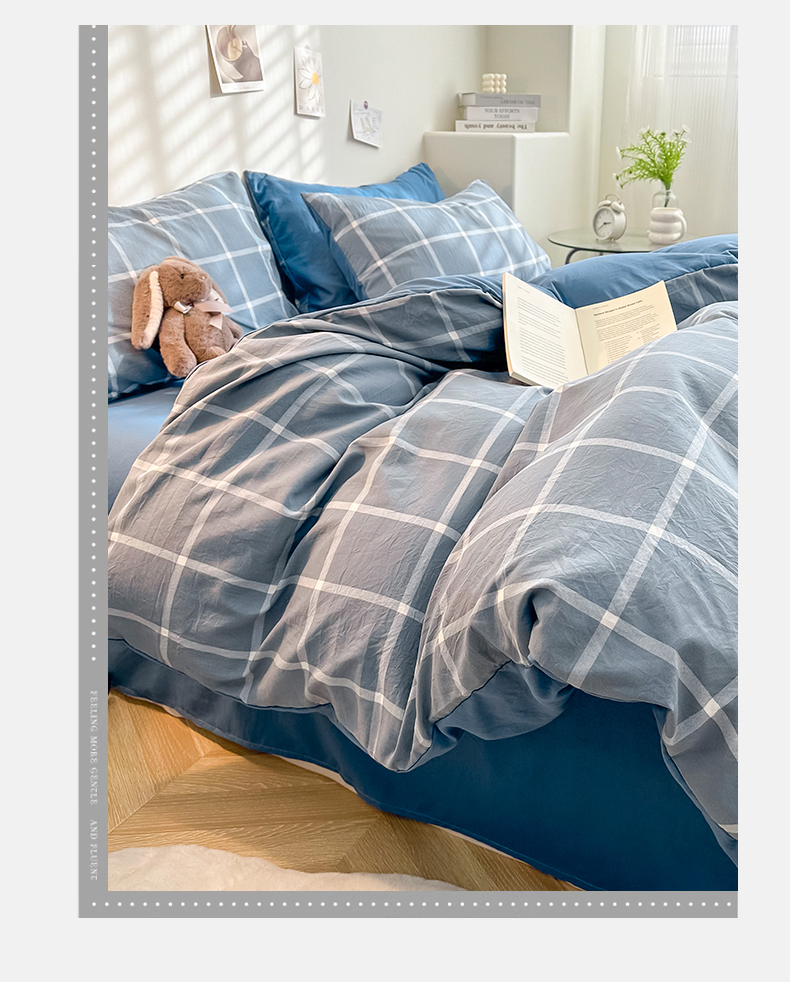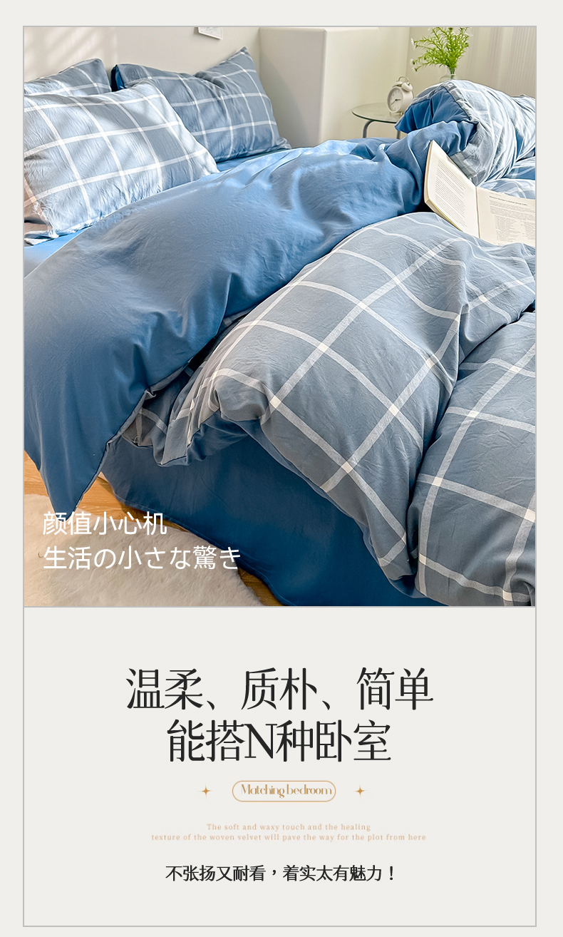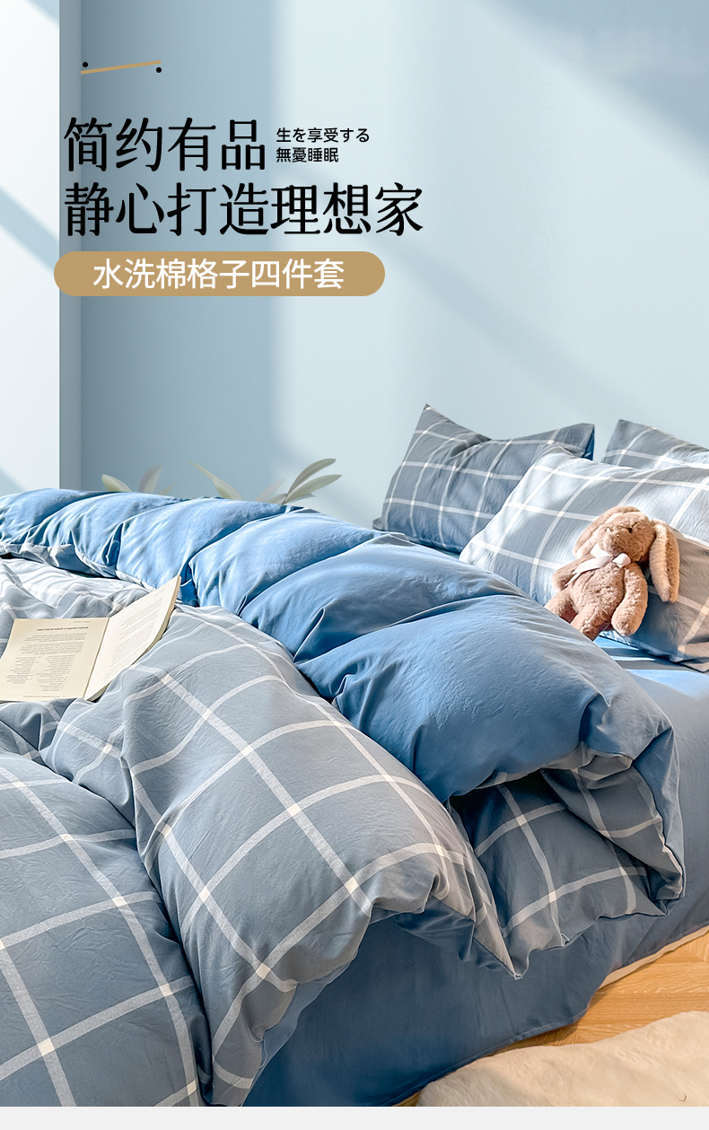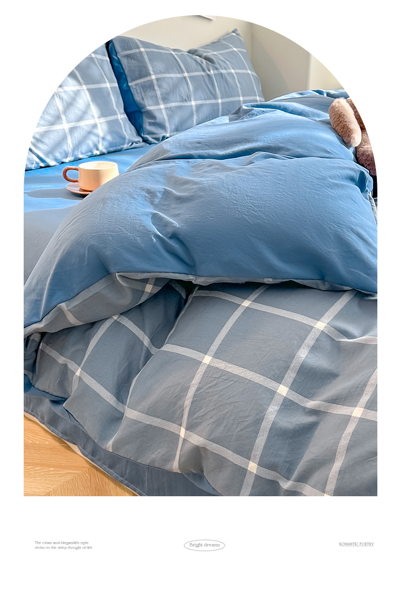 当前位置: 91家纺网 > 商品网购 > 床品套件 > 四件套 > 水洗棉四件套 > 古吉梦 2024新款水洗棉小清新印花格子系列四件套 G-牛仔蓝+宾利蓝