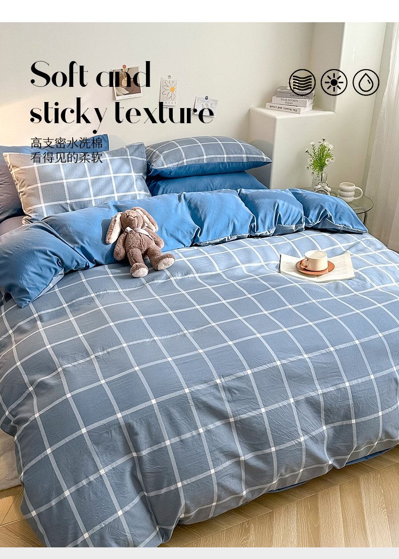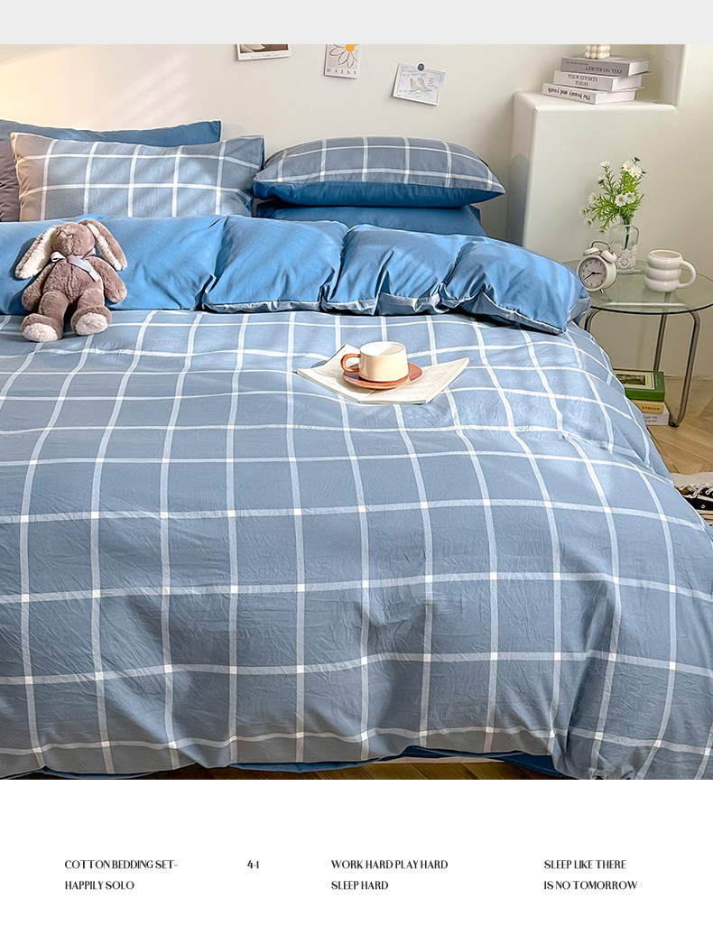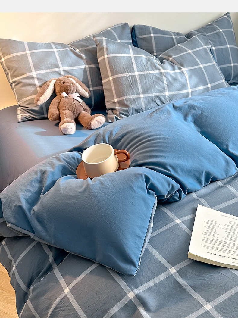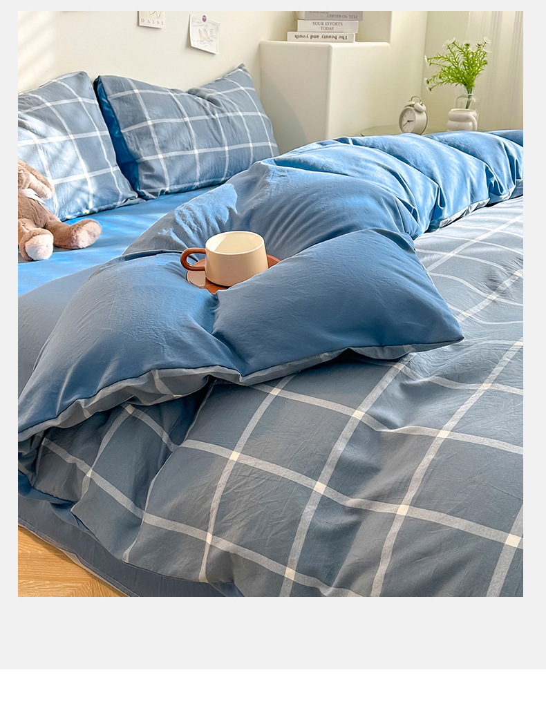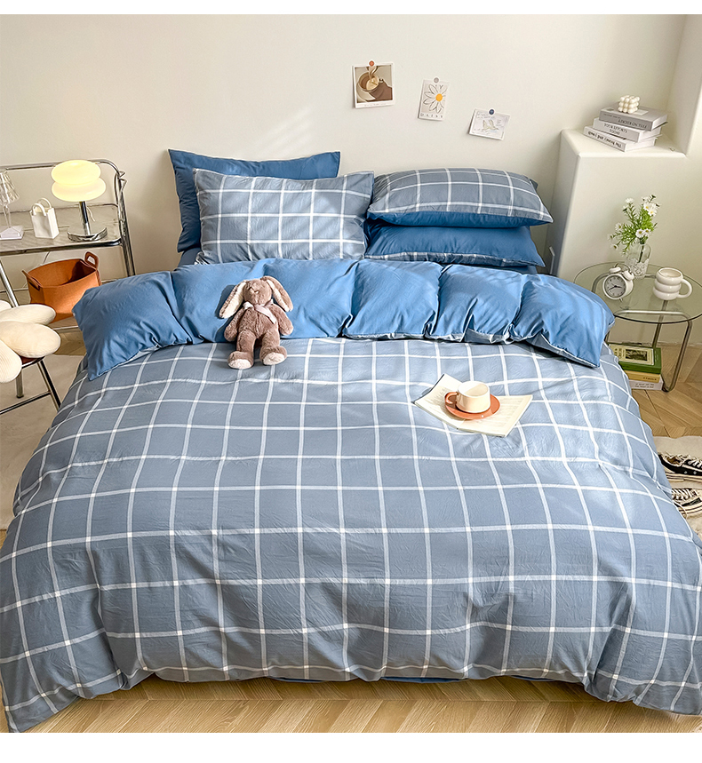 当前位置: 91家纺网 > 商品网购 > 床品套件 > 四件套 > 水洗棉四件套 > 古吉梦 2024新款水洗棉小清新印花格子系列四件套 G-牛仔蓝+宾利蓝