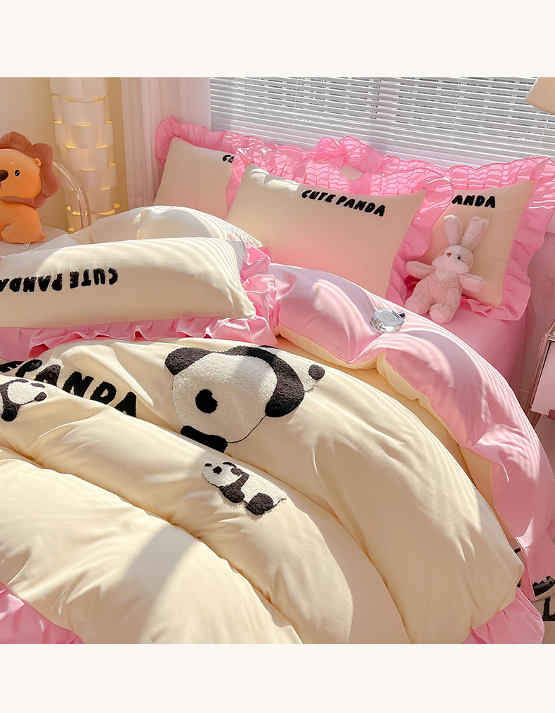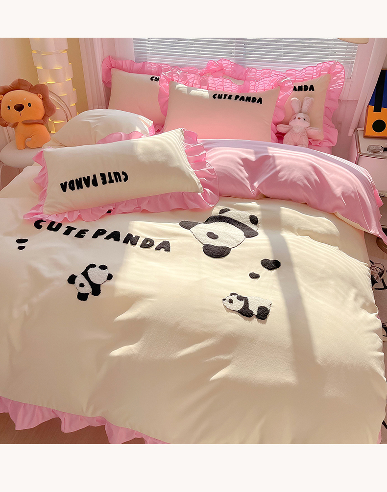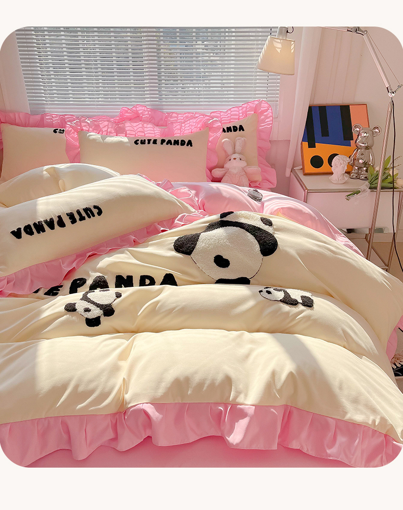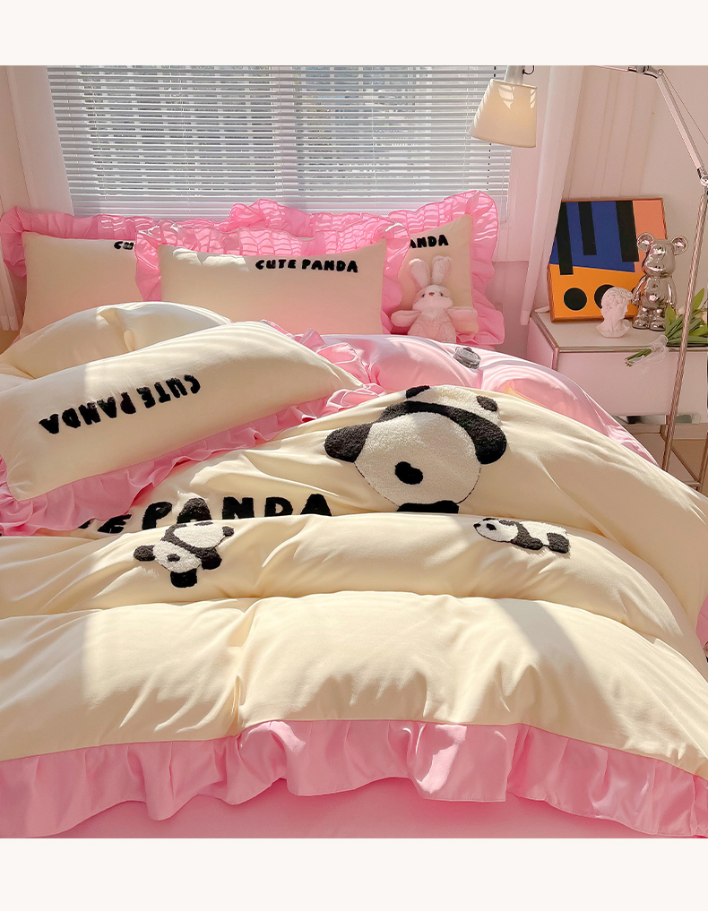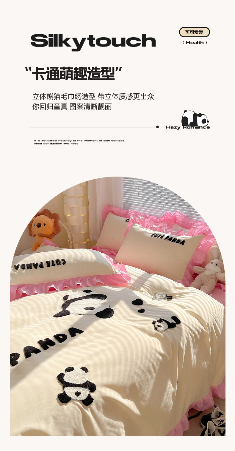 (总)韩都家居 2025新款牛奶绒毛巾绣四件套-系列一,熊猫懒懒,蛋糕猫-粉格,蛋糕猫-兰格,欢乐狗,腊肠狗,圣诞树,小白鸭