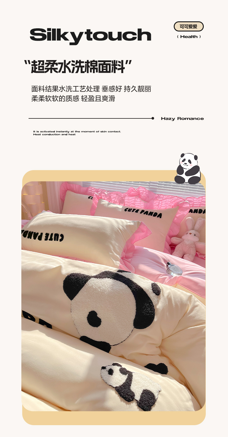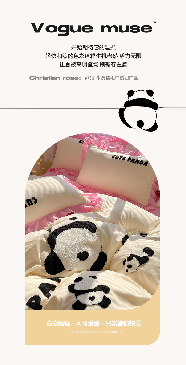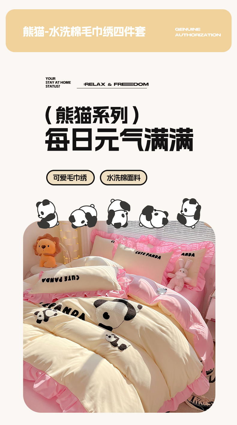 商品名称:韩都家居 2024新款亲肤水洗棉毛巾绣四件套-熊宝系列 熊宝-奶白粉