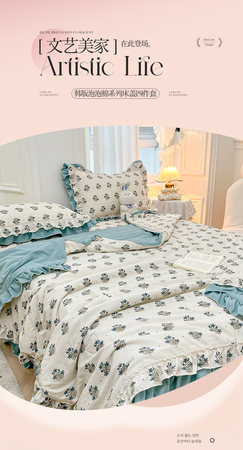 商品名称:恒爱家纺 2024新款韩版泡泡棉床盖系列四件套 相思树