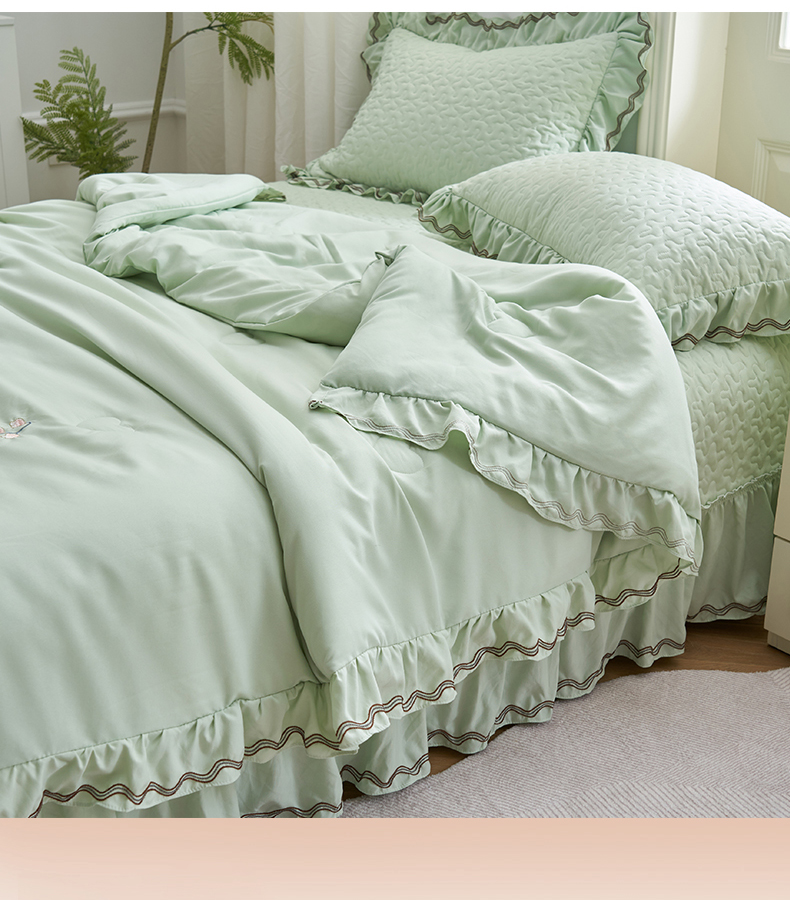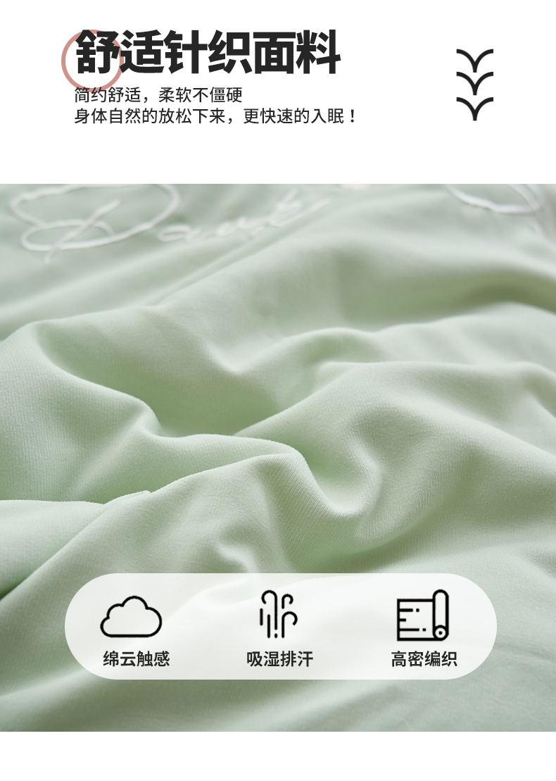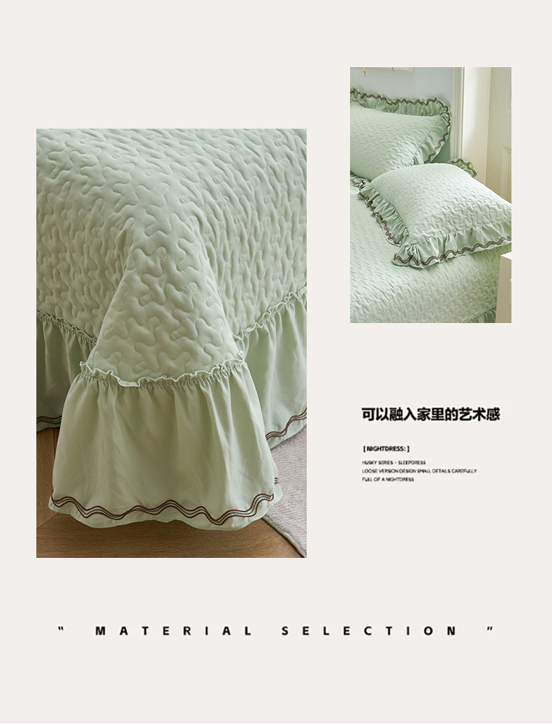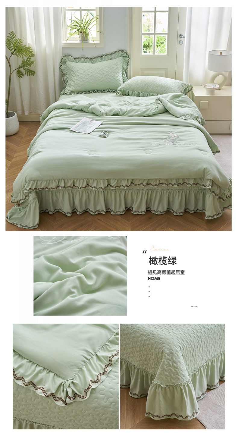 商品名称:恒爱家纺 2024新款A类针织夹棉床盖款夏被四件套-玉玲珑 橄榄绿