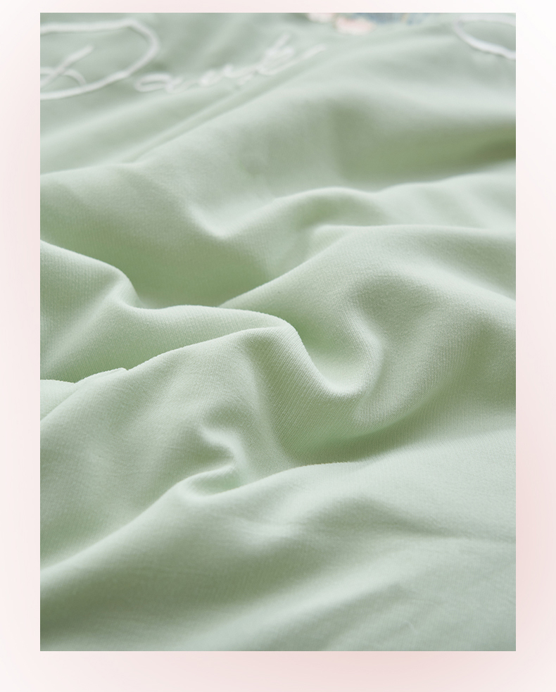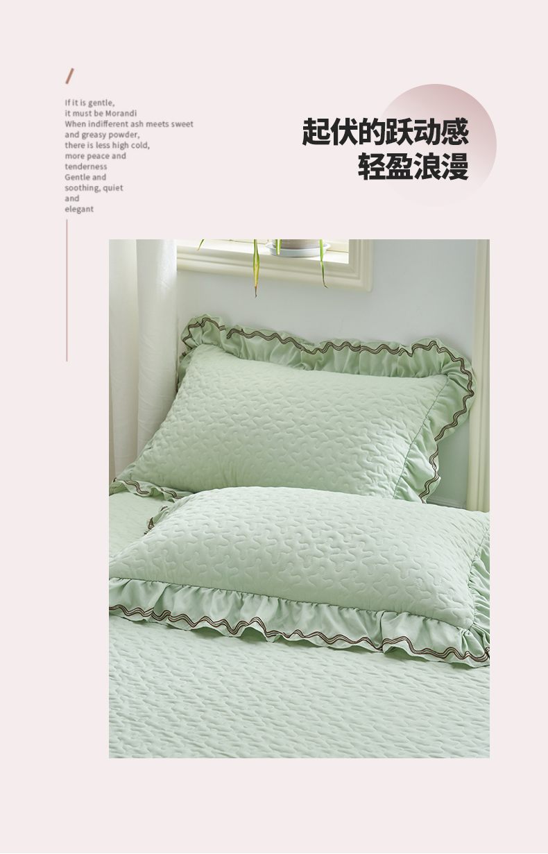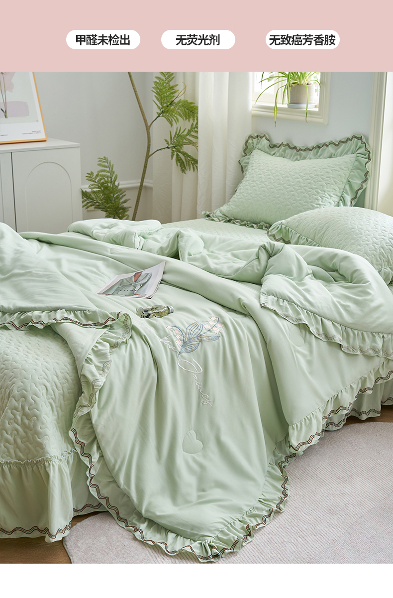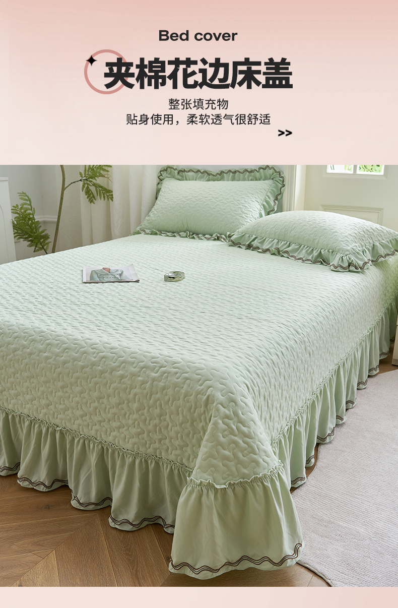 商品名称:恒爱家纺 2024新款A类针织夹棉床盖款夏被四件套-玉玲珑 橄榄绿