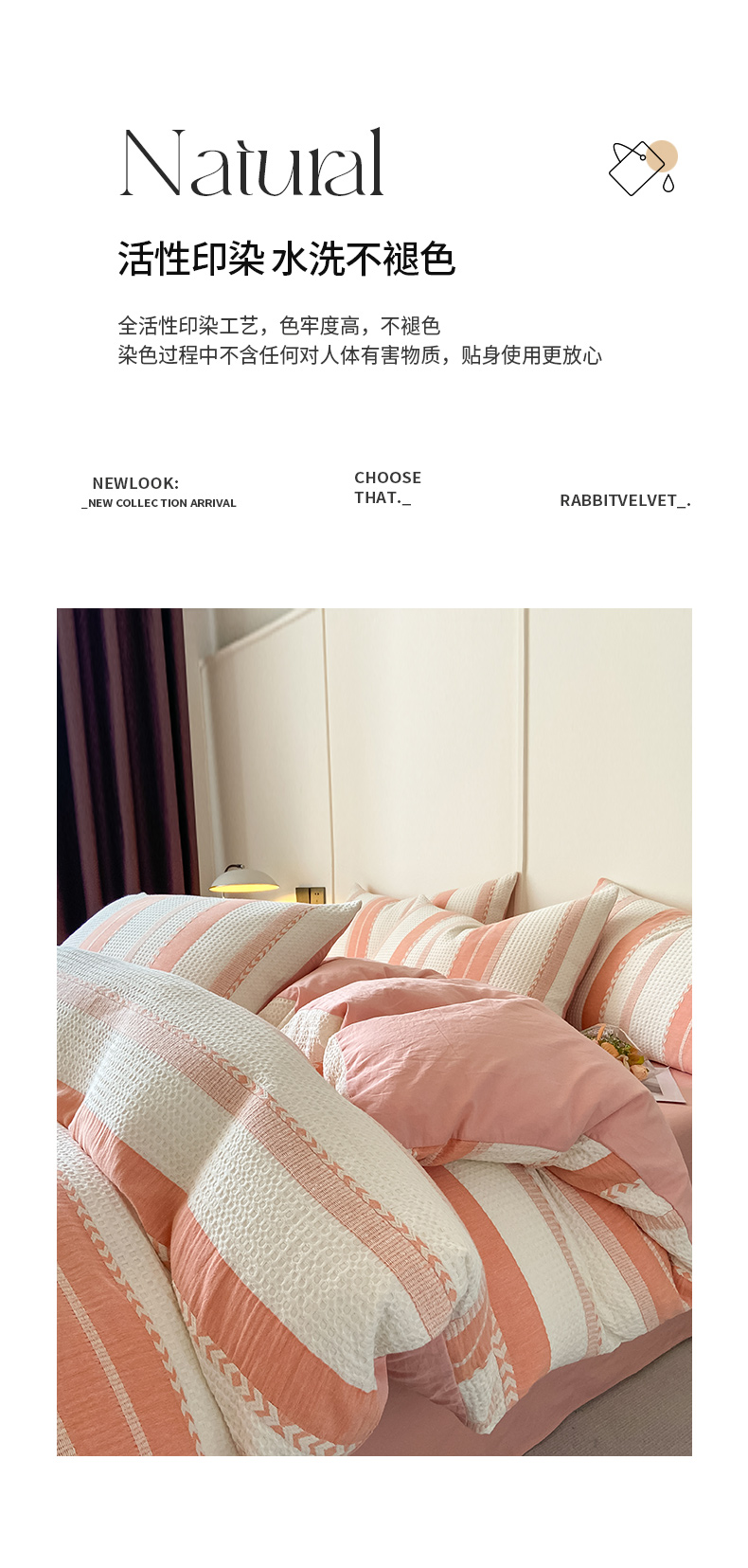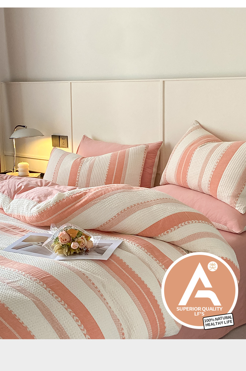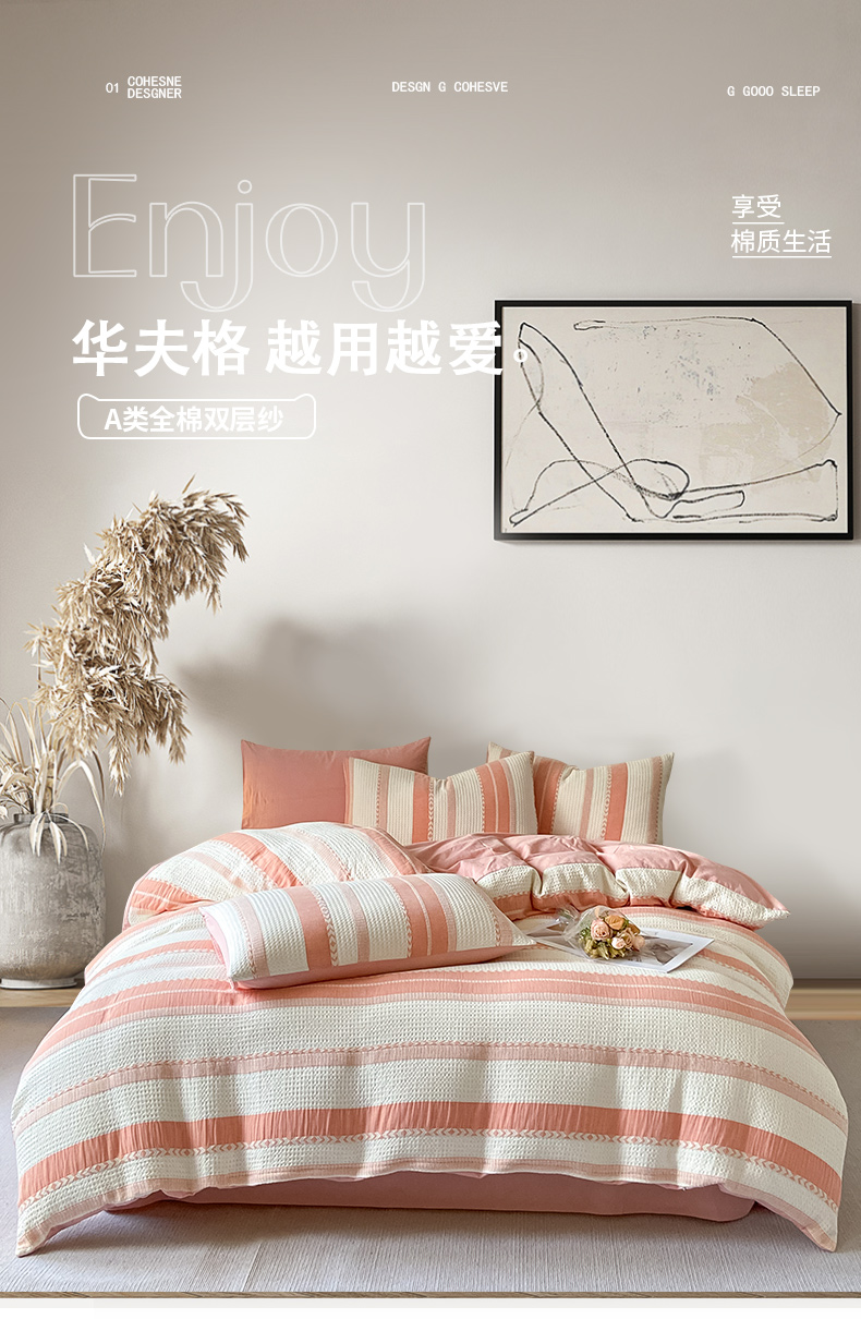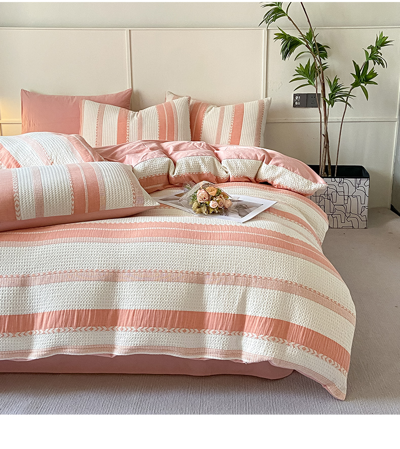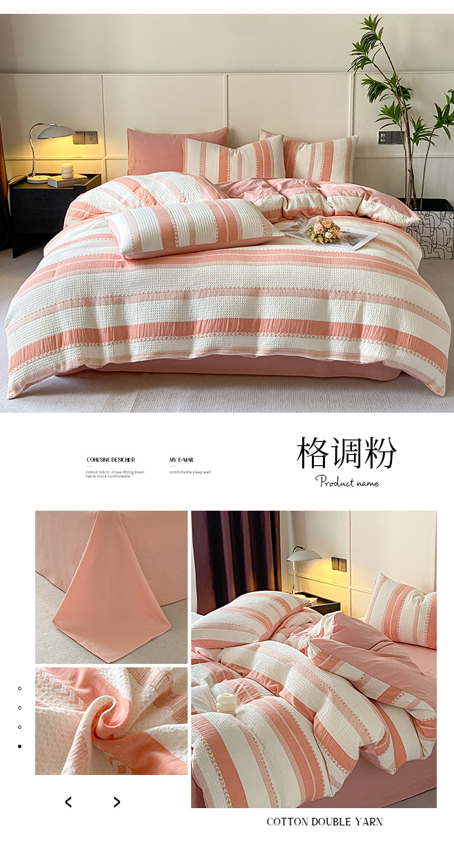 商品名称:ab家纺 2024新款彩条双层纱提花四件套 格调粉