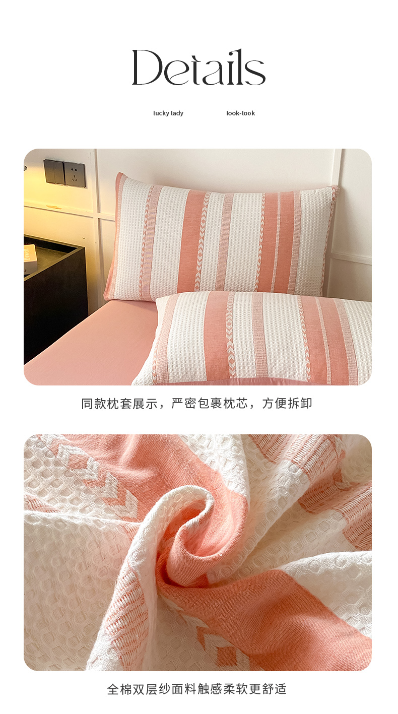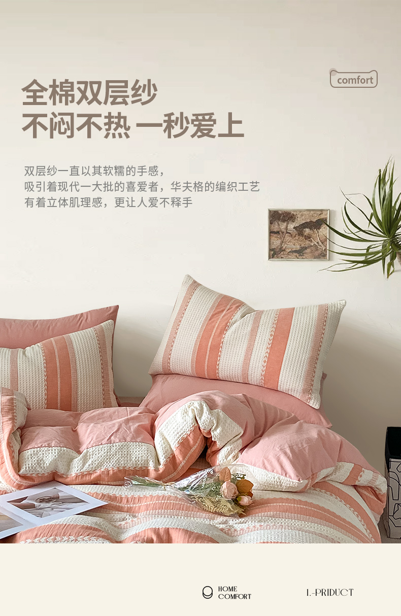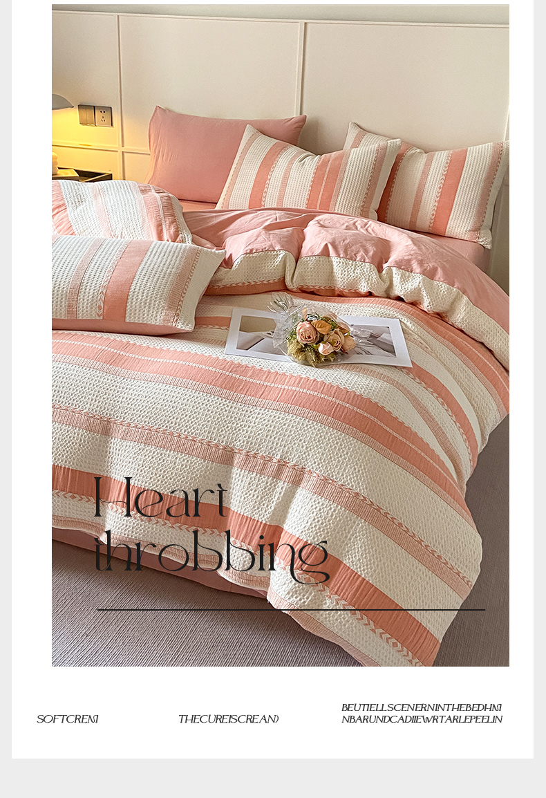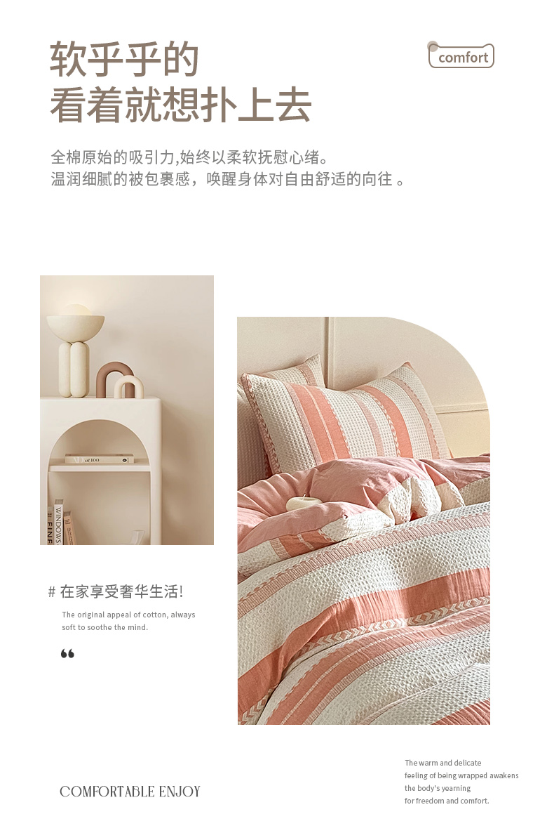 商品名称:ab家纺 2024新款彩条双层纱提花四件套 格调粉
