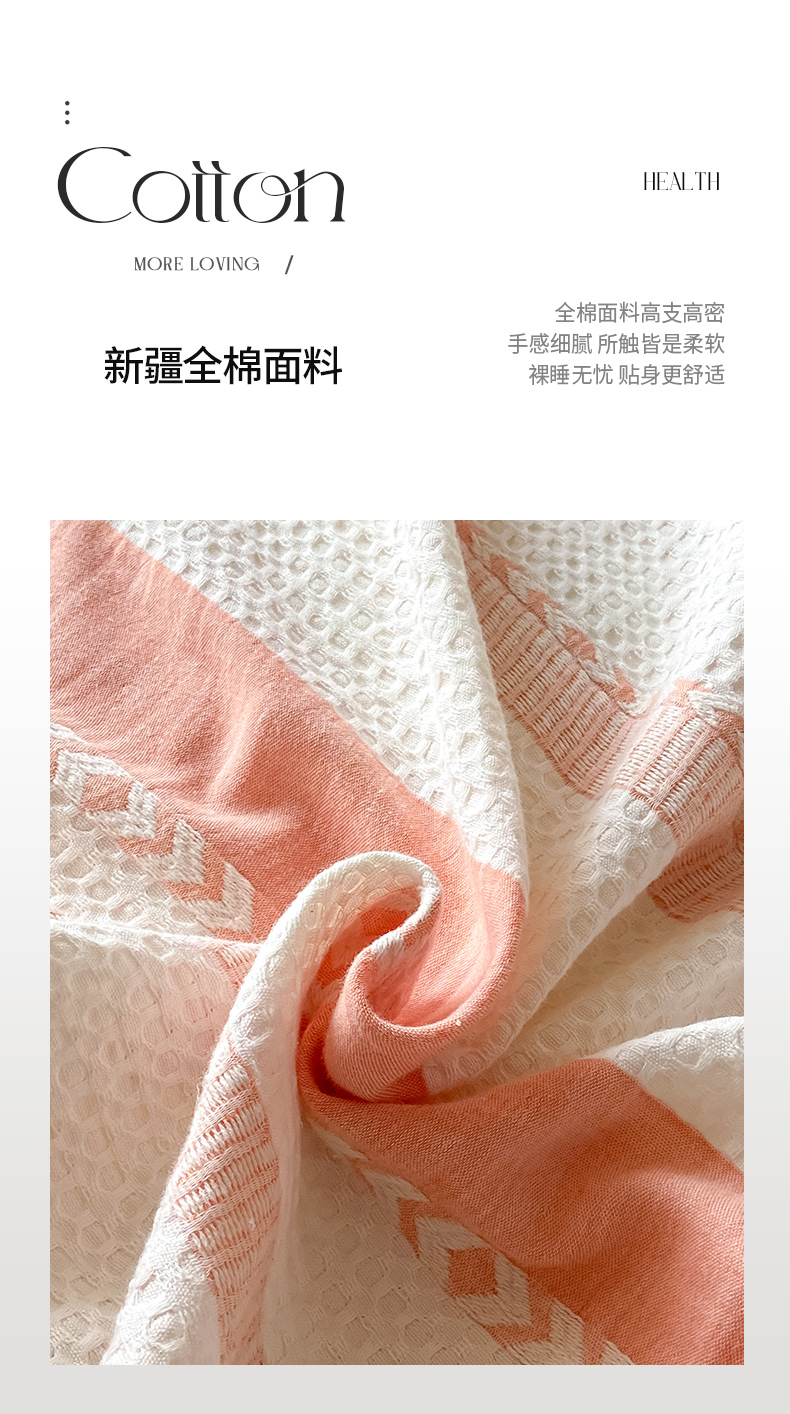 ab家纺 2024新款彩条双层纱提花四件套 格调粉