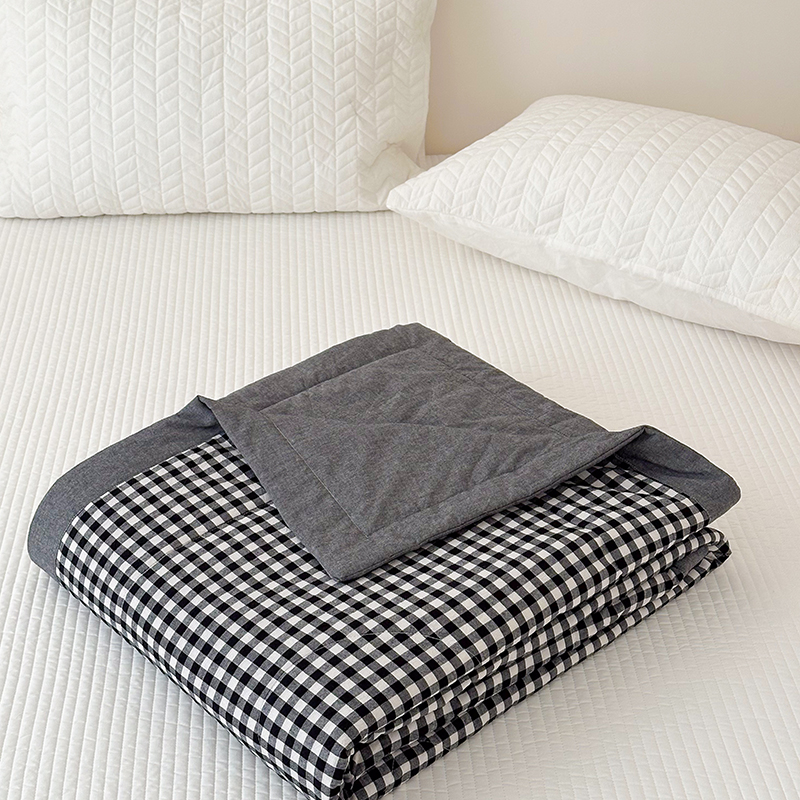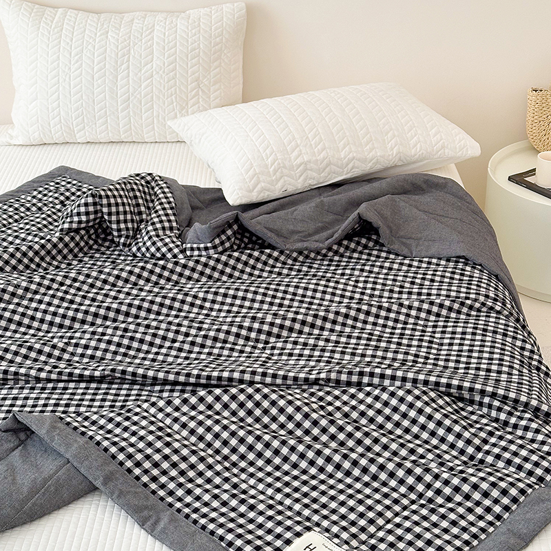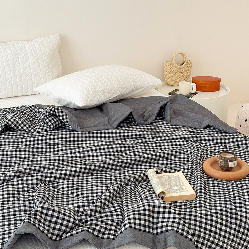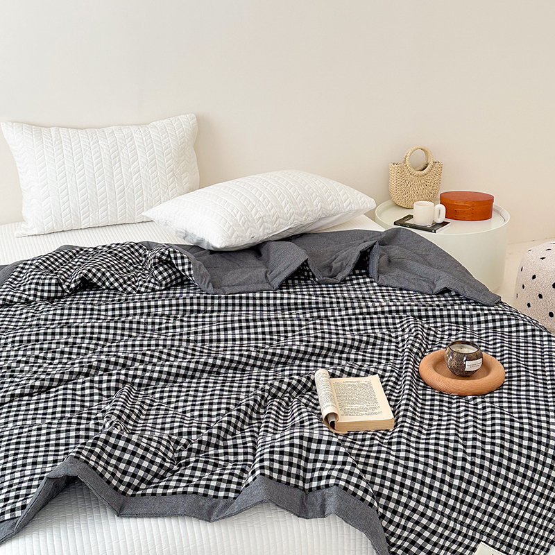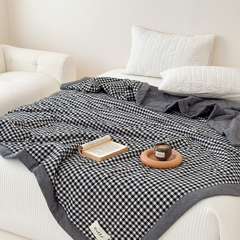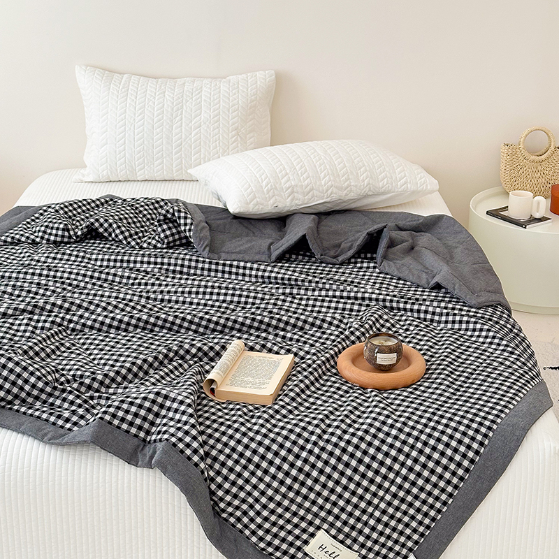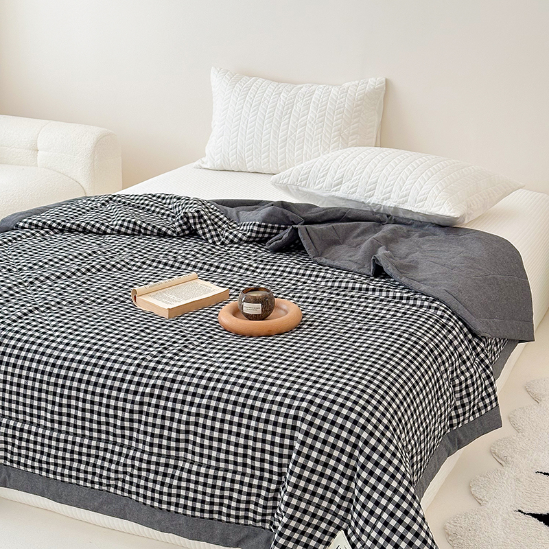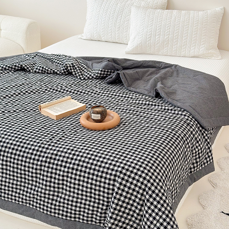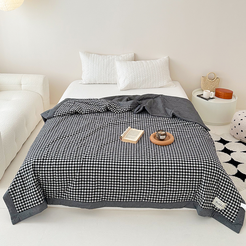 珺柔 2024新款 水洗棉全棉色织提花夏凉被夏被空调被 黑格