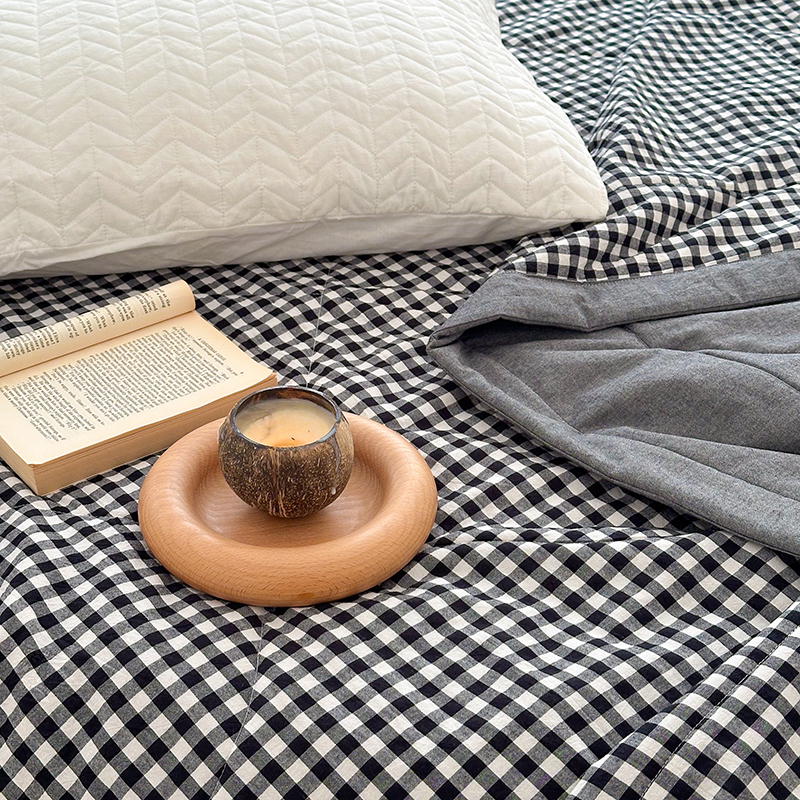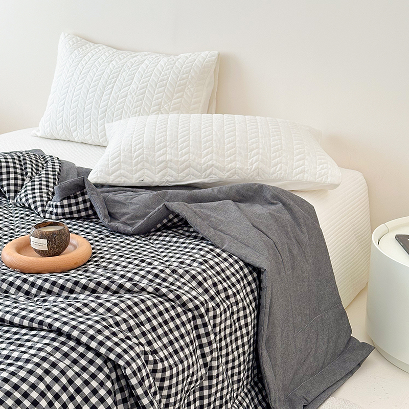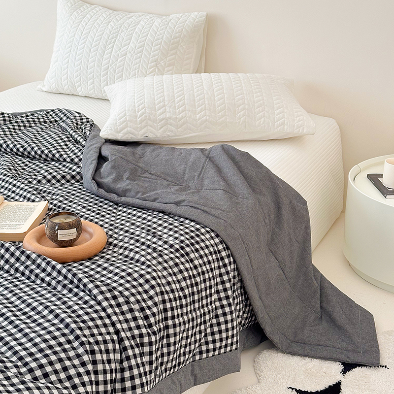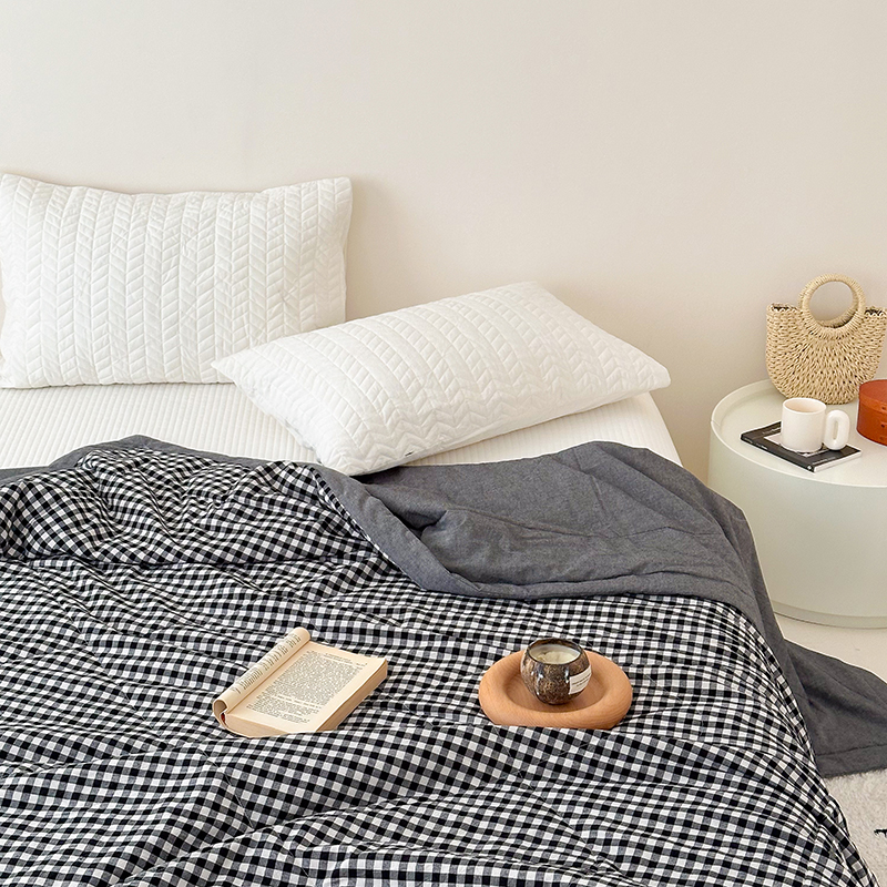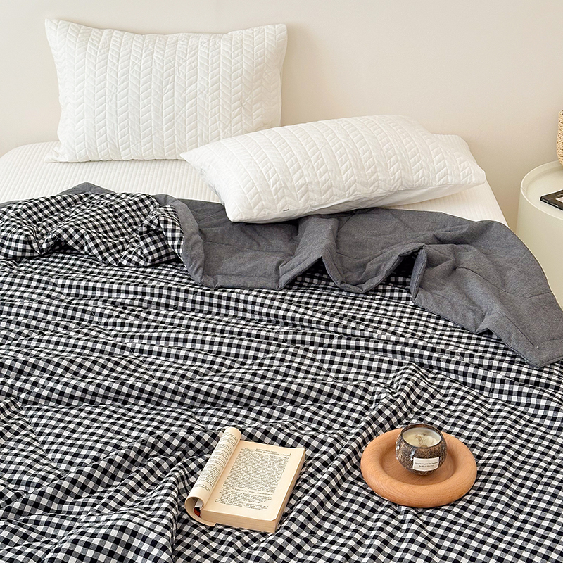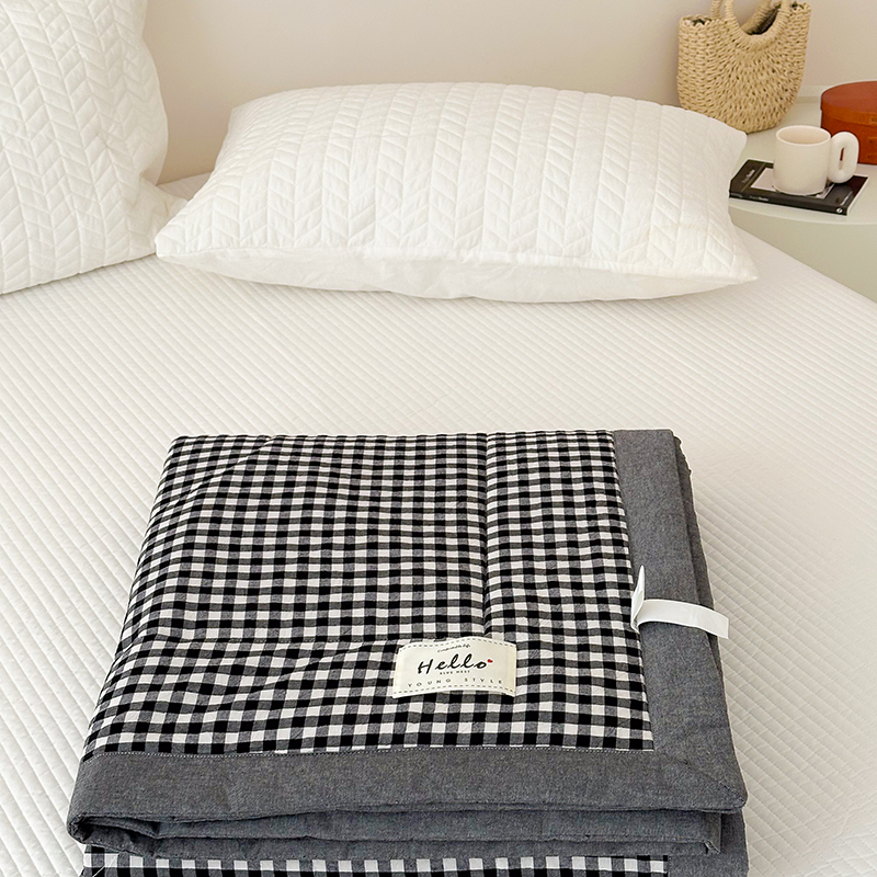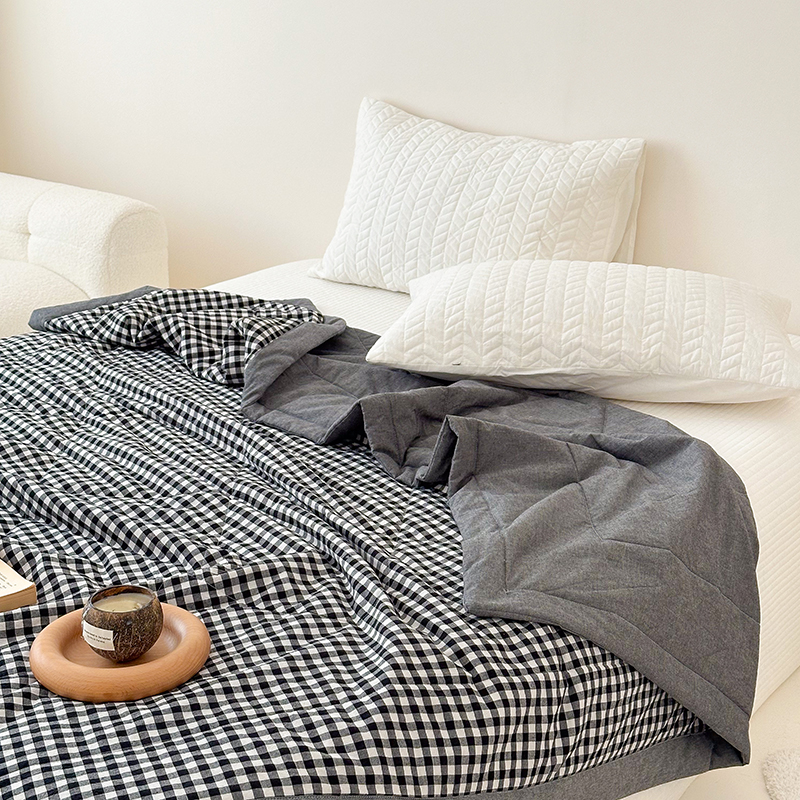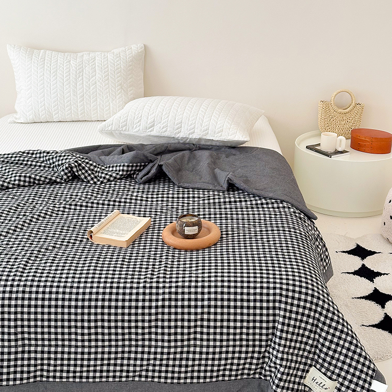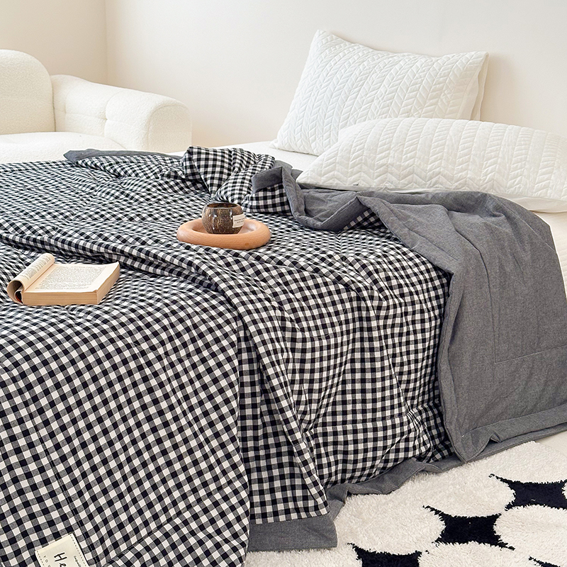 珺柔 2024新款 水洗棉全棉色织提花夏凉被夏被空调被 黑格