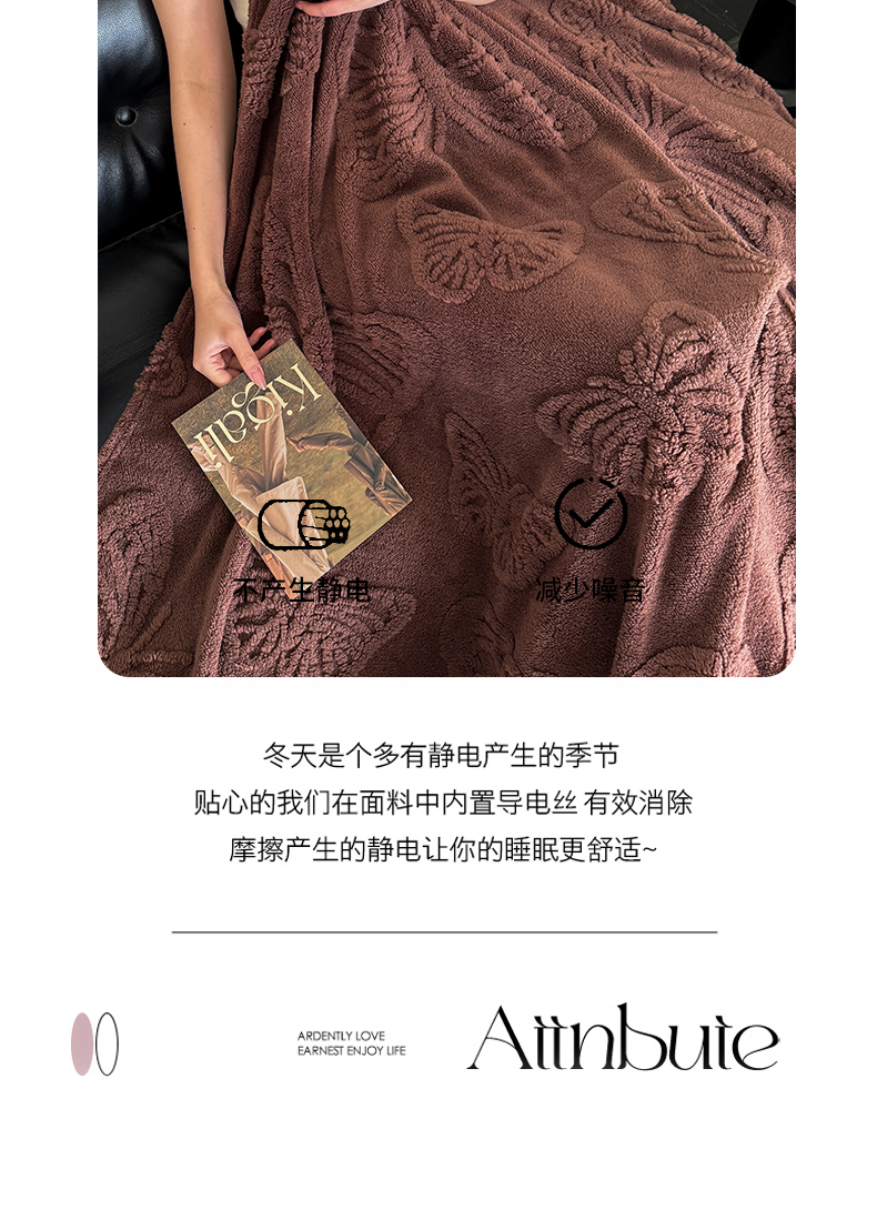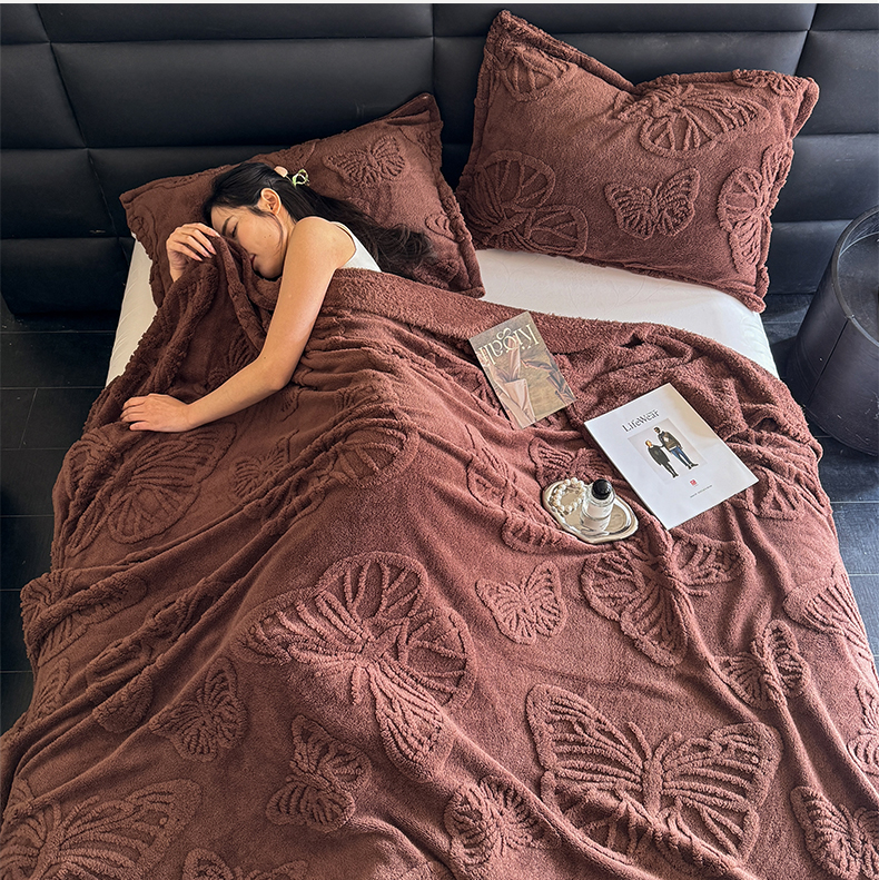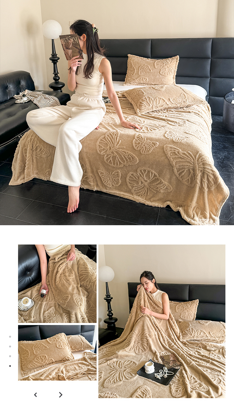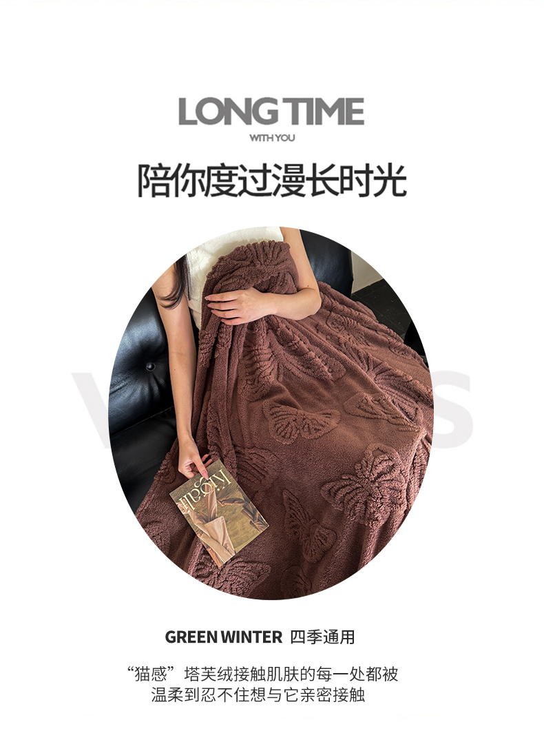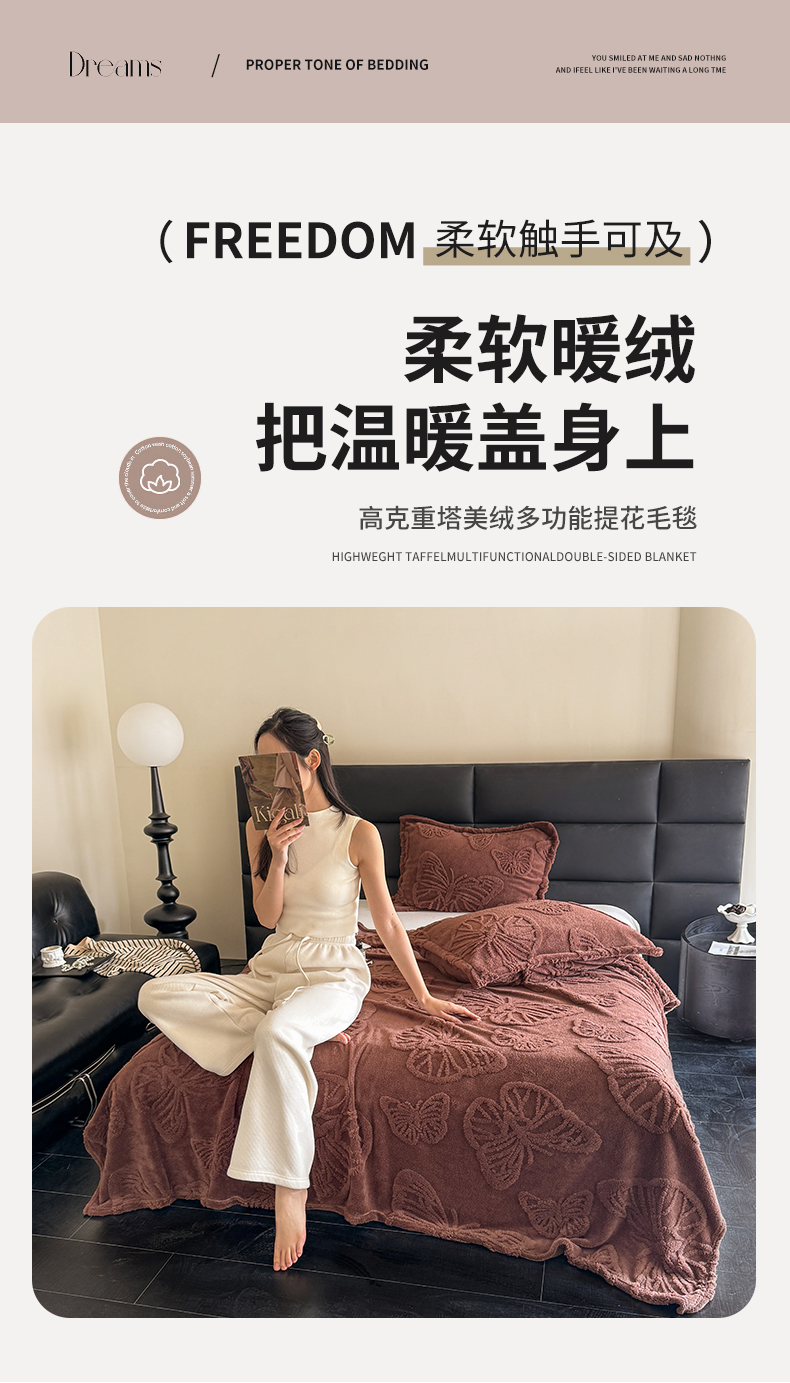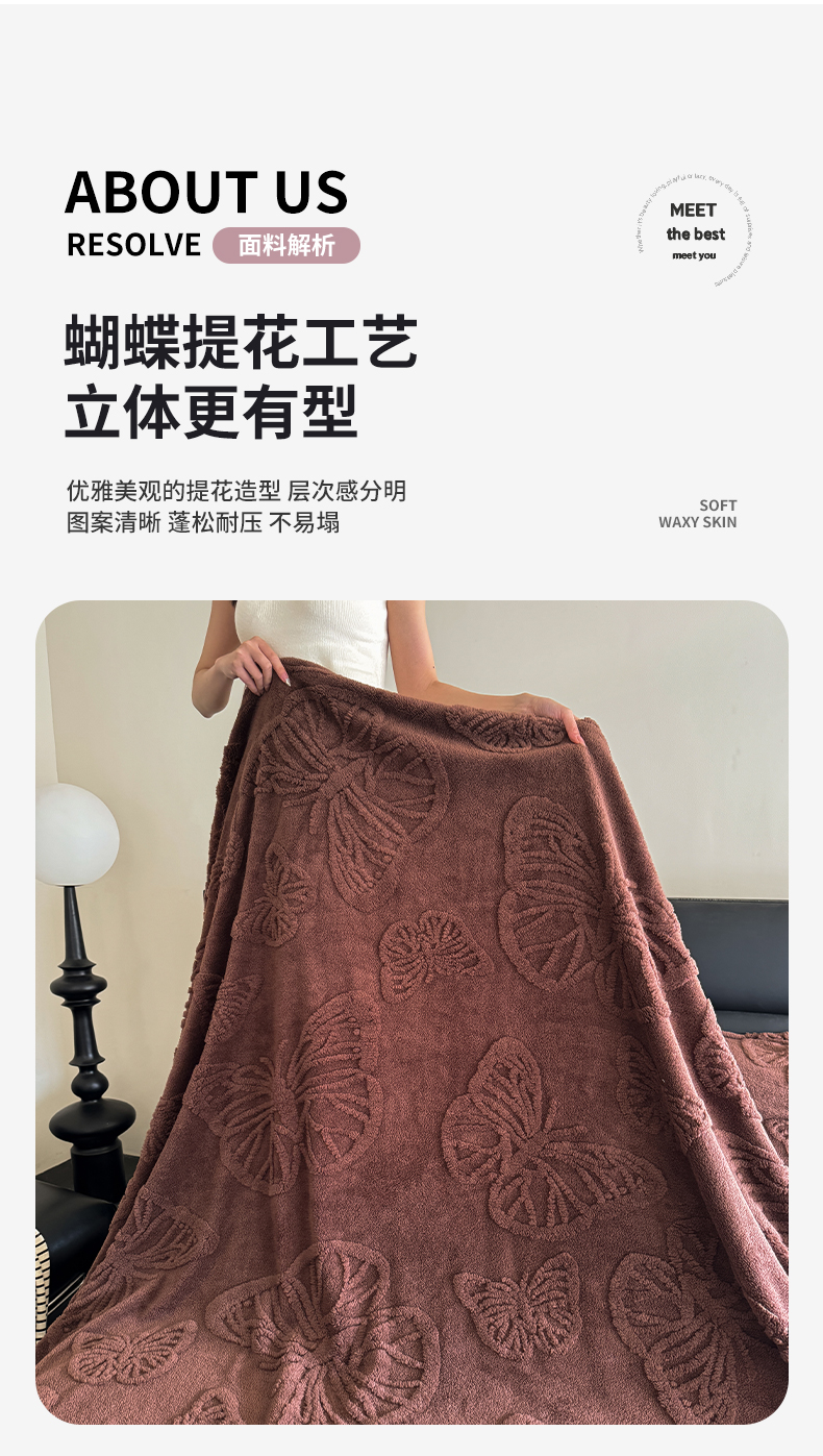商品名称:(总)2025新款塔芙绒纯色提花多功能盖毯毛毯提花蝴蝶款
