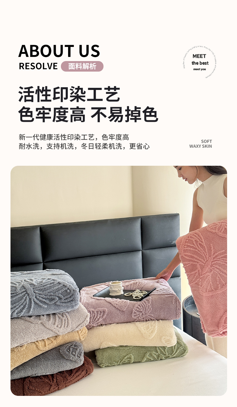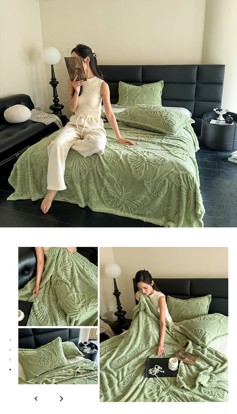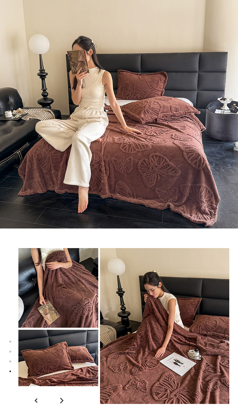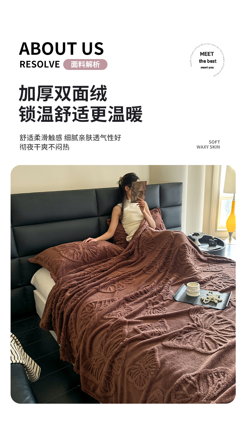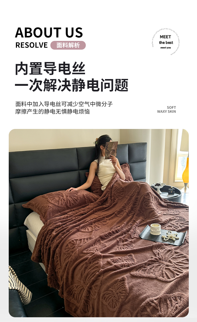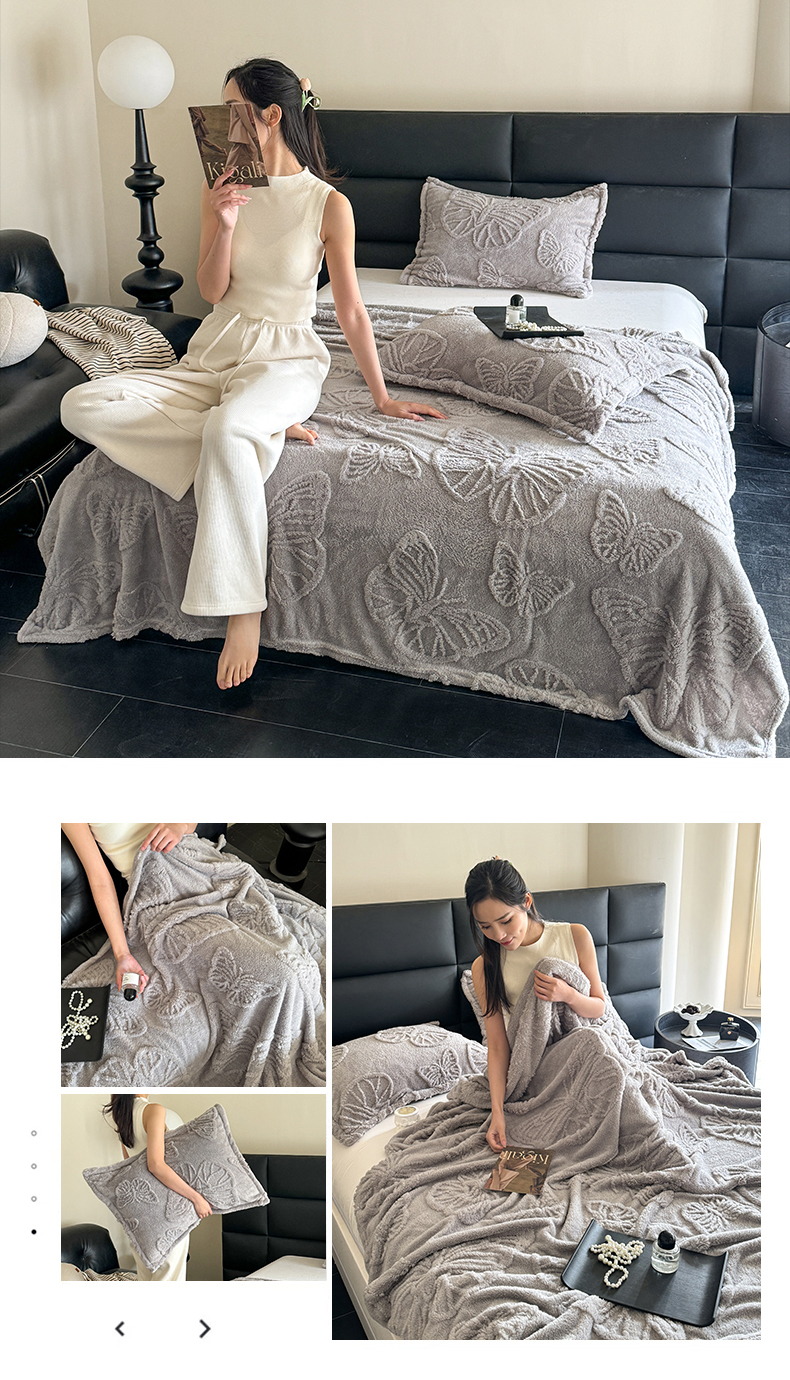 商品名称:(总)2025新款塔芙绒纯色提花多功能盖毯毛毯提花蝴蝶款