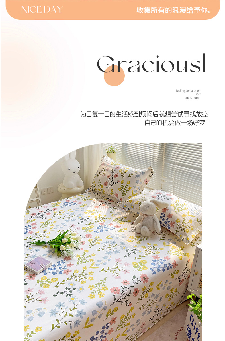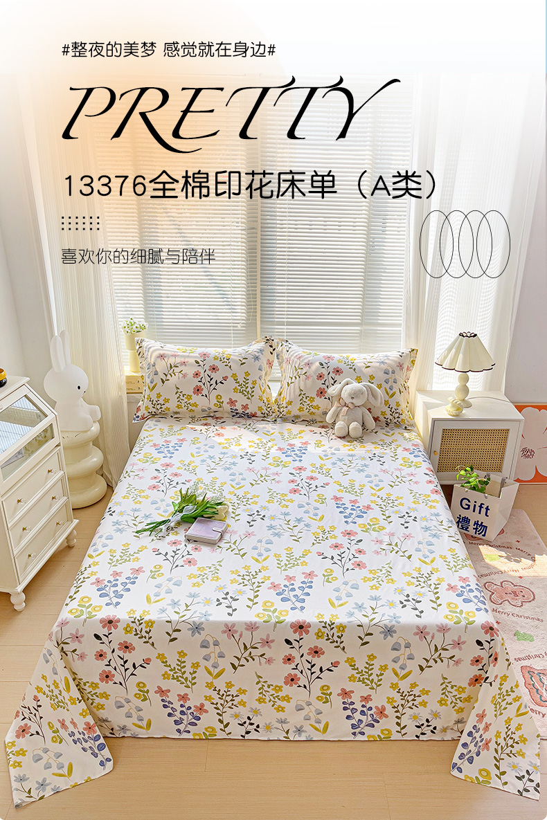 大柏树 2025新款全棉13376印花四件套系列(可定制)-单床单 云梦花都