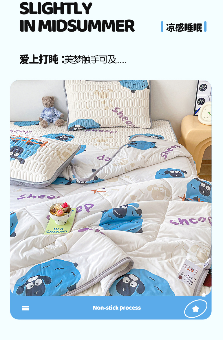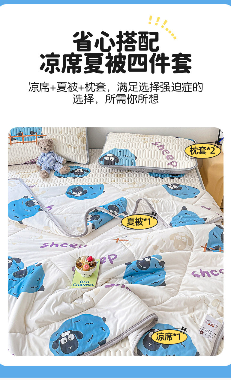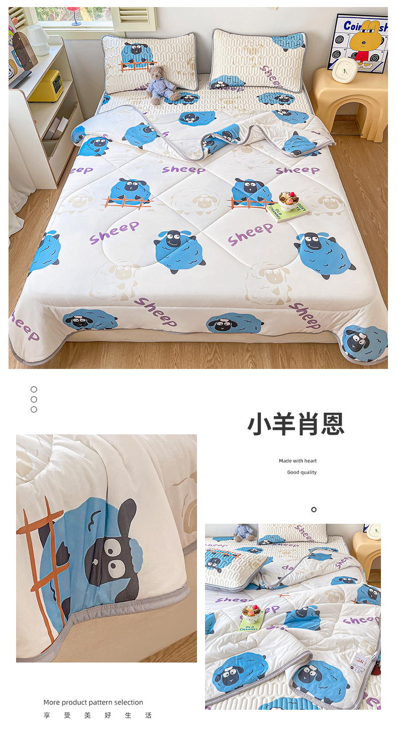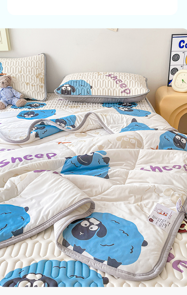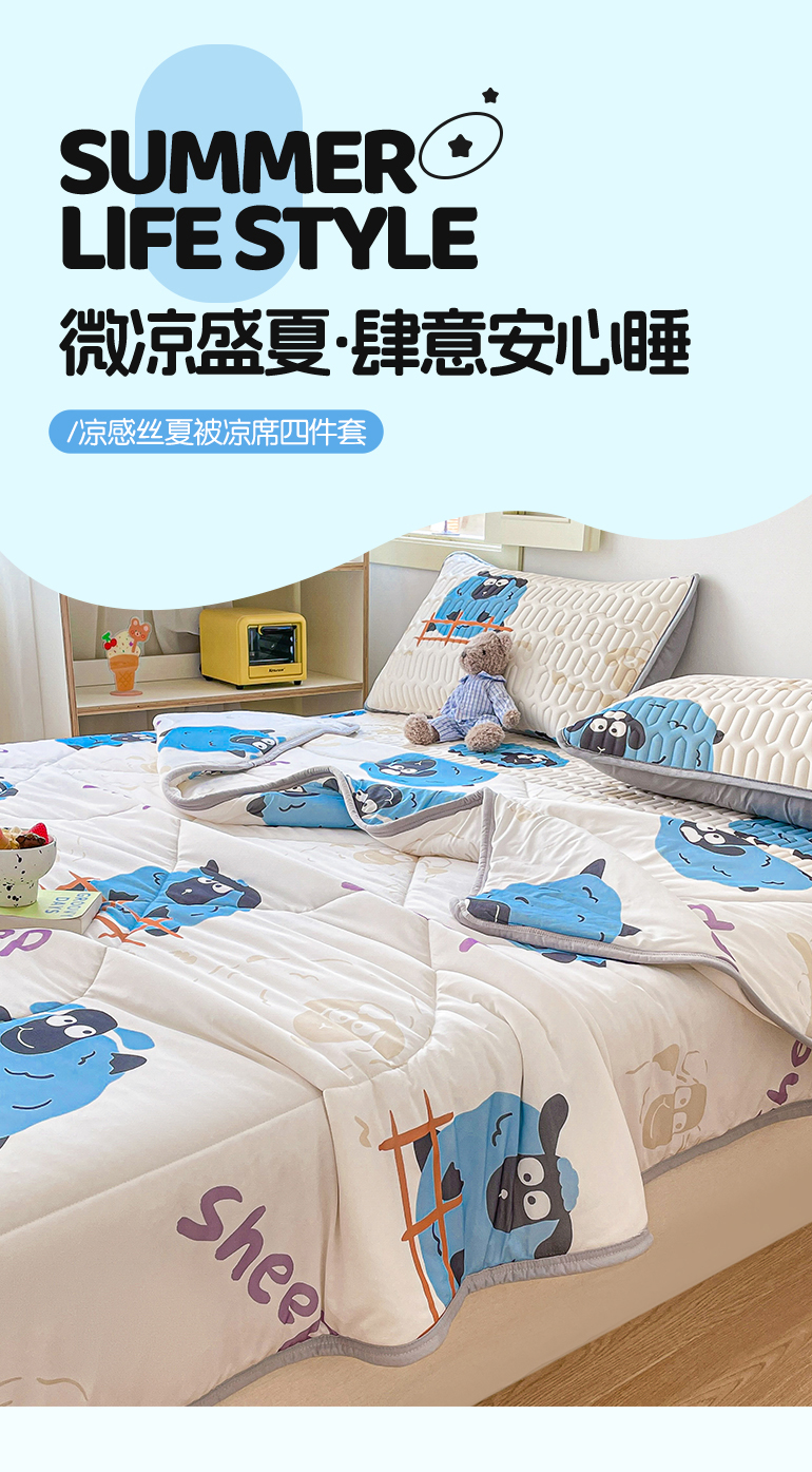 当前位置: 91家纺网 > 商品网购 > 床品套件 > 四件套 > 夏被四件套 > 布卢姆床垫 2025新款A类凉感丝数码印花夏被凉席四件套 小羊肖恩