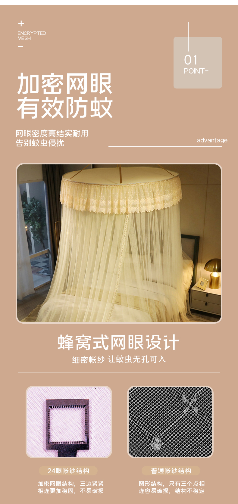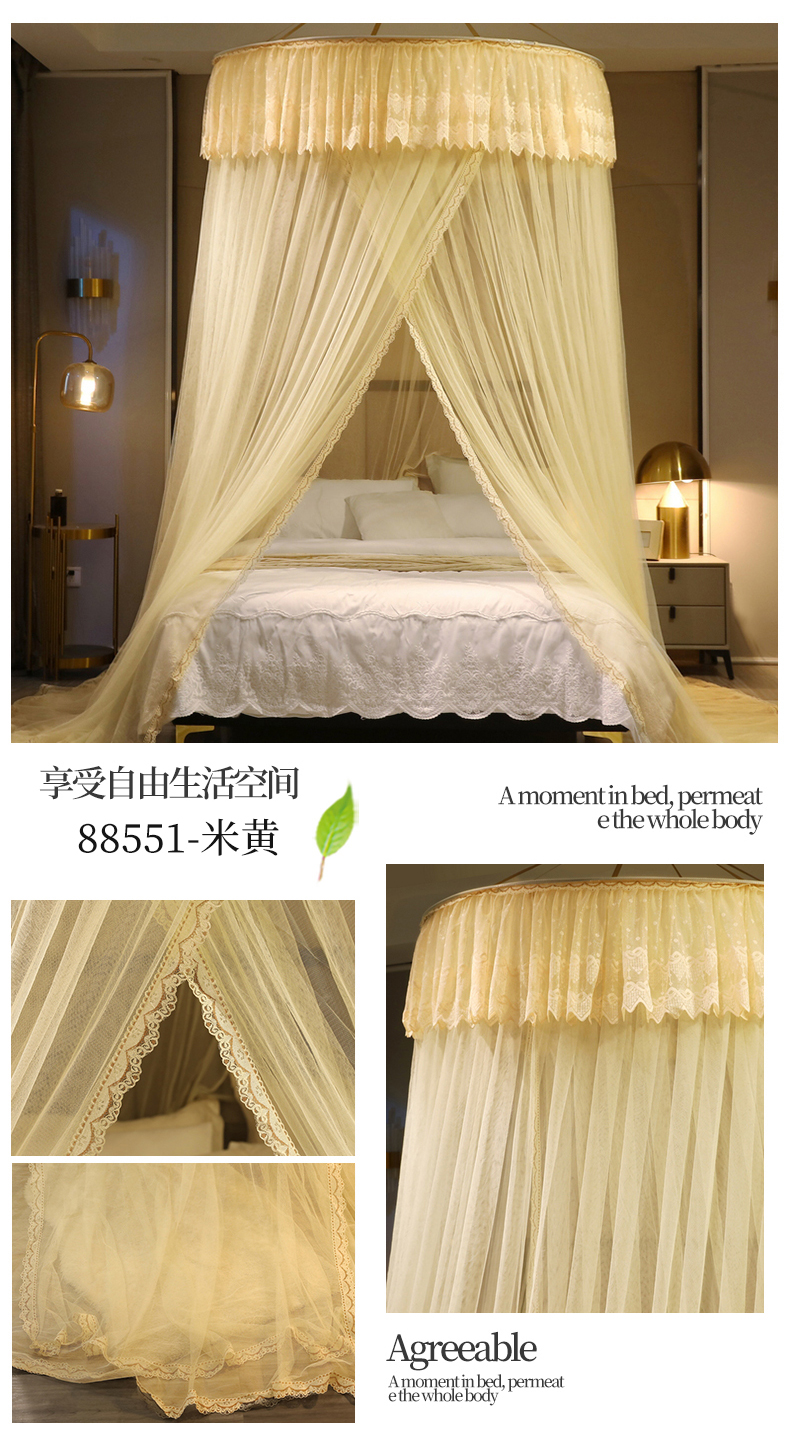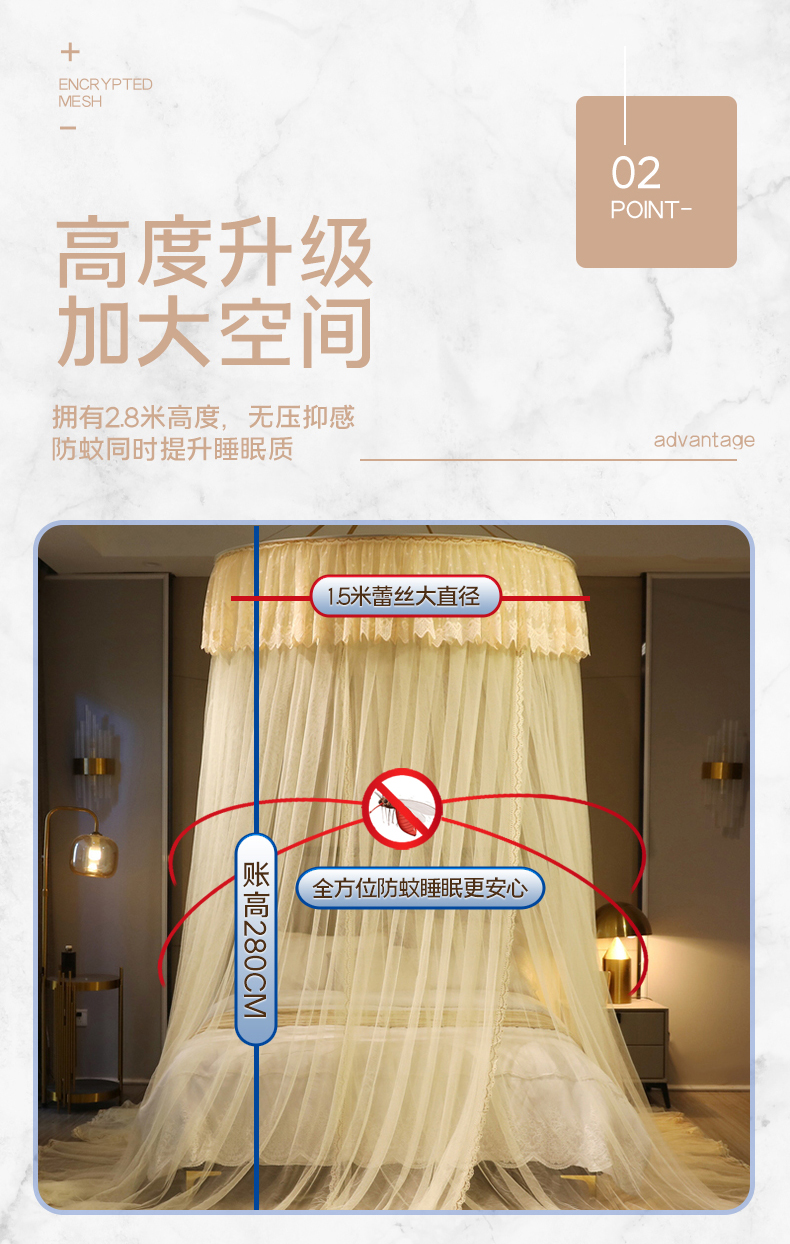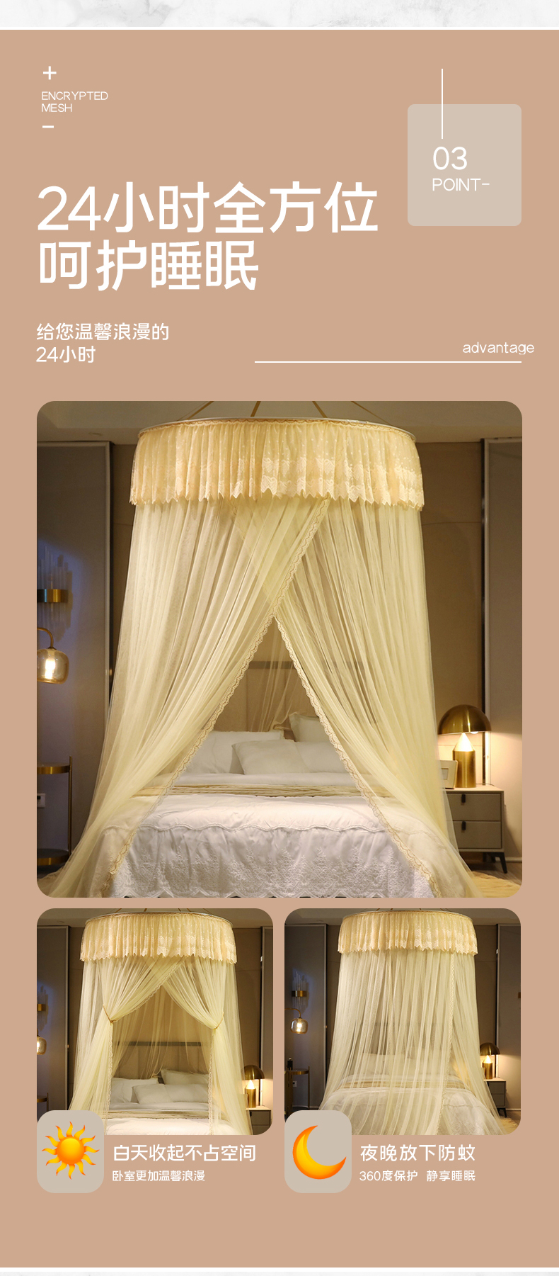 夏彩 2024新款加高加大加密1.5米直径蕾丝大圆顶88551 88551-米黄