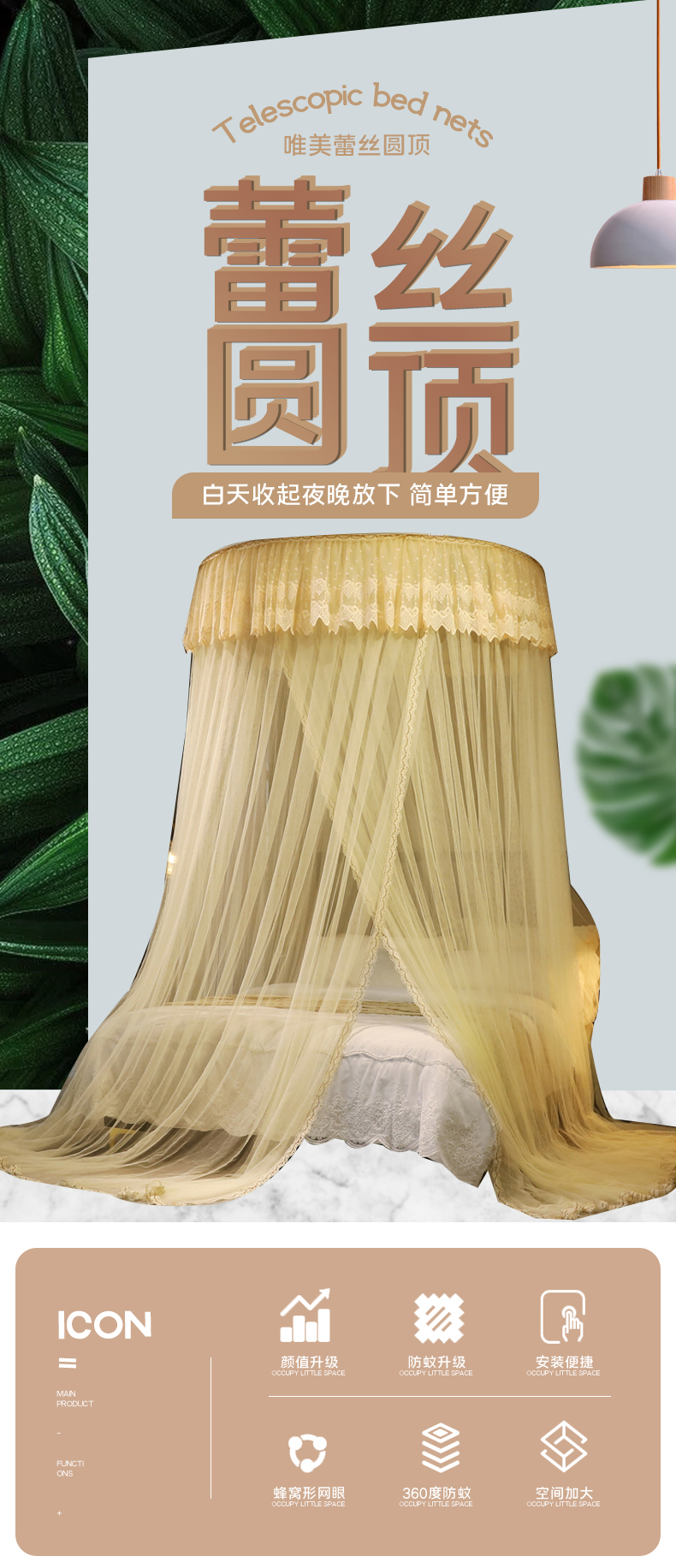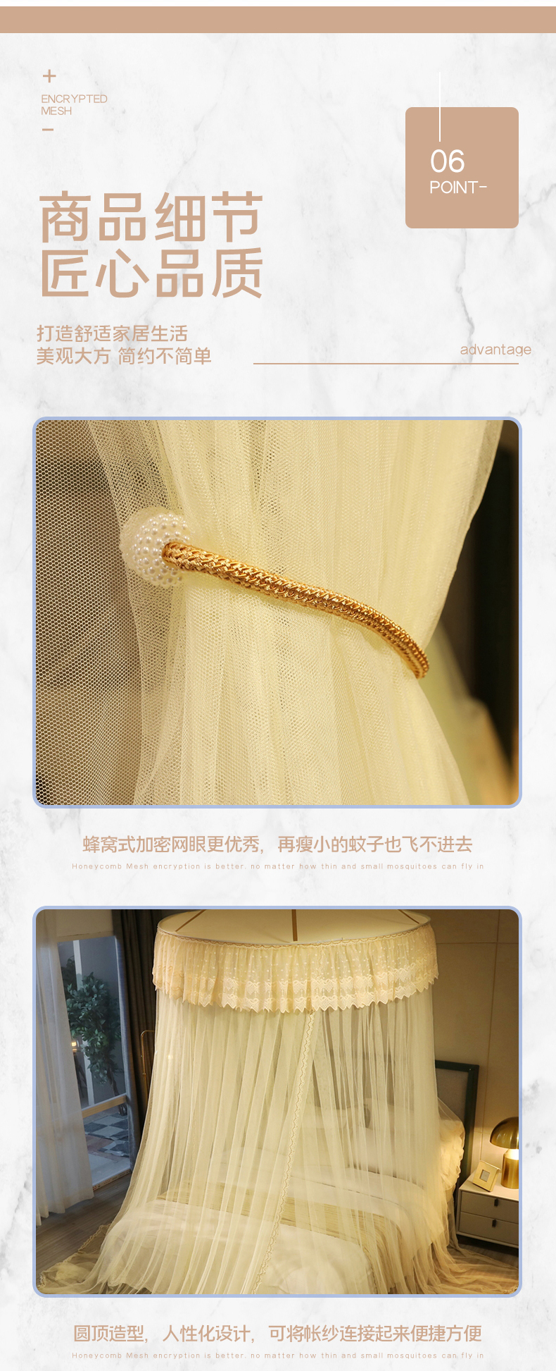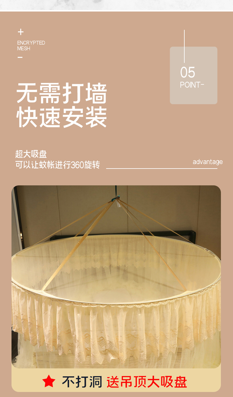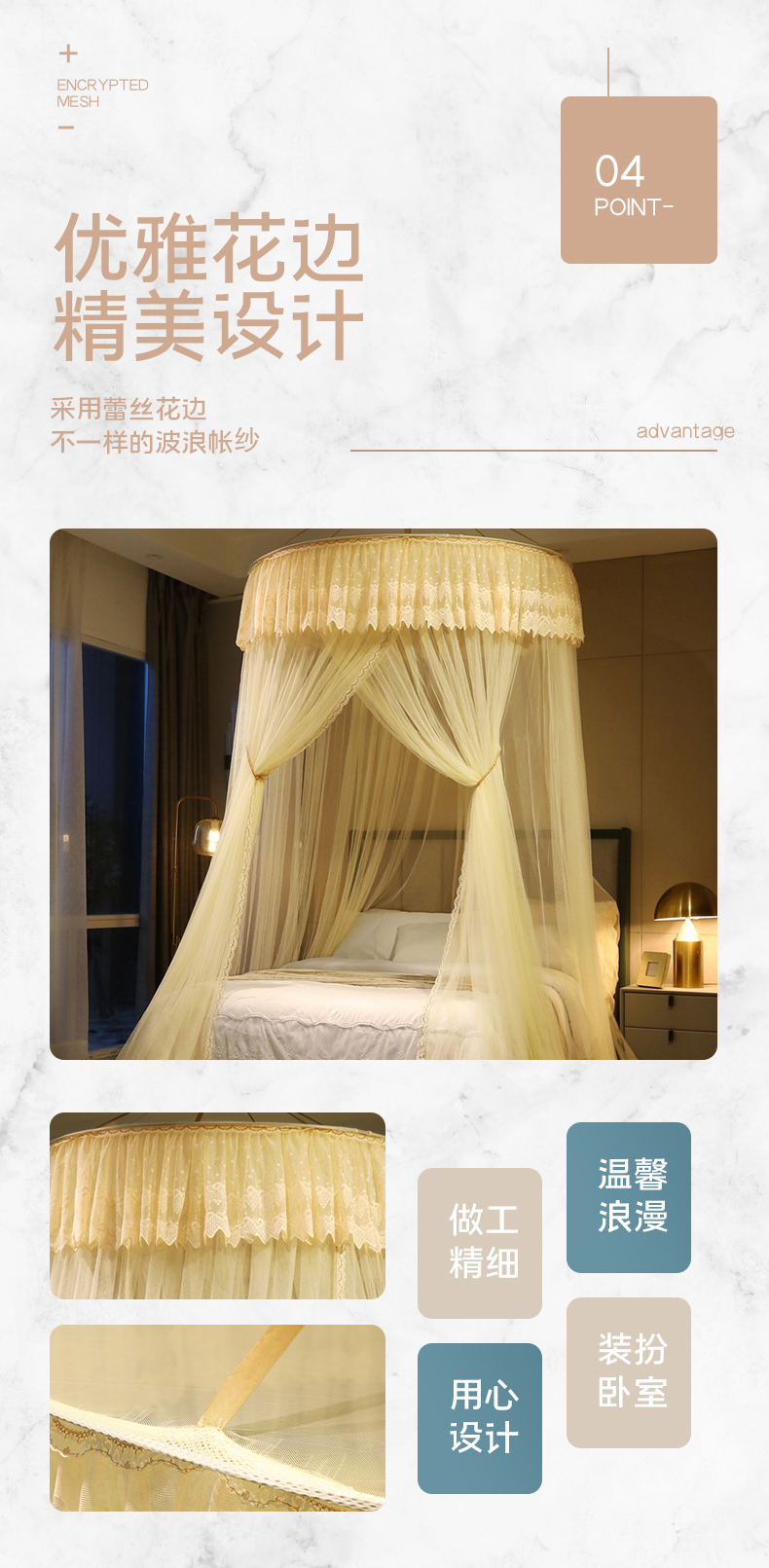 夏彩 2024新款加高加大加密1.5米直径蕾丝大圆顶88551 88551-米黄