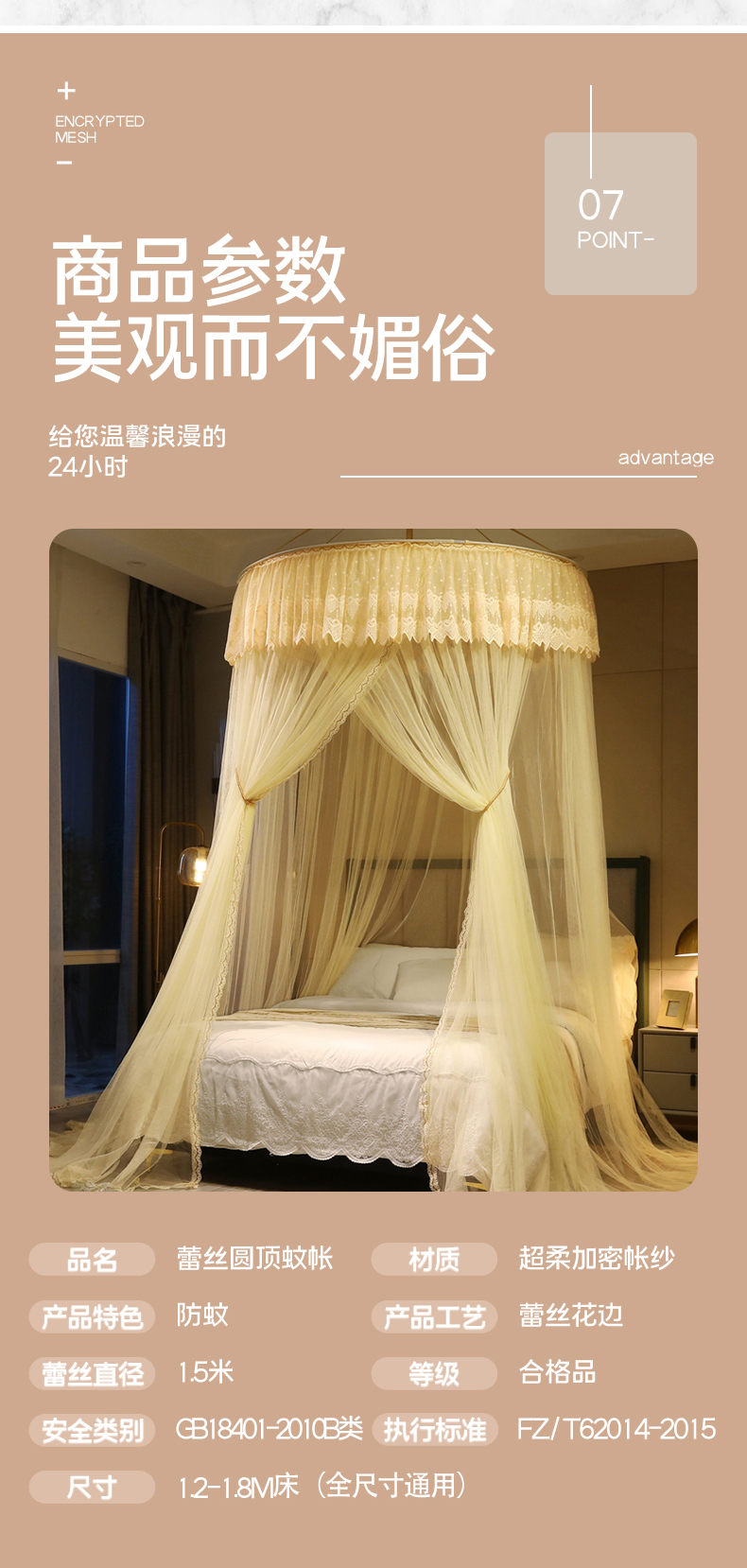 商品名称:夏彩 2024新款加高加大加密1.5米直径蕾丝大圆顶88551 88551-米黄