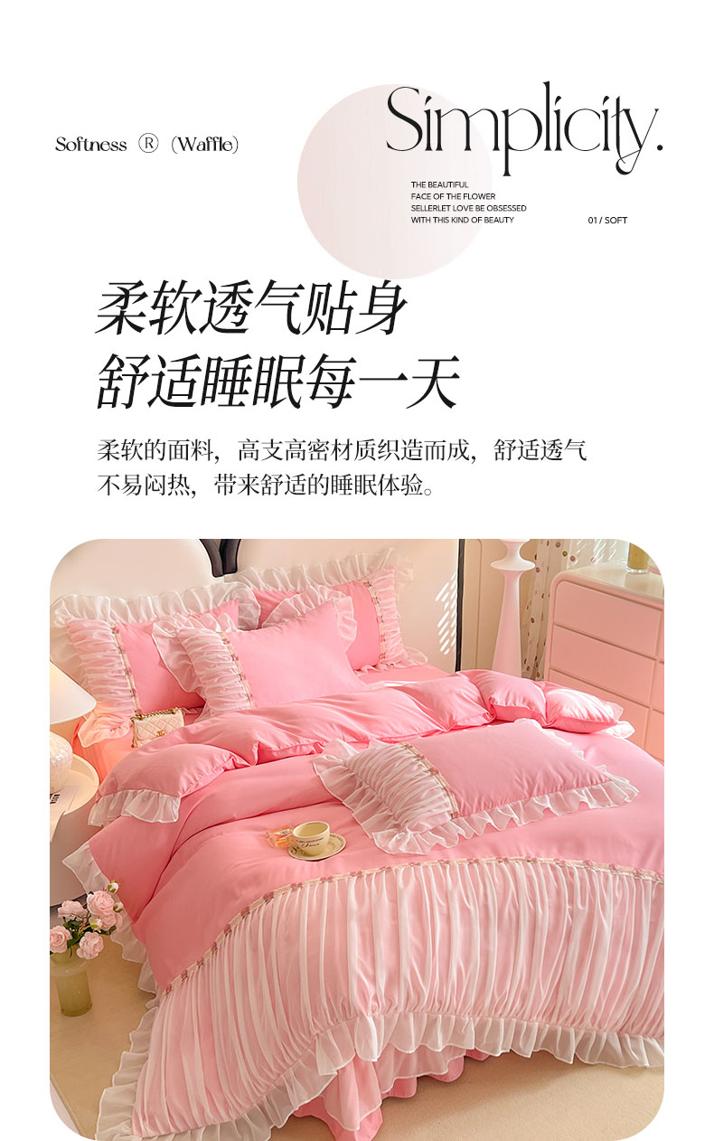 商品名称:芭比蔓家纺 2024新款雪纺磨毛四件套-春色系列 春色系列-公主粉
