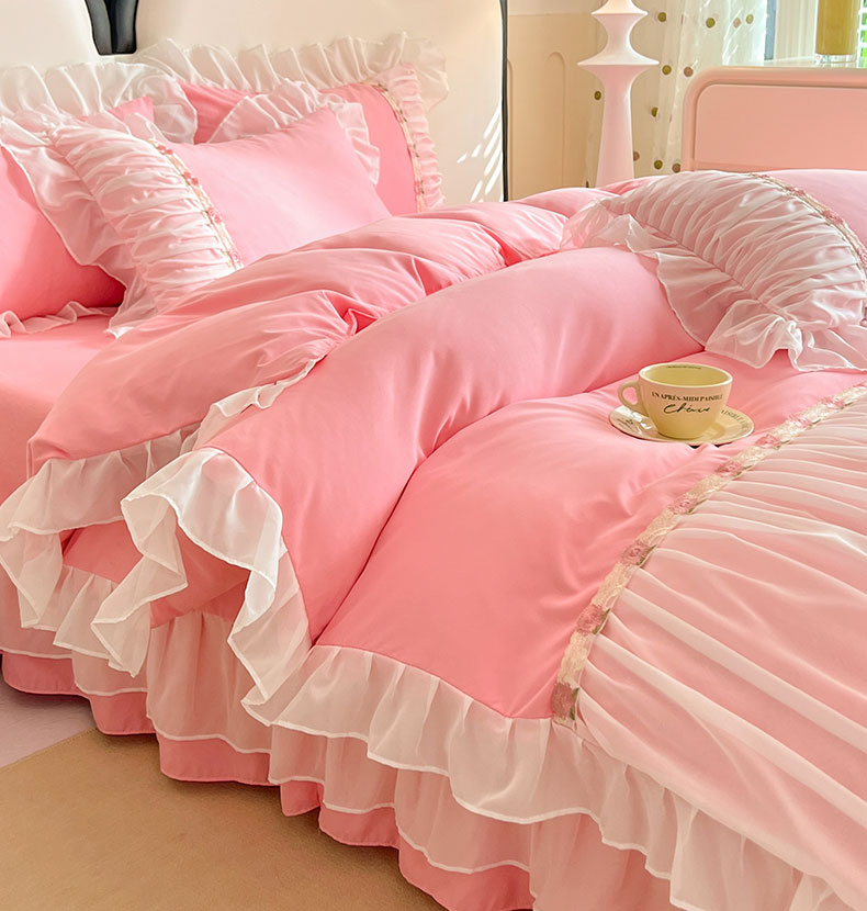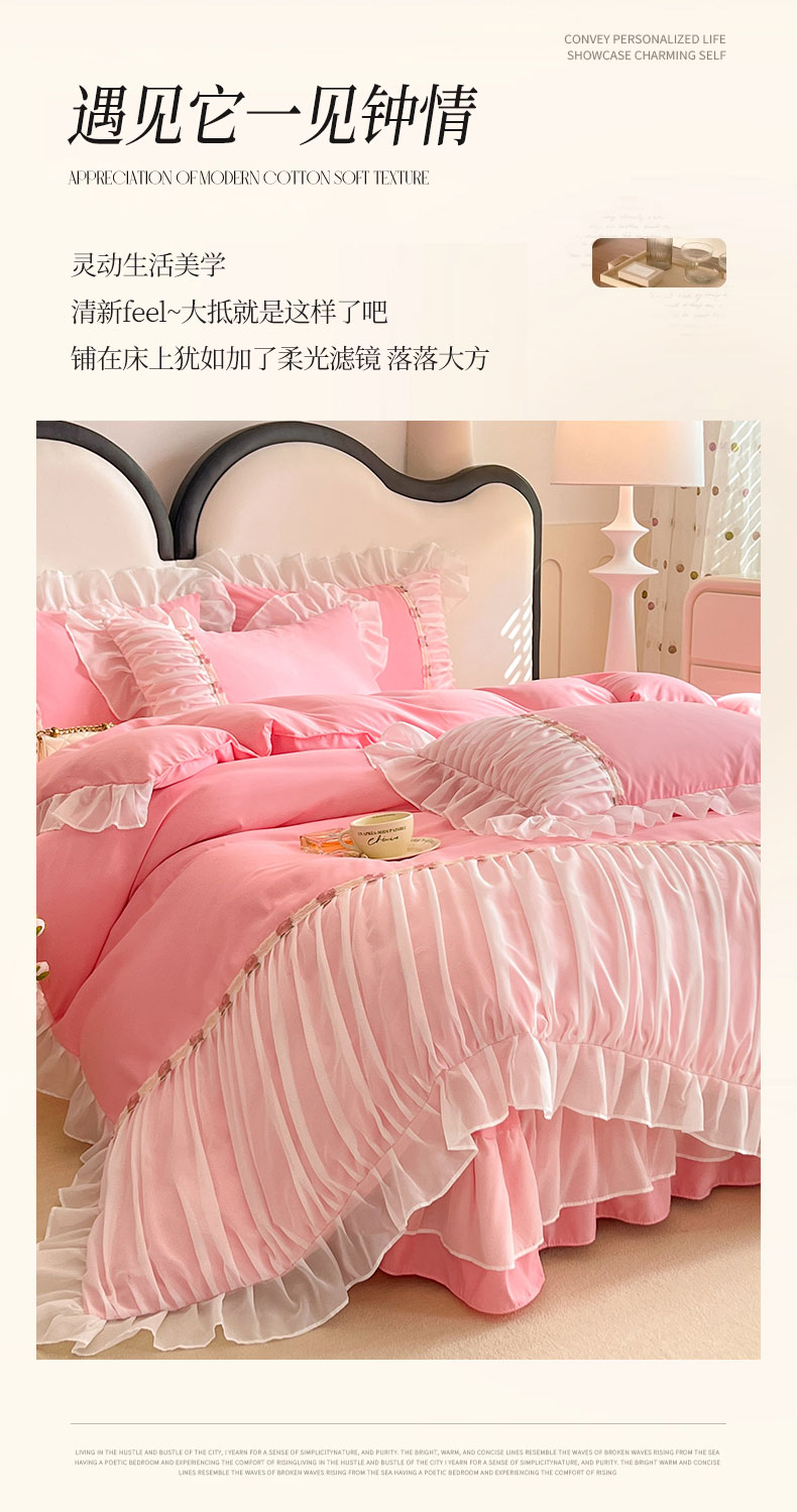 芭比蔓家纺 2024新款雪纺磨毛四件套-春色系列 春色系列-公主粉