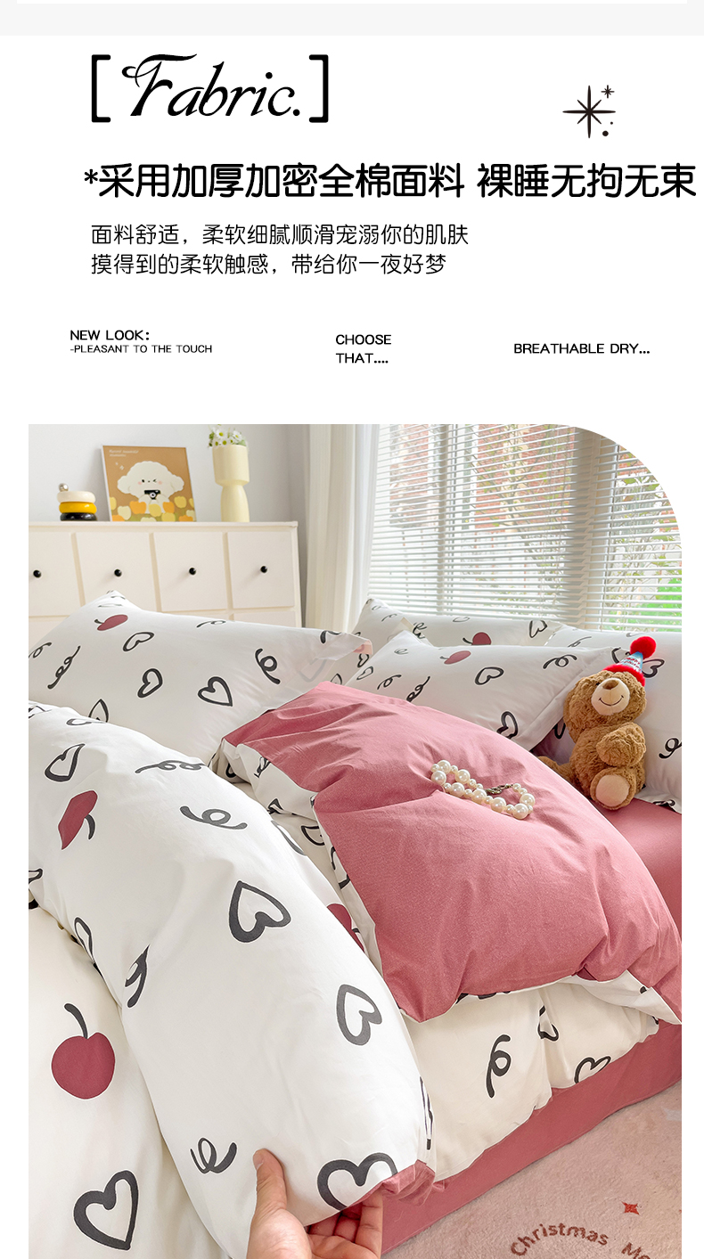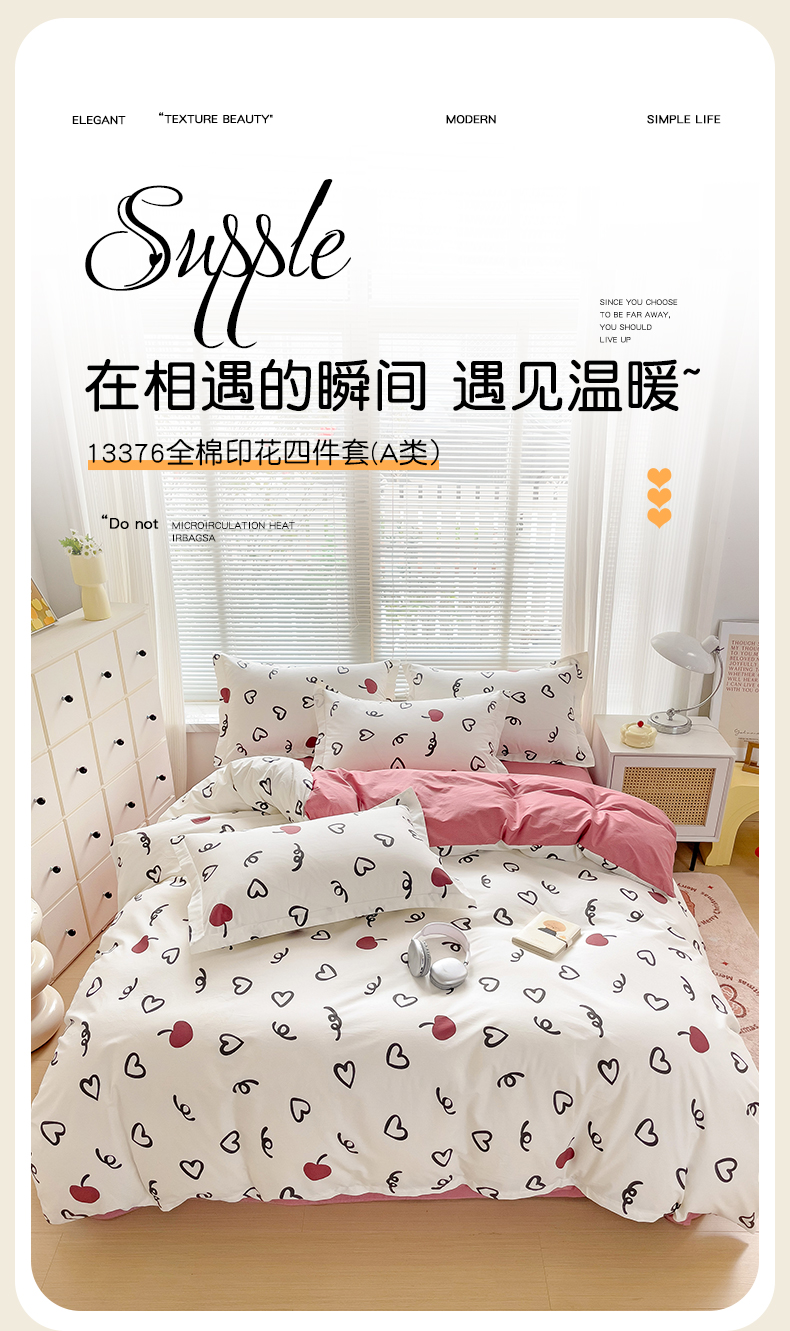 当前位置: 91家纺网 > 商品网购 > 床品套件 > 四件套 > 全棉普通四件套 > 大柏树 2025新款全棉13376印花四件套系列(可定制)-床单四件套 比心-红