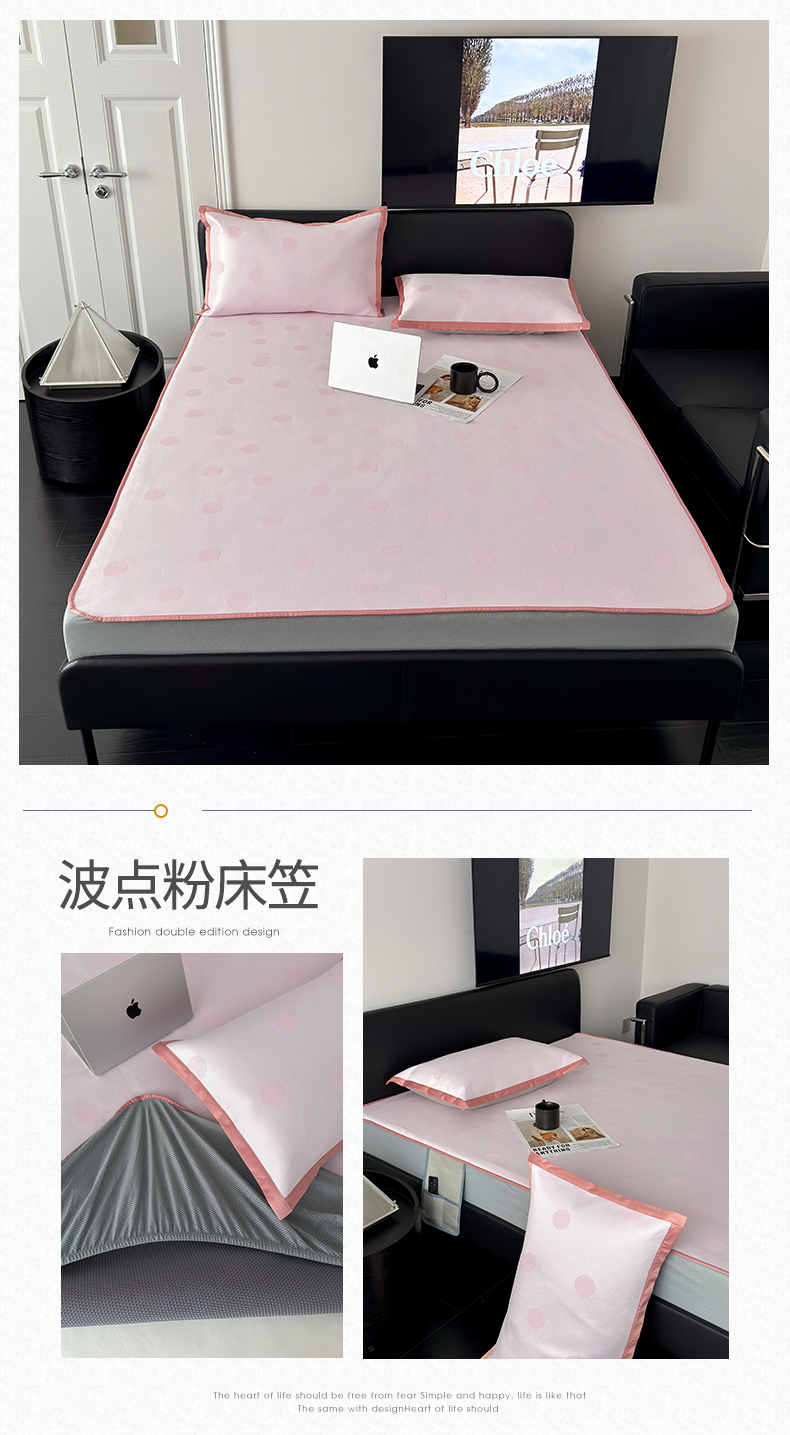 商品名称:三味舒屋 2025新款抗菌凉感提花席简约冰丝养生凉席-简生活系列(床笠款) 床笠 波点粉床笠
