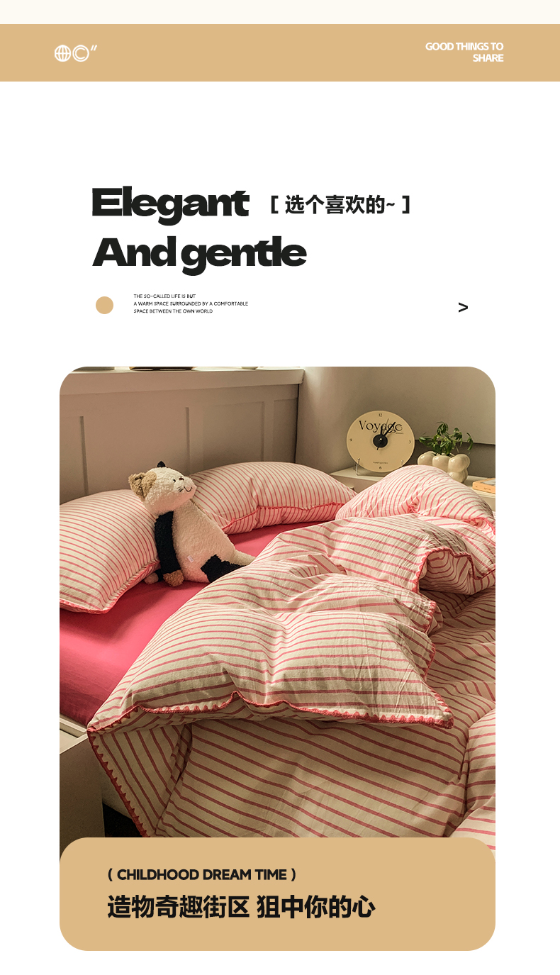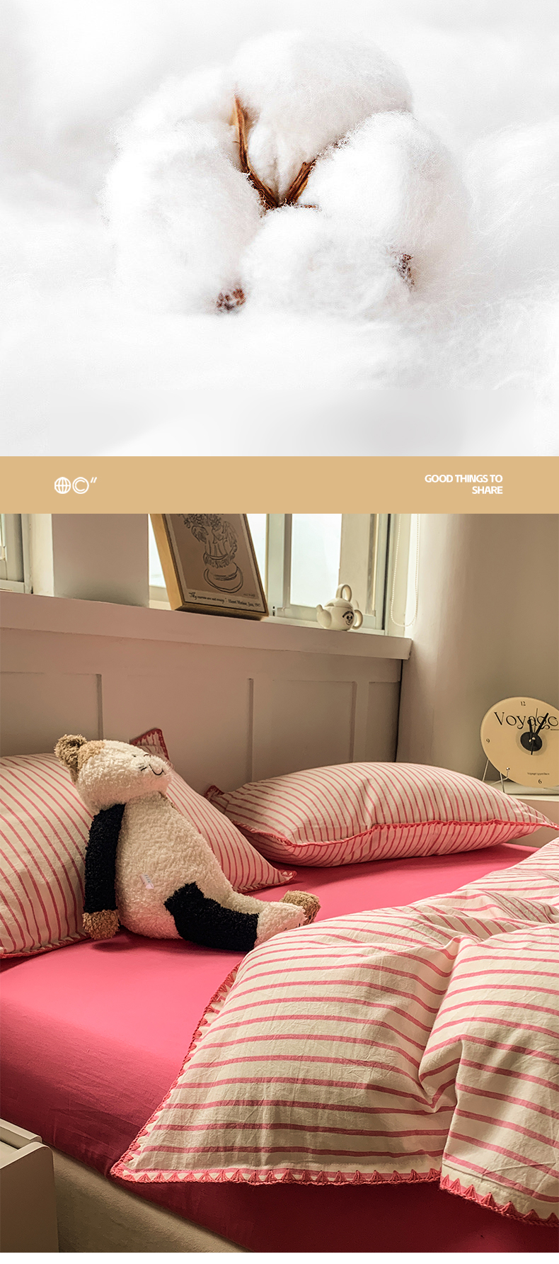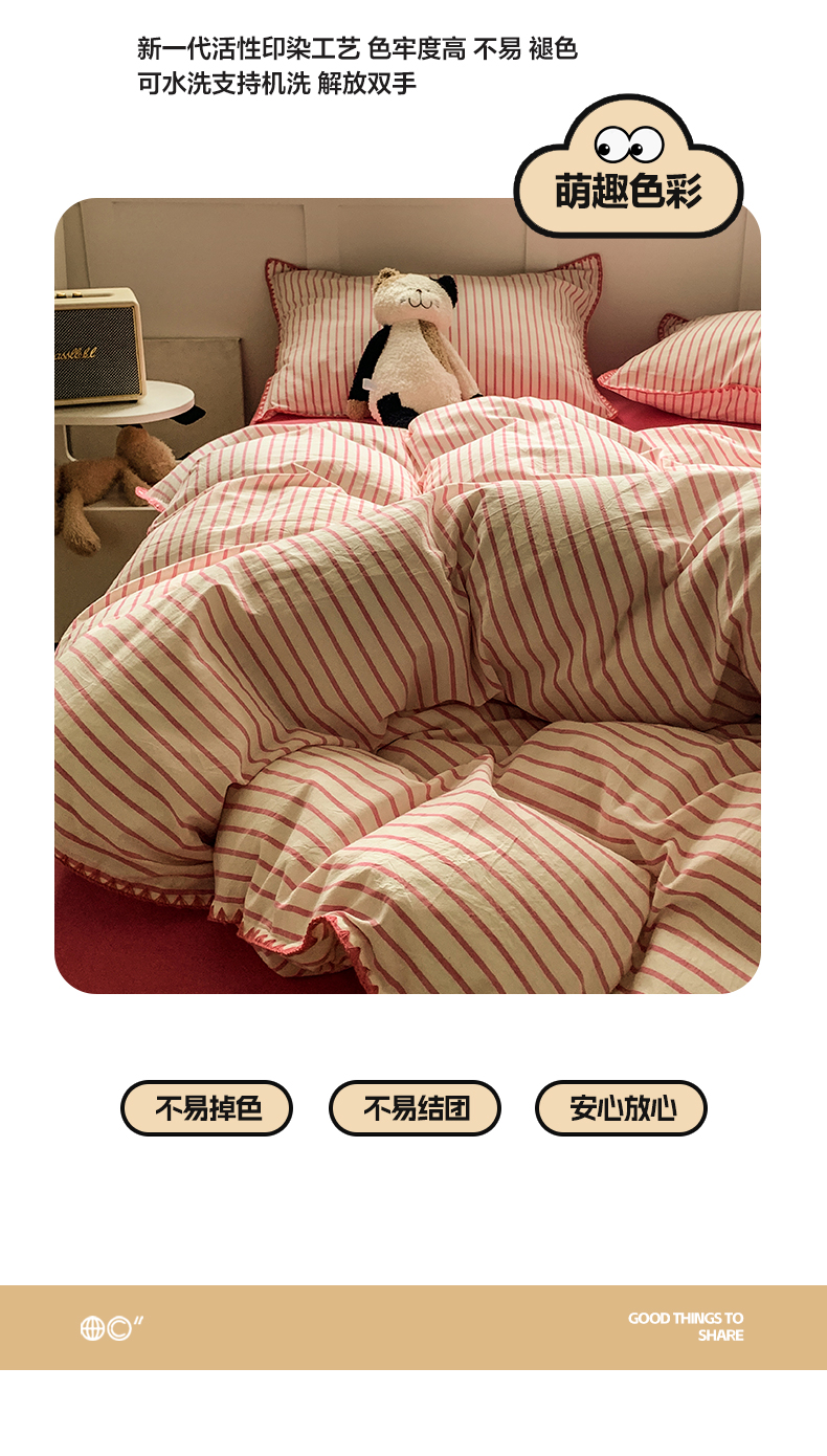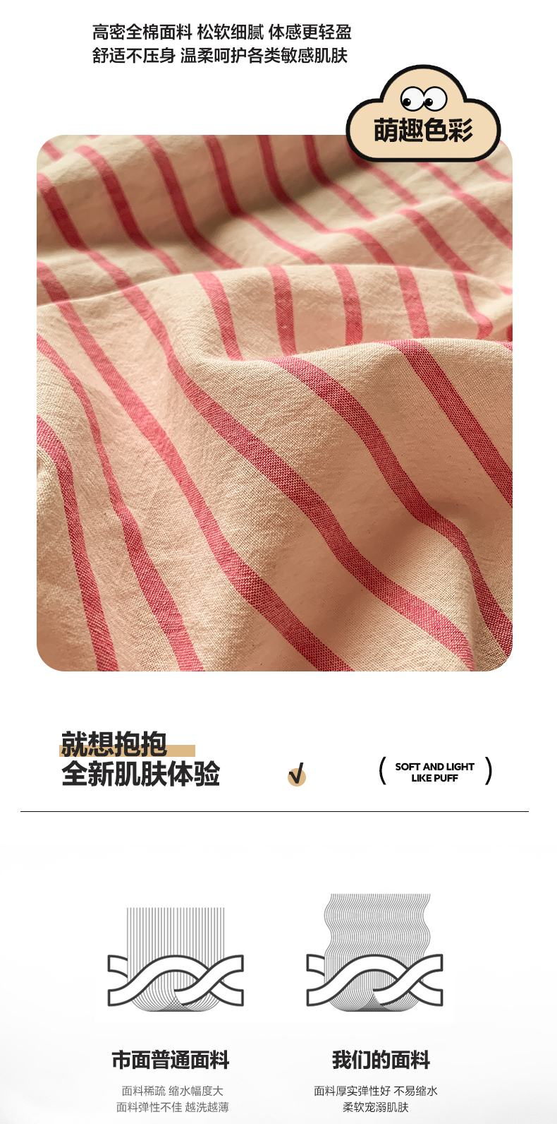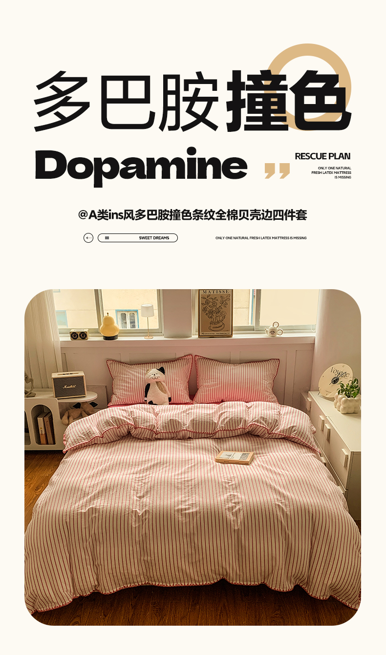 当前位置: 91家纺网 > 商品网购 > 床品套件 > 四件套 > 全棉普通四件套 > 莱茵家居 2024新款A类多巴胺撞色全棉水洗棉四件套 蜜桃粉细条