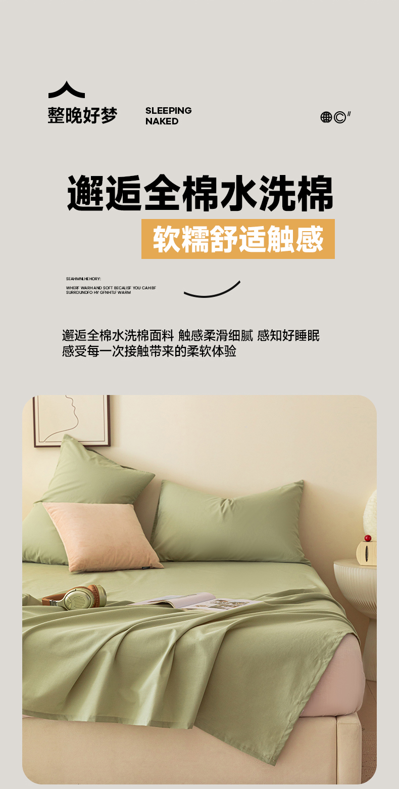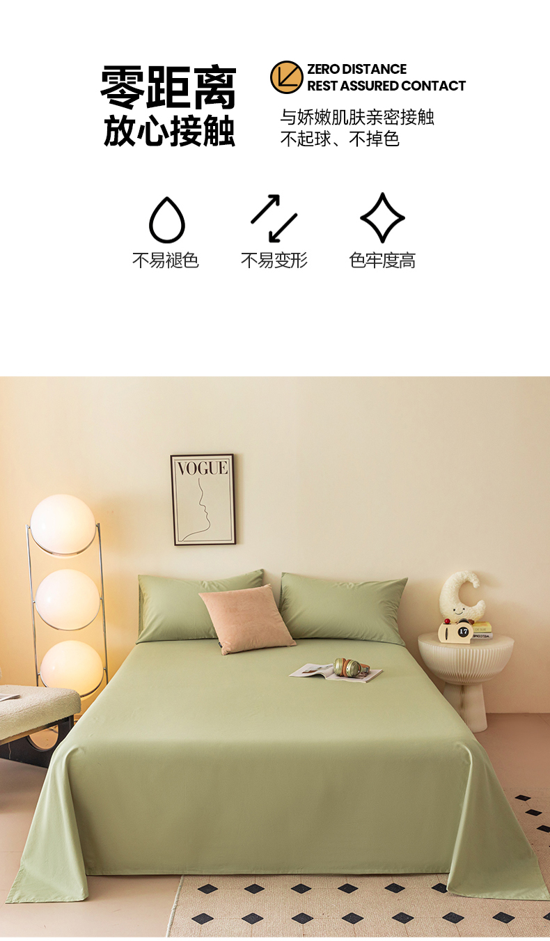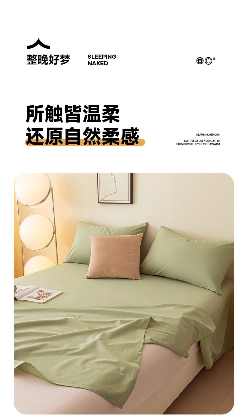 寐眠 2024新款全棉水洗棉床单床笠单品-单床单 抹茶绿