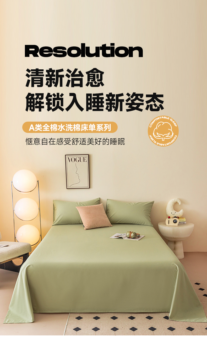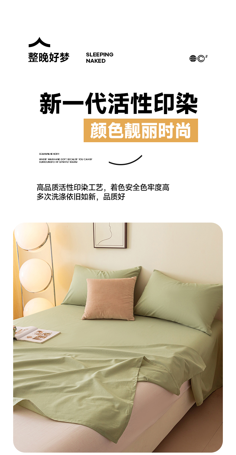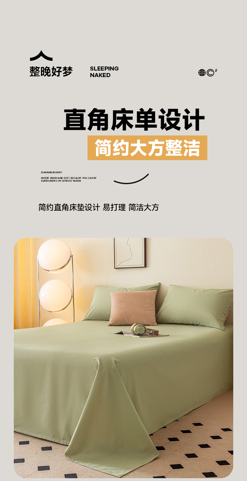 商品名称:寐眠 2024新款全棉水洗棉床单床笠单品-单床单 抹茶绿