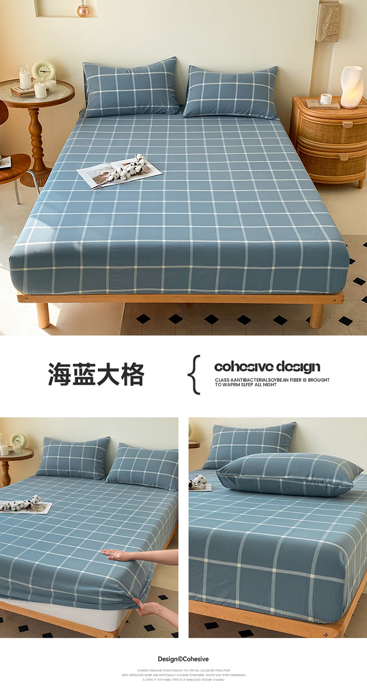 商品名称:寐眠 2024新款全棉水洗棉床单床笠单品-单床笠 海蓝大格