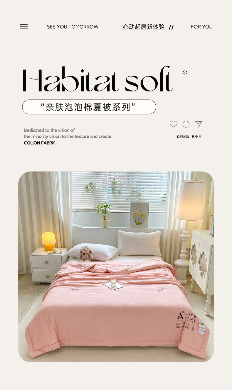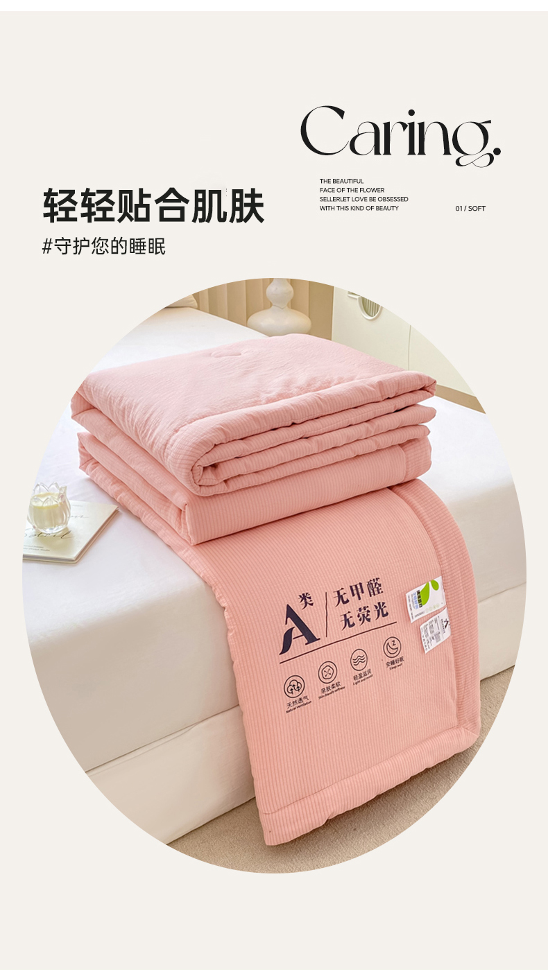 当前位置: 91家纺网 > 商品网购 > 床品套件 > 四件套 > 夏被四件套 > 恋之巢2024新款泡泡棉夏被四件套 单夏被 纯色夏被大豆蛋白抗菌纤维棉被 蜜桃粉
