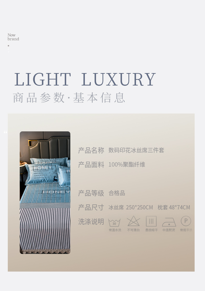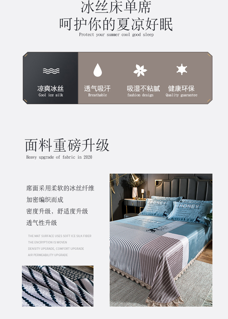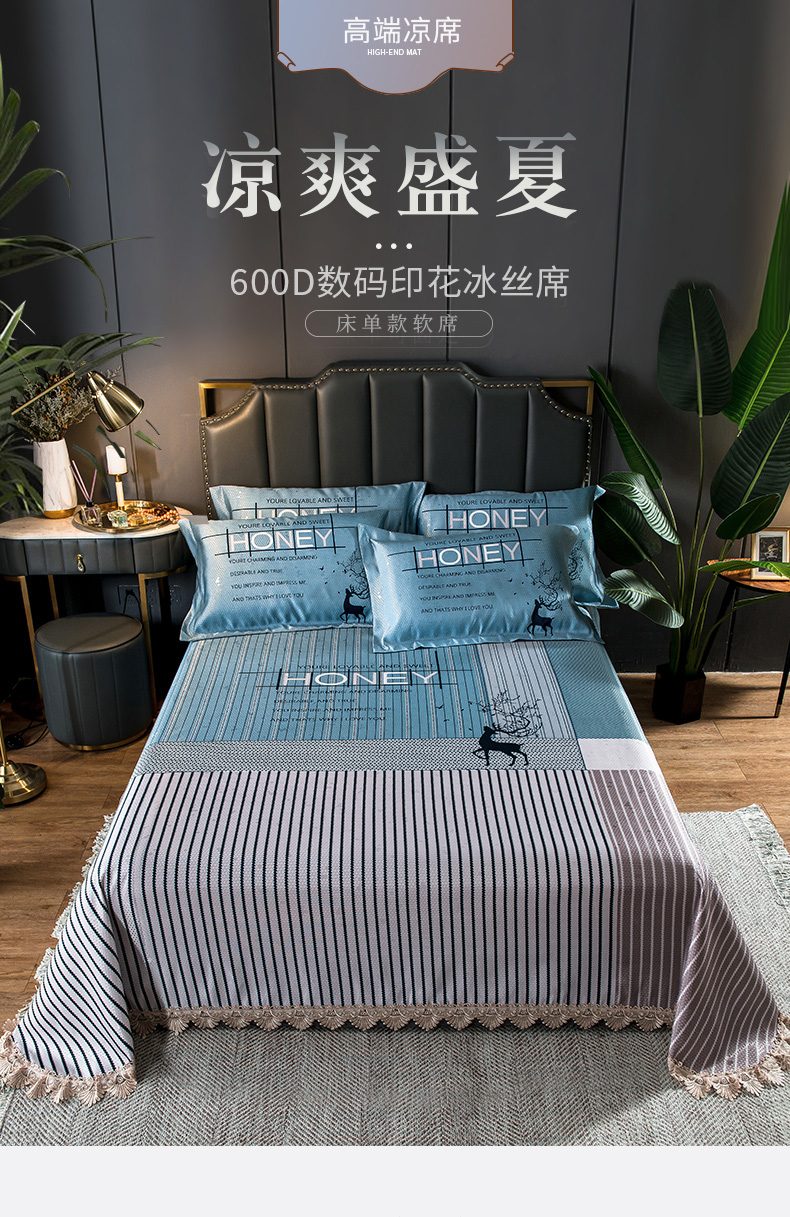 商品名称:其奥家纺 2025新款900d窝蜂冰丝凉席三件套 浪漫仲夏