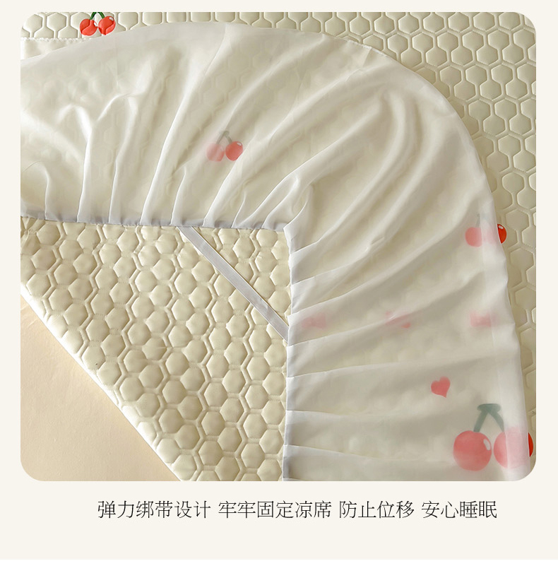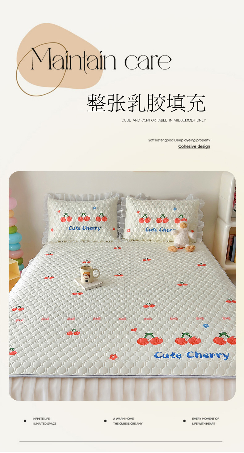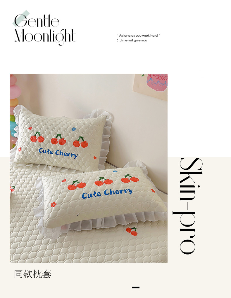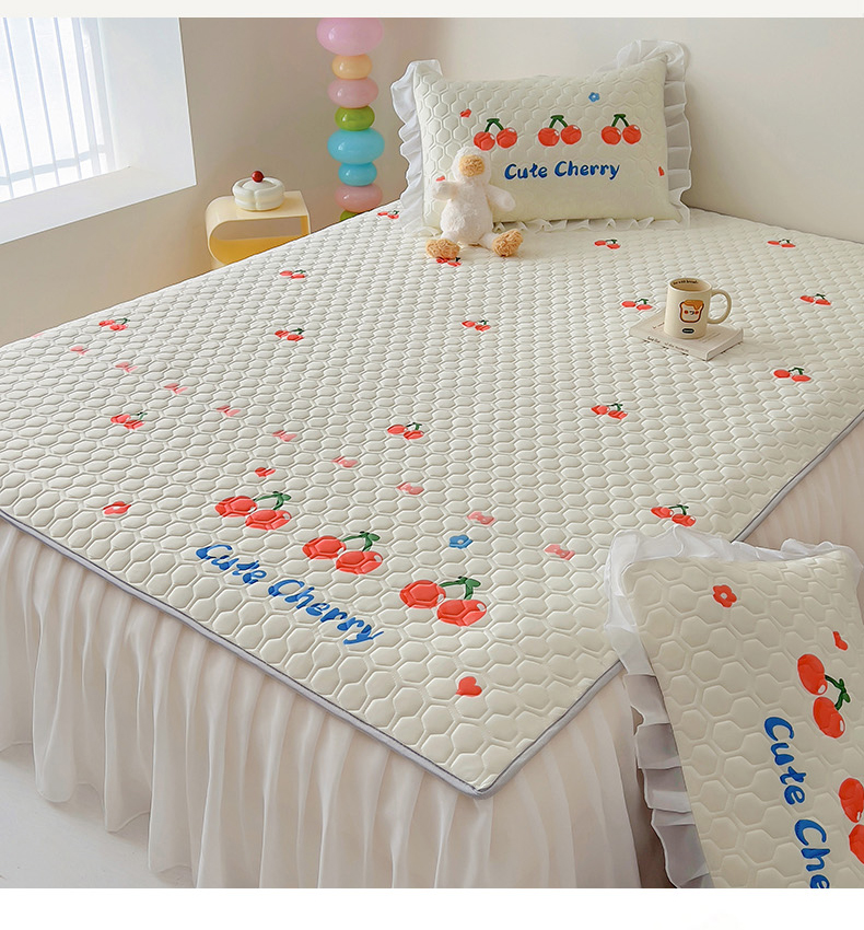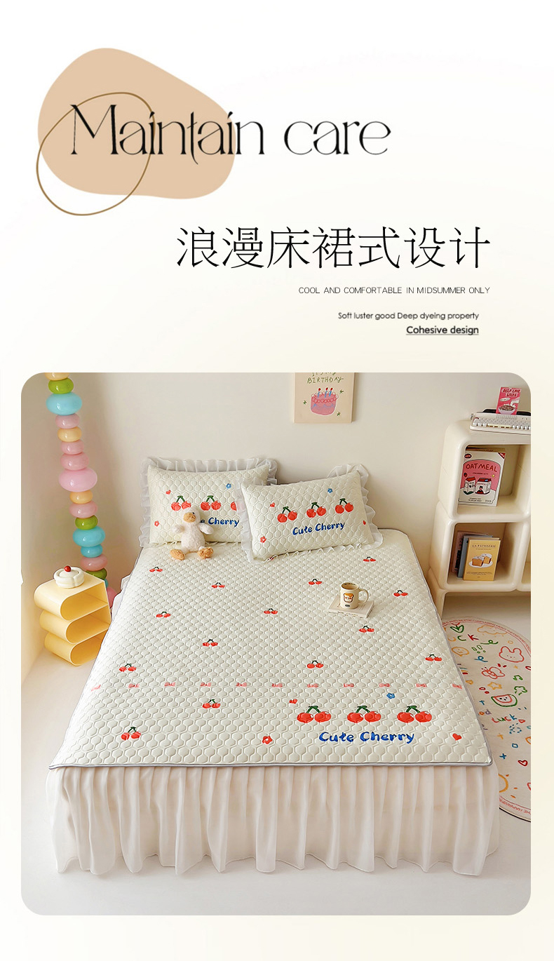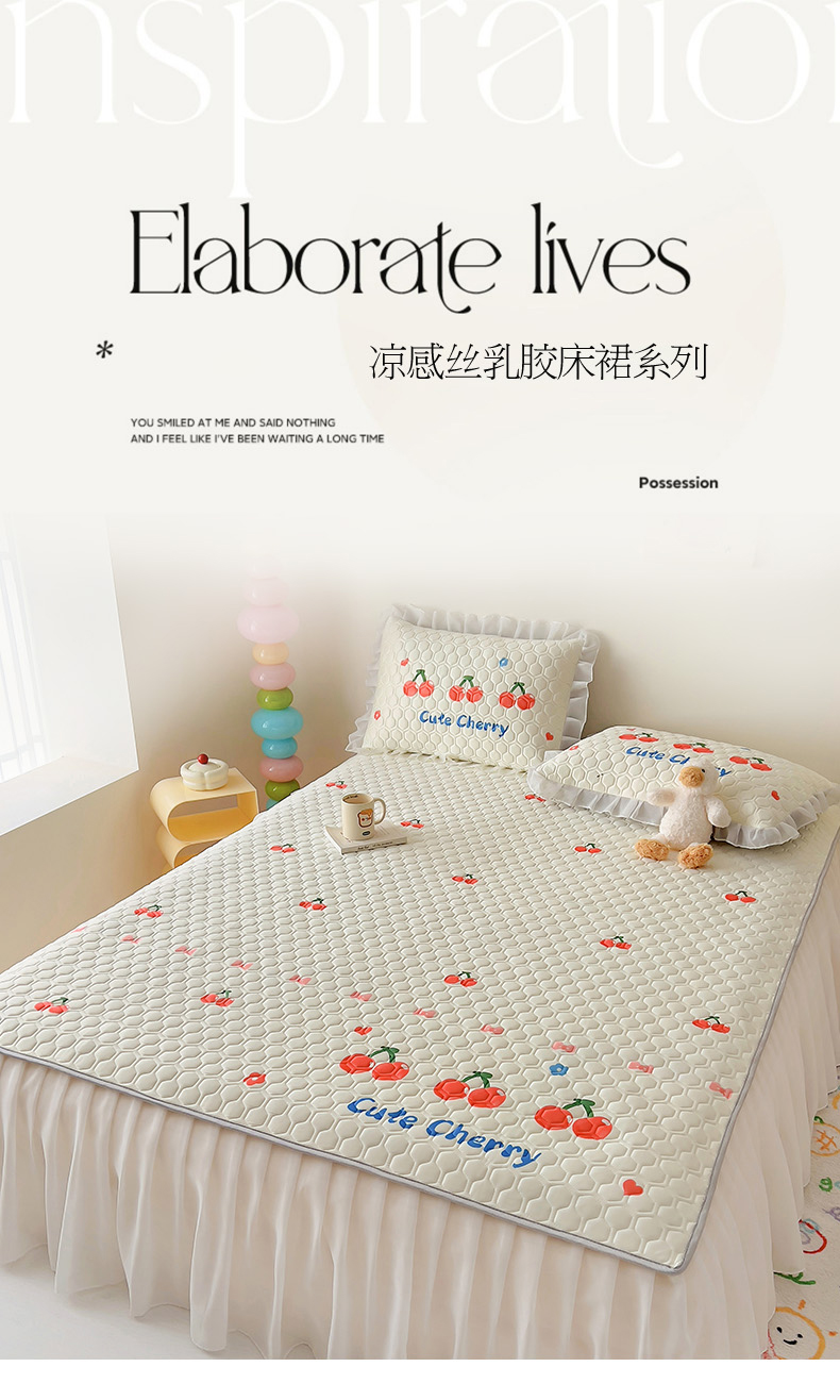 商品名称:柒月家居 2024新款奶油风大版凉感丝床裙款乳胶席 床裙-小樱桃