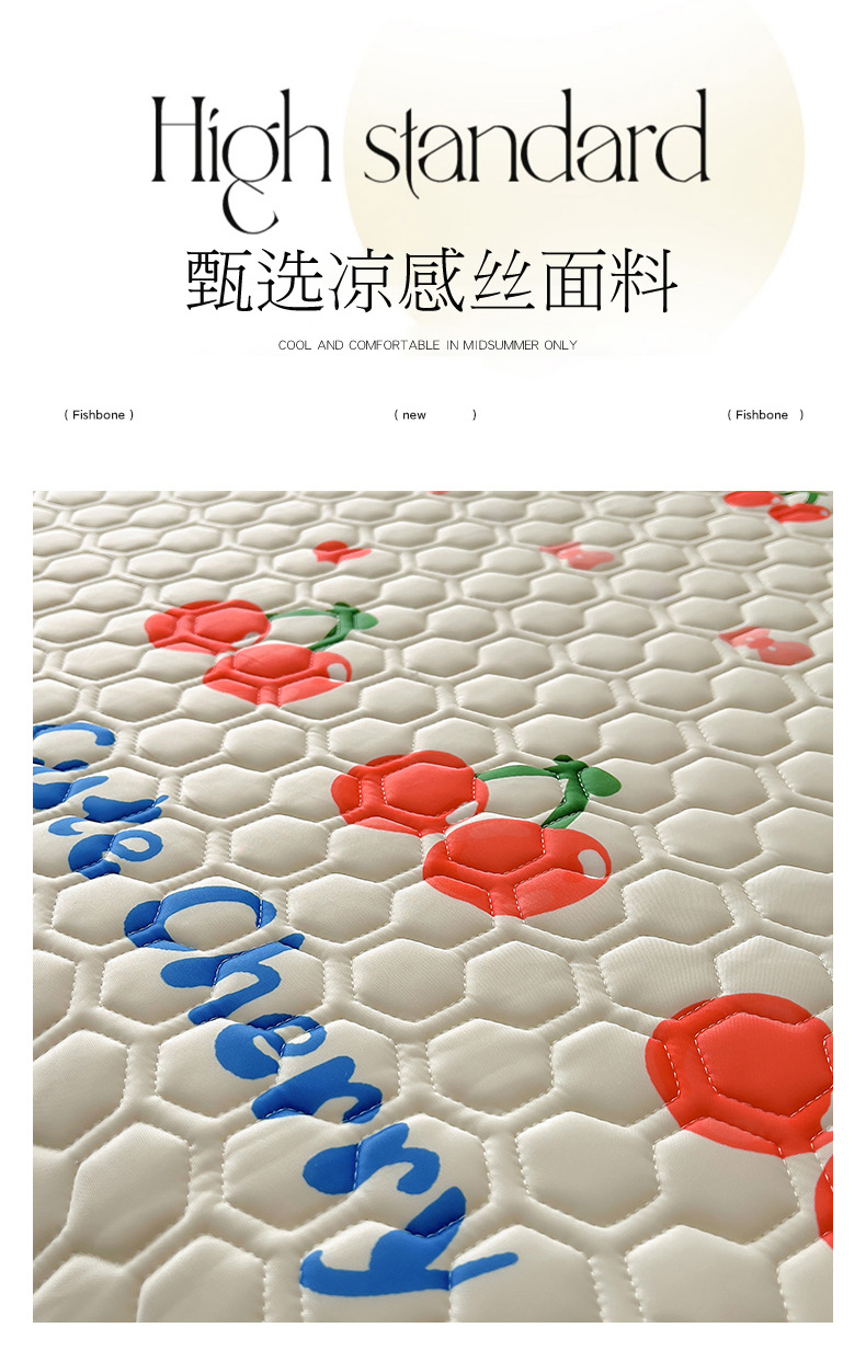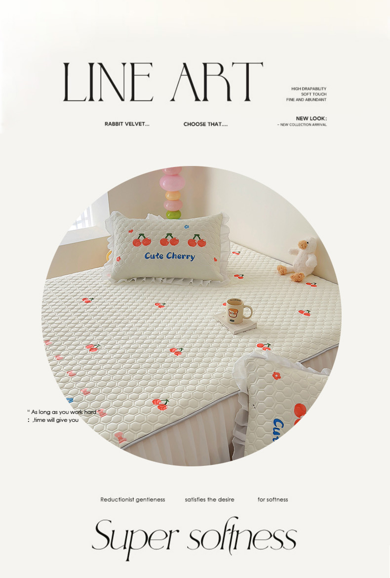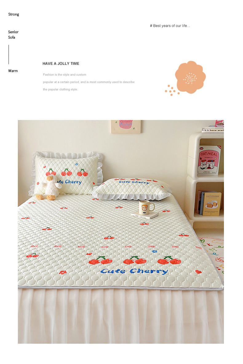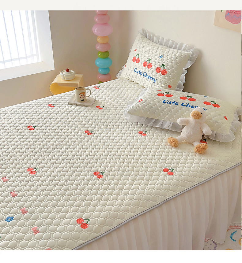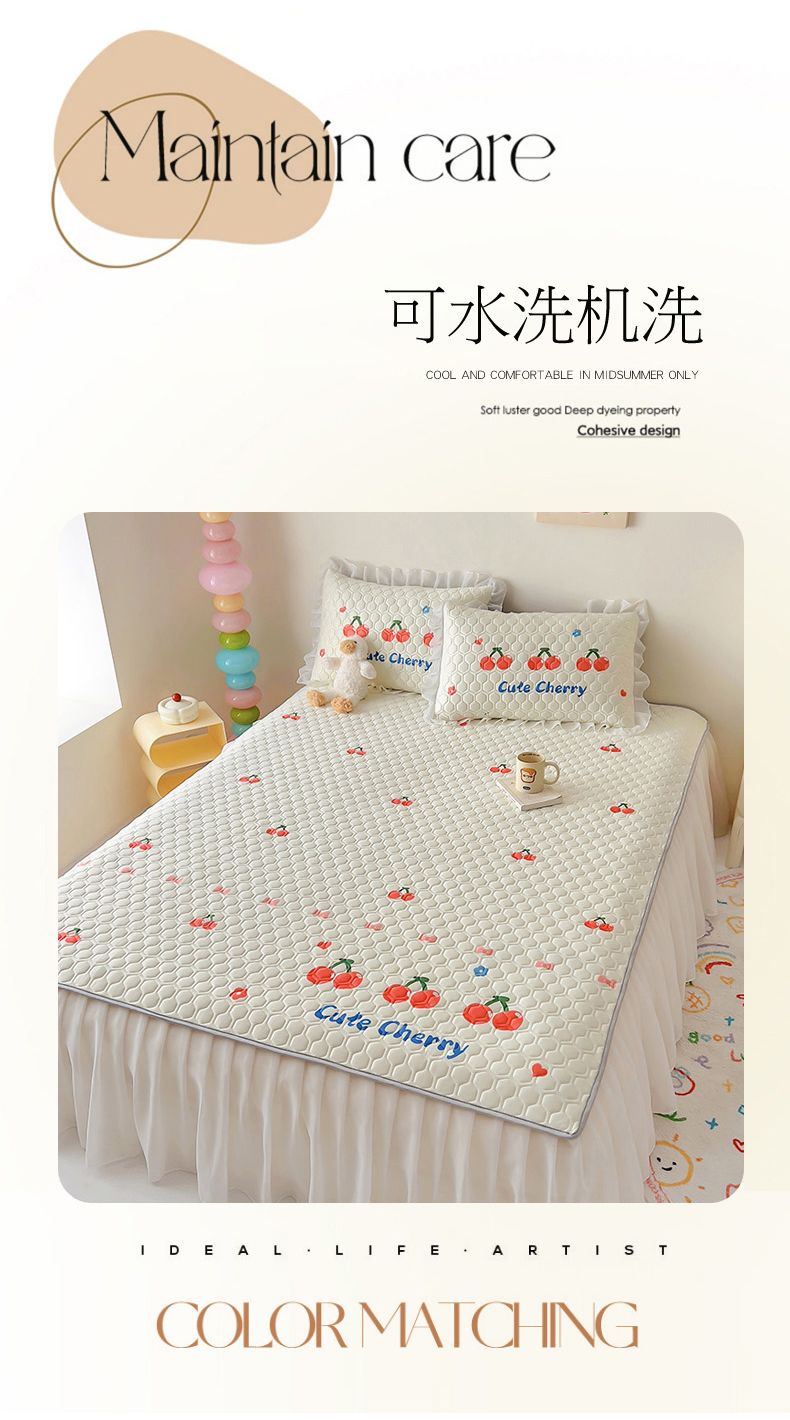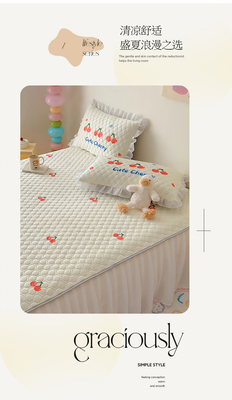 商品名称:柒月家居 2024新款奶油风大版凉感丝床裙款乳胶席 床裙-小樱桃