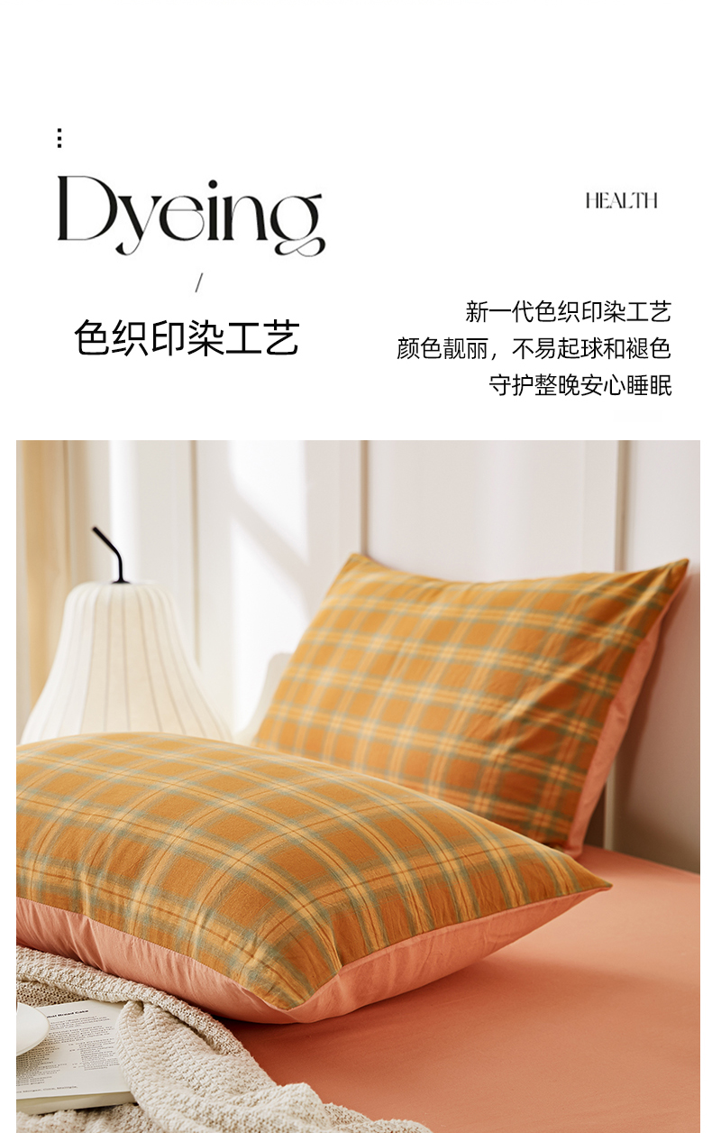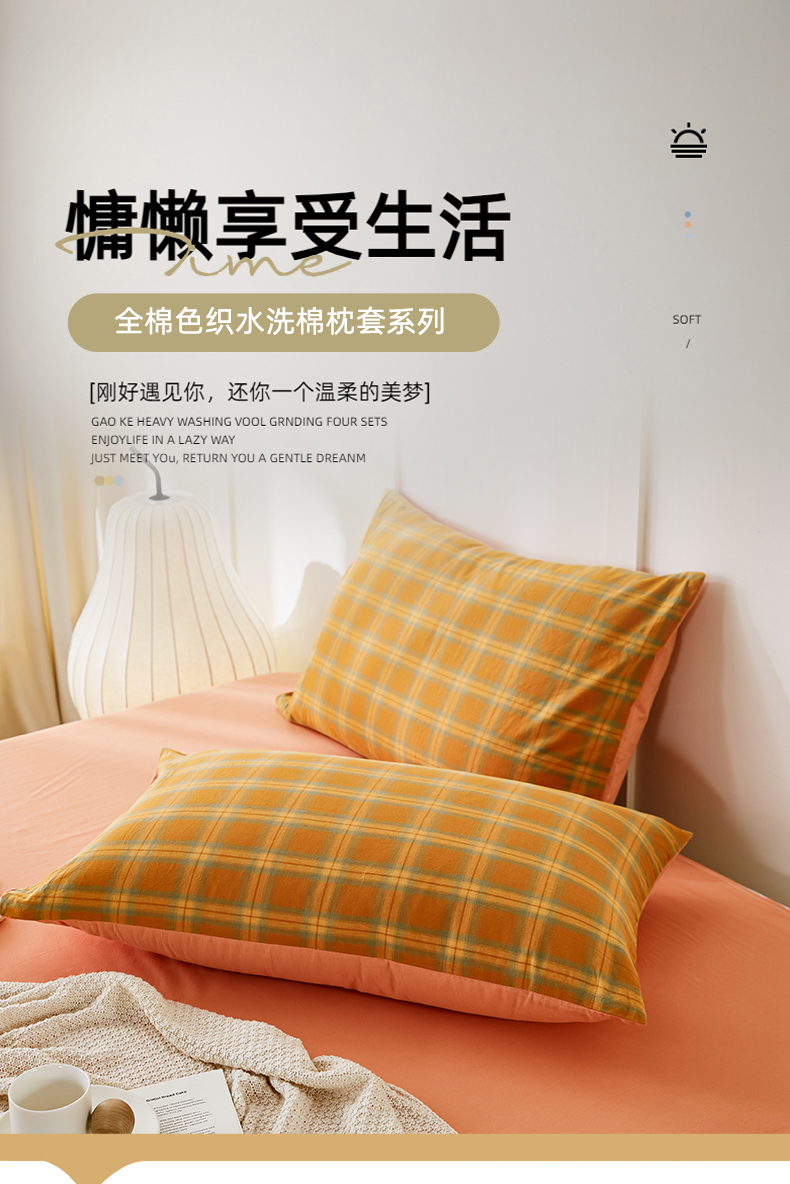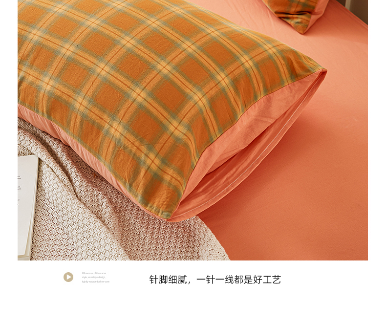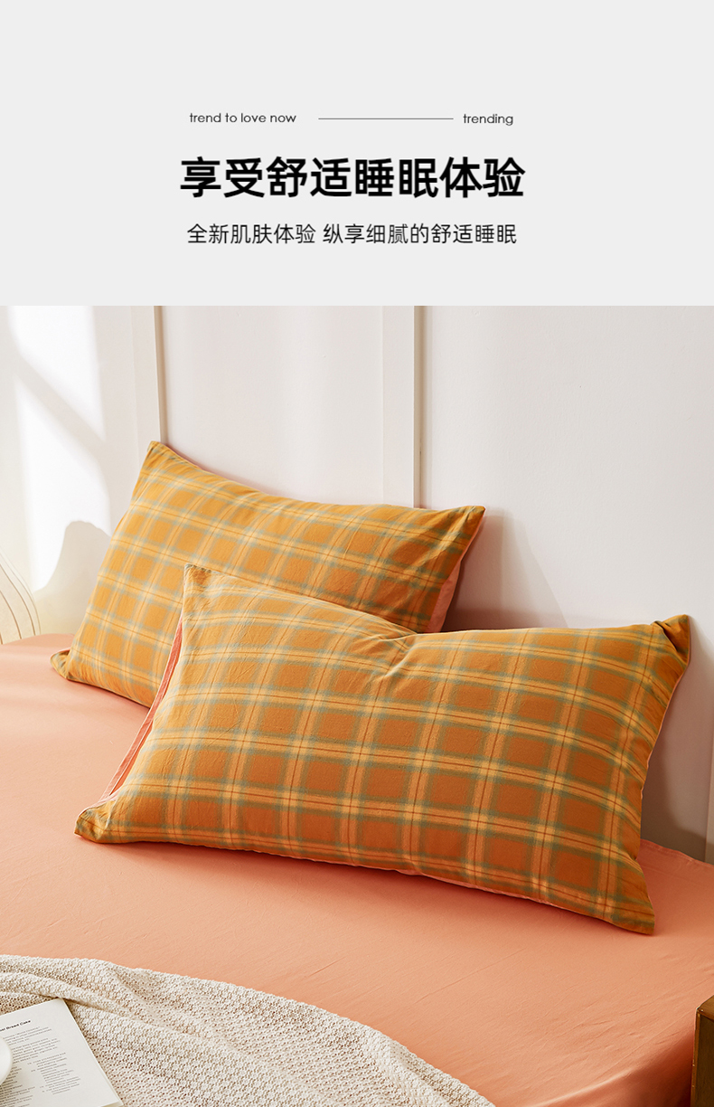商品名称:凡客家居 2024新款全棉色织水洗棉枕套 漫彩—橘